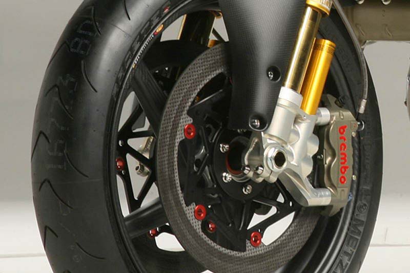 The NCR Millona 16 draws its styling from other NCR’s with the Millona name, and has a half-fairing instead of the desmo’s usual full-fairing look. The result is an attractive street and track toy, which comes with all the telemetry, ECU maps, and traction control systems you’d expect on a fine track/race bike. Along this vein, the NCR M16 comes with 43mm Öhlins FGR000 forks up front, and an Öhlins TTX monoshock in the back.
