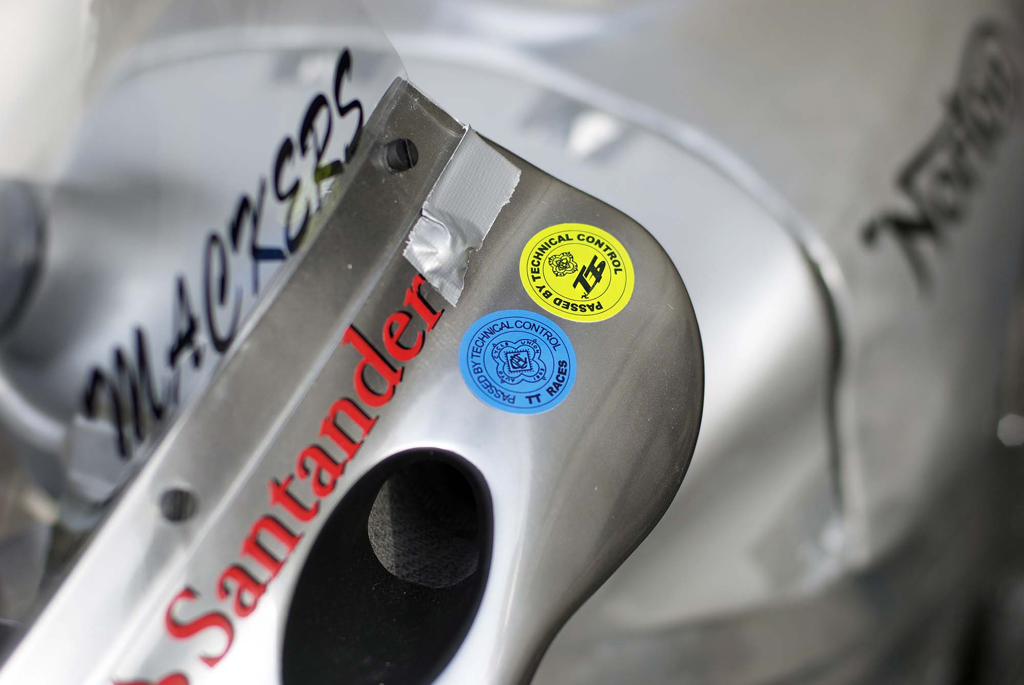 The Norton SG1, as it is now being called, is the talk of the Isle of Man TT paddock (we presume the SG designation stands for Norton’s new owner, Stuart Garner). Completed just before the TT fortnight, the Norton squad has an enormous amount of work ahead of it to bring the SG1 up to speed. Norton’s rider, Ian Mackman, posted a 112.364 on Tuesday night’s practice, and was out again Wednesday night, scaring the hell of out of elderly Manx women.