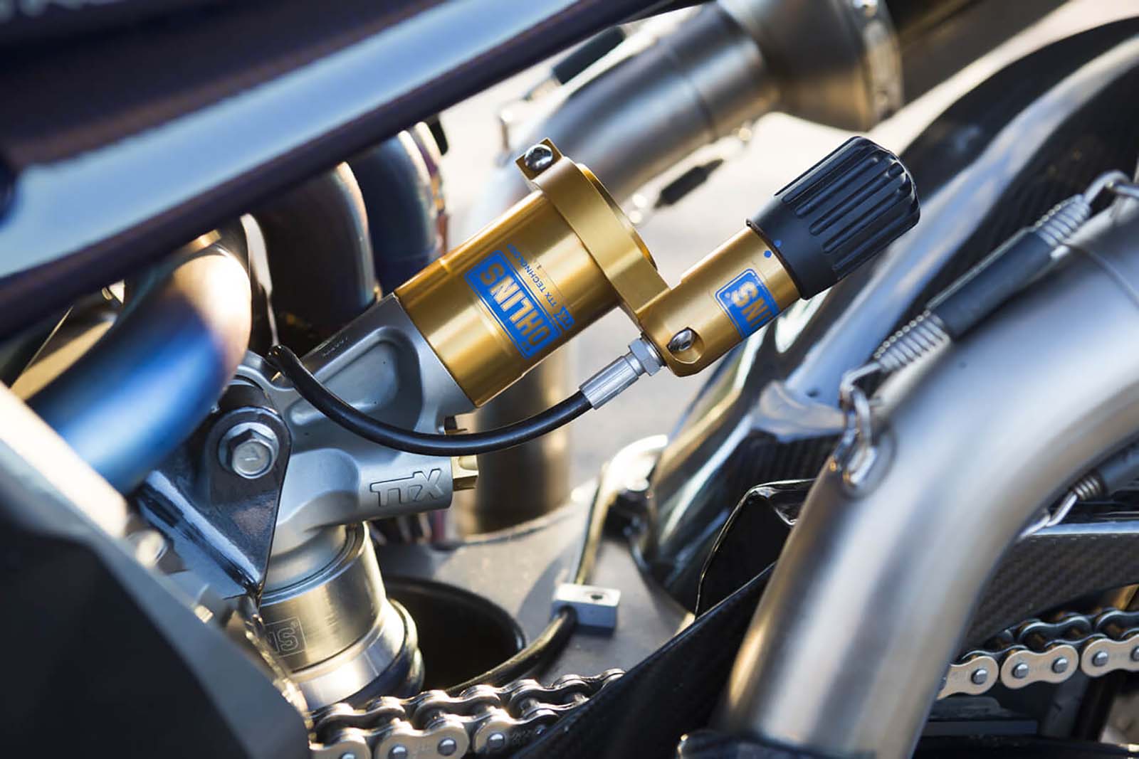 Top-shelf components are found on every corner of the machine, including Öhlins FGRT301 forks, and an Öhlins TTX Mk2 shock.