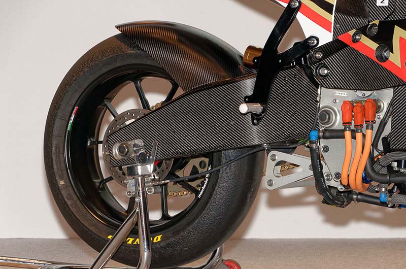 You don’t have to be an electron-head to get excited by these photos, as any race bike with a carbon fiber frame and swingarm is pretty drool-worthy, though the Shinden Ni’s carbon fiber battery enclosure does hide a great deal of the electric superbike’s geek factor. While the sheer size of the battery bike is impressive, it was expected when the Shinden was first announced.