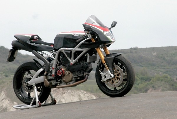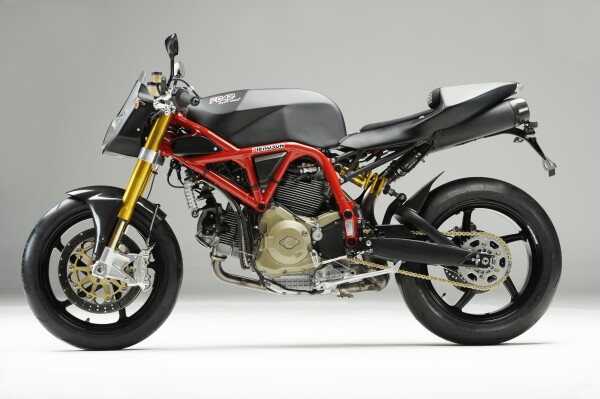 Showing off Pierobon’s aluminum trellis frame, the Pierobon F042 hstreet also features the ability to mount any of the current two-valve v-twins from Ducati (we’d suggest the peppier 1,100cc version, but wouldn’t judge anyone for going after a 796cc or 696cc motor).