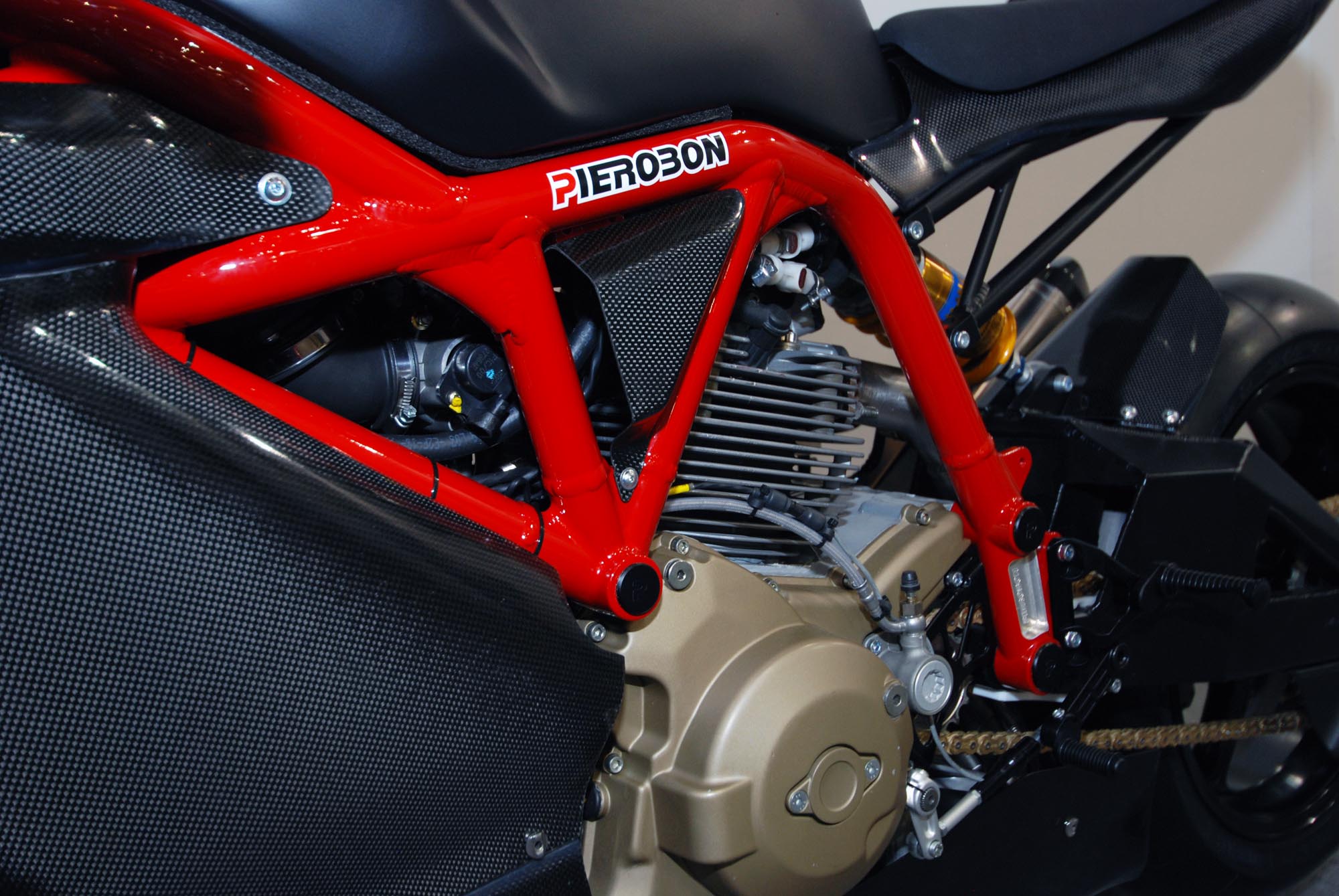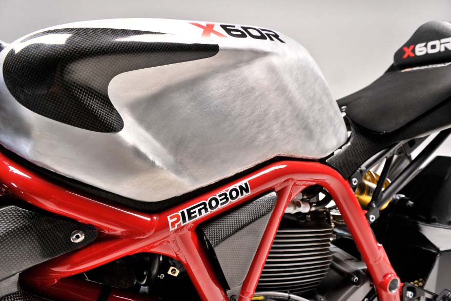 Discontent to call things done, Pierobon has revised the X60R over the past year, with the most noticeable change being the Ducati Monster 1100 EVO air-cooled v-twin lump. Putting a little bit more pep in the bike’s step, Pierobon has also revised the chassis, namely the X60R’s swingarm.