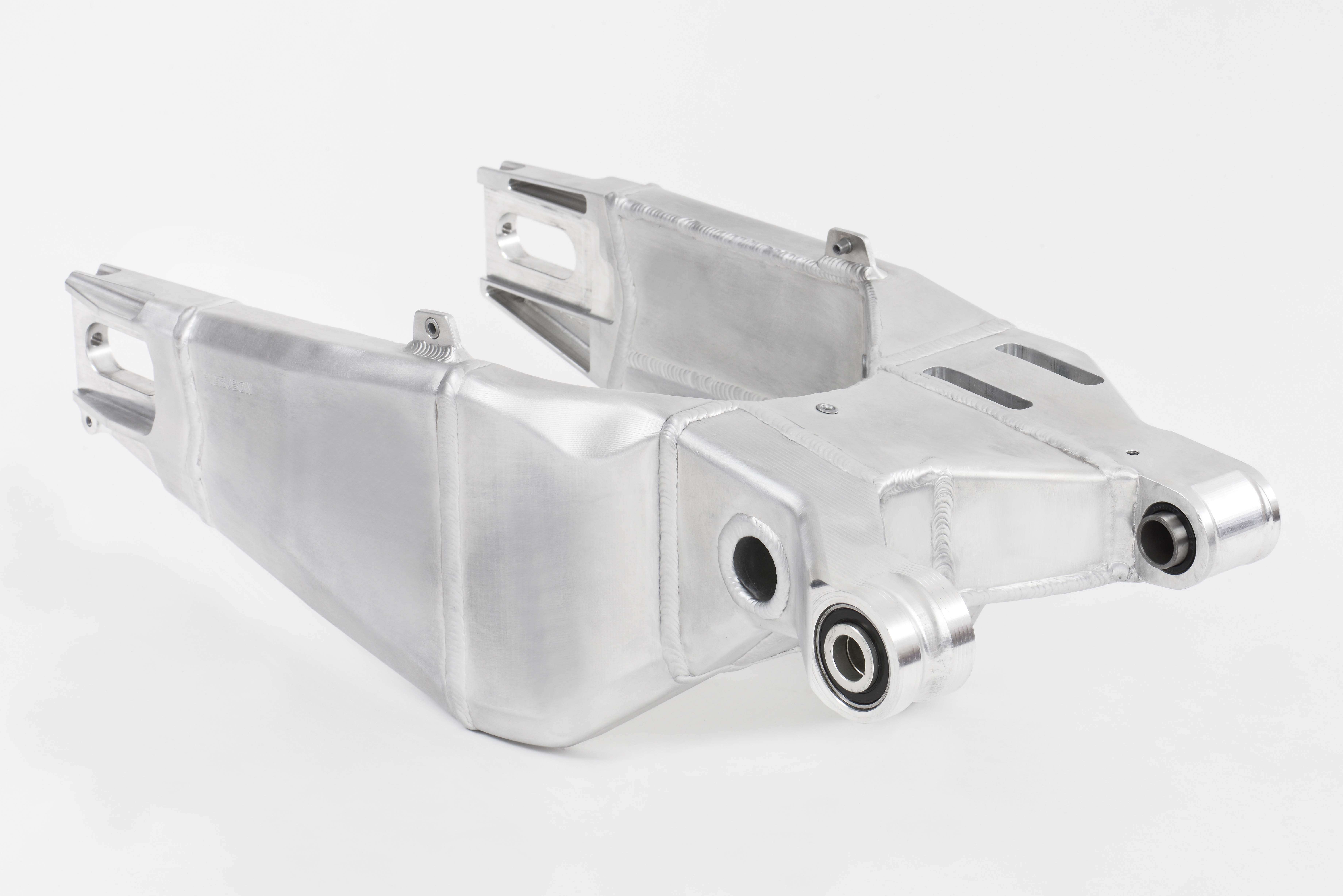 Similarly, the box-section double-sided swingarm uses an under-braced design, with the aim for maximum edge-grip, acceleration, and corner entry.