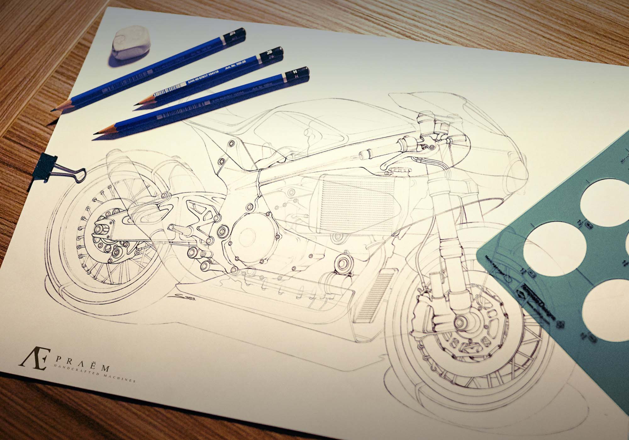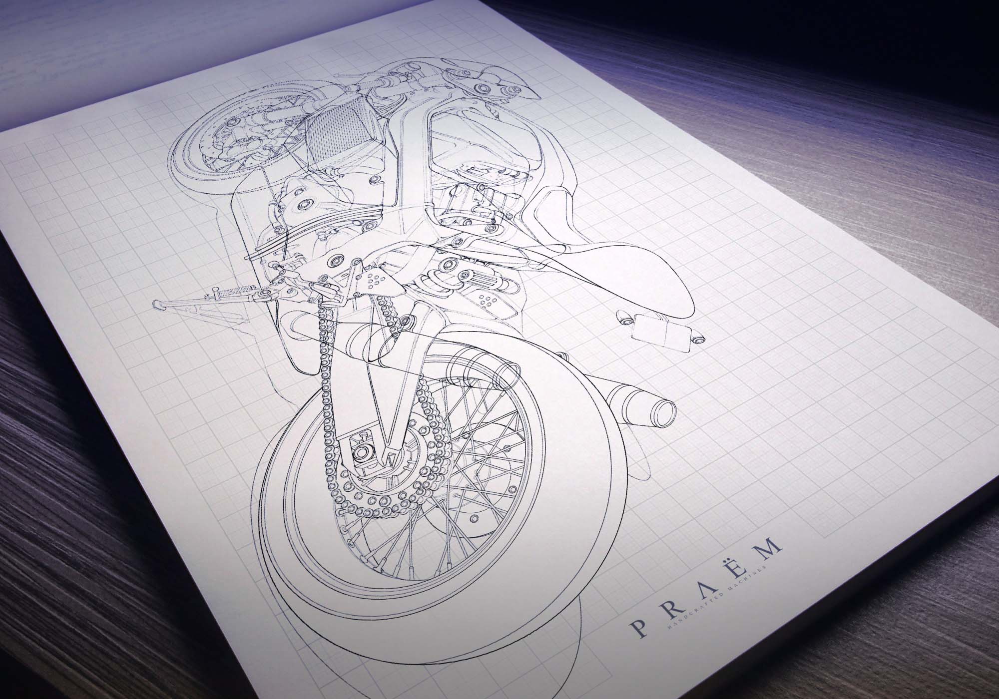 If you are familiar with the work of Holographic Hammer, then the Praëm SP3 should look stylistically familiar, as its the product of Sylvain & Florent Berneron – Sylvain being a former BMW Motorrad designer, while Florent has a background in aeronautics and mechanics.
