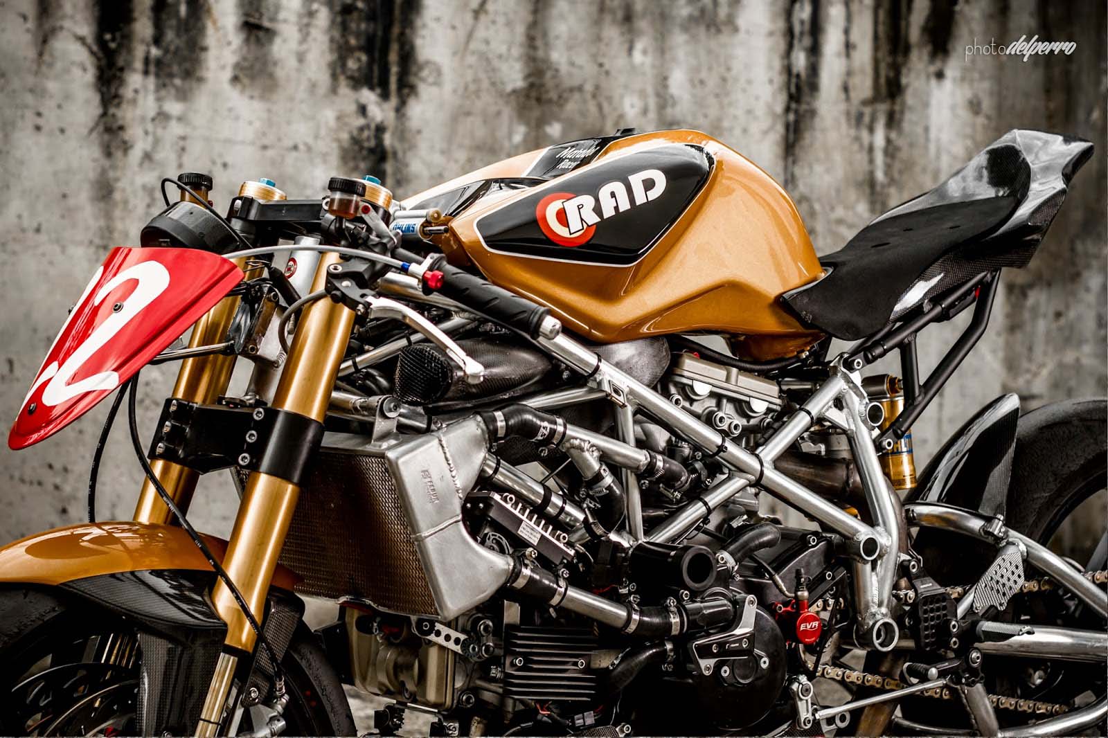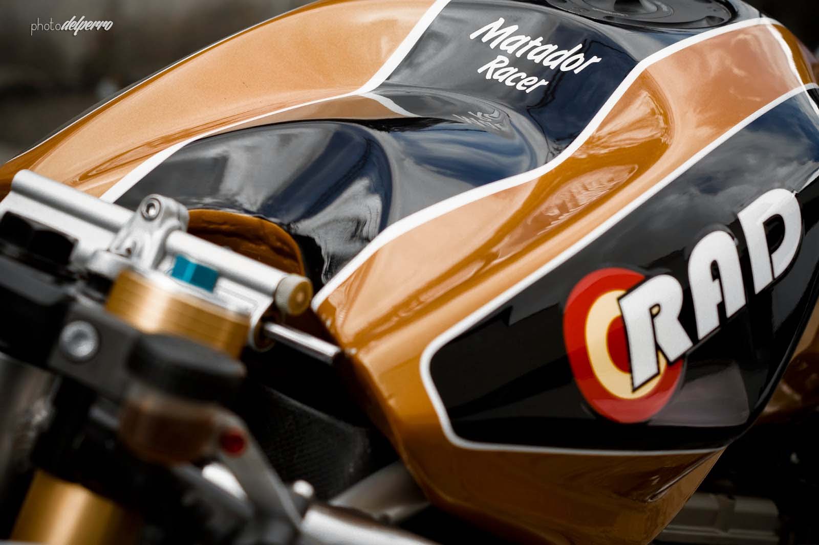 The signature minimalist carbon fiber RAD solo tail section and RAD fuel tank are included in the Matador’s design, and we especially like that Pepo and Reyes have massaged some love into the 1198 engine, with a lightened flywheel and ported heads being part of the build — though no word is given on available power.