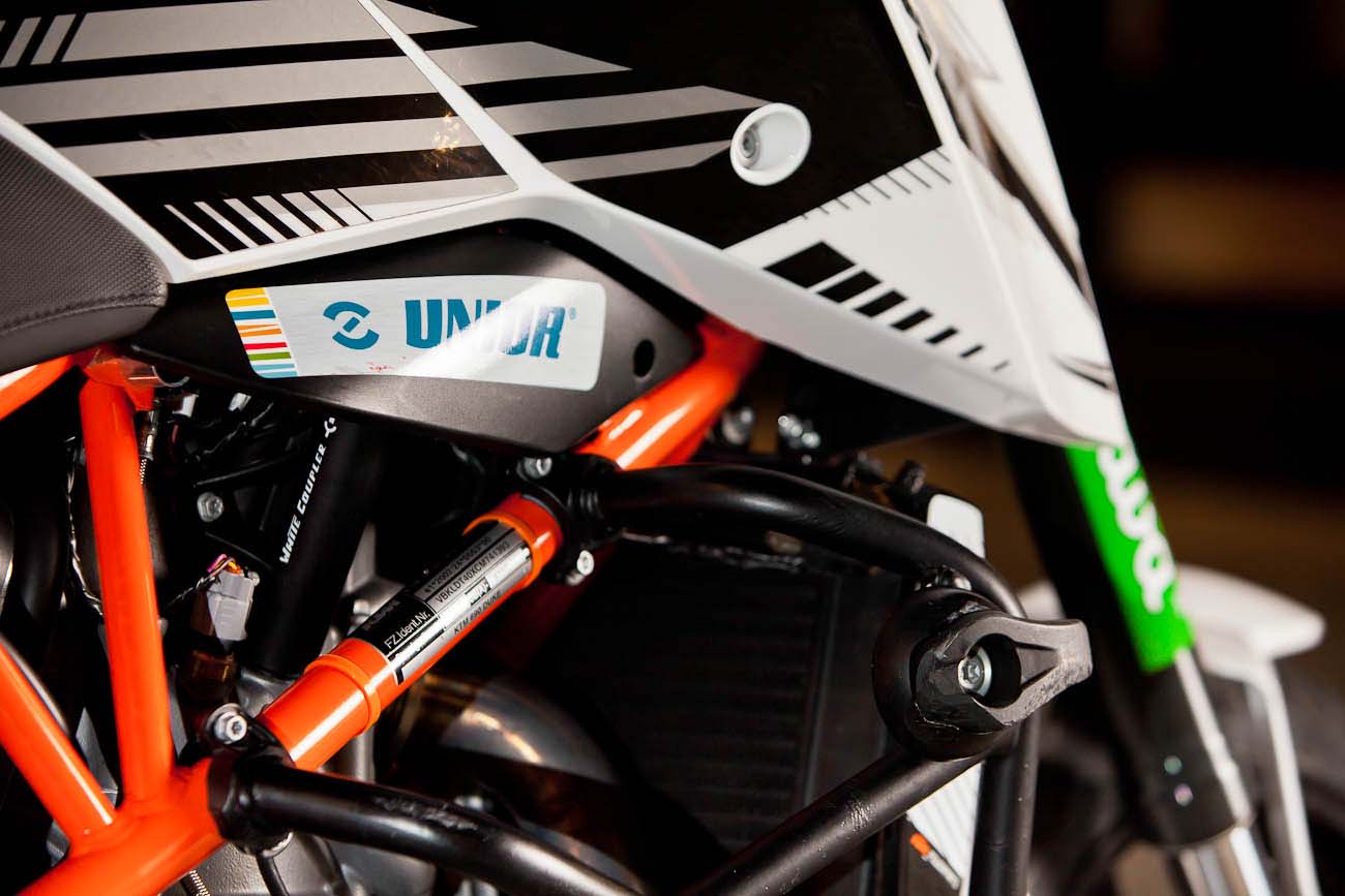 “There’s a BIG difference between the two bikes,” says Rok. “The bike has five times more power then the Duke 125 and any mistake can result in a crash, as I’ve already discovered. The bike has amazing power but I’m slowly getting it under control. I have to remember that this is my first big stunt bike and so I have to learn how to handle the extra power and convert it into spectacular tricks that will be fun to do and thrilling for the fans.”