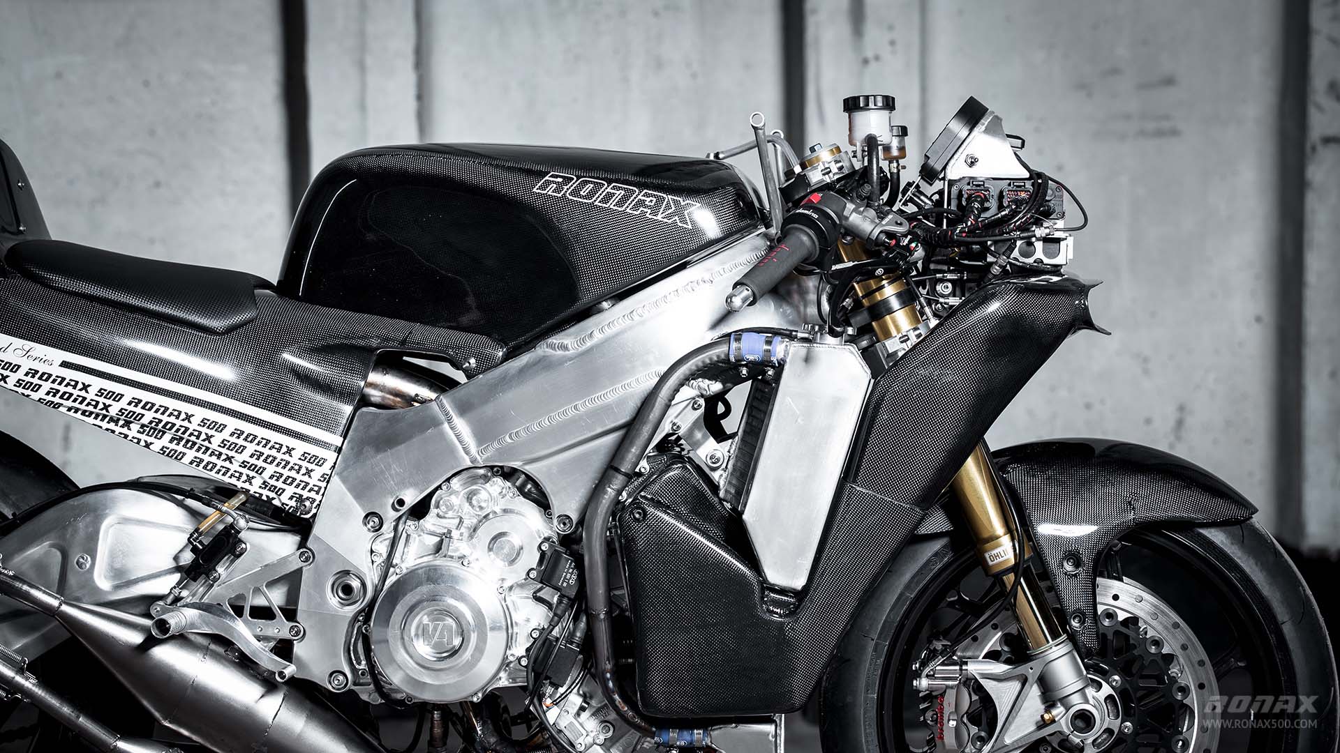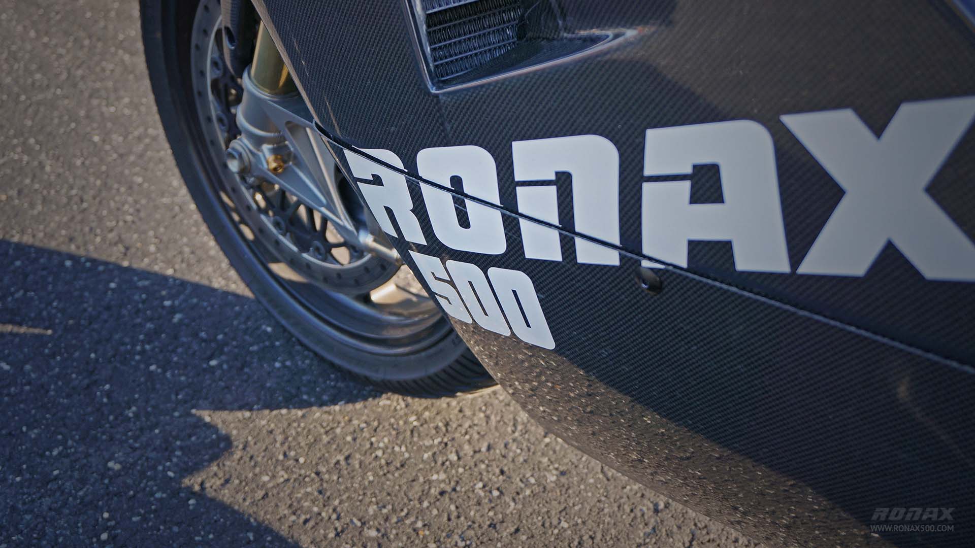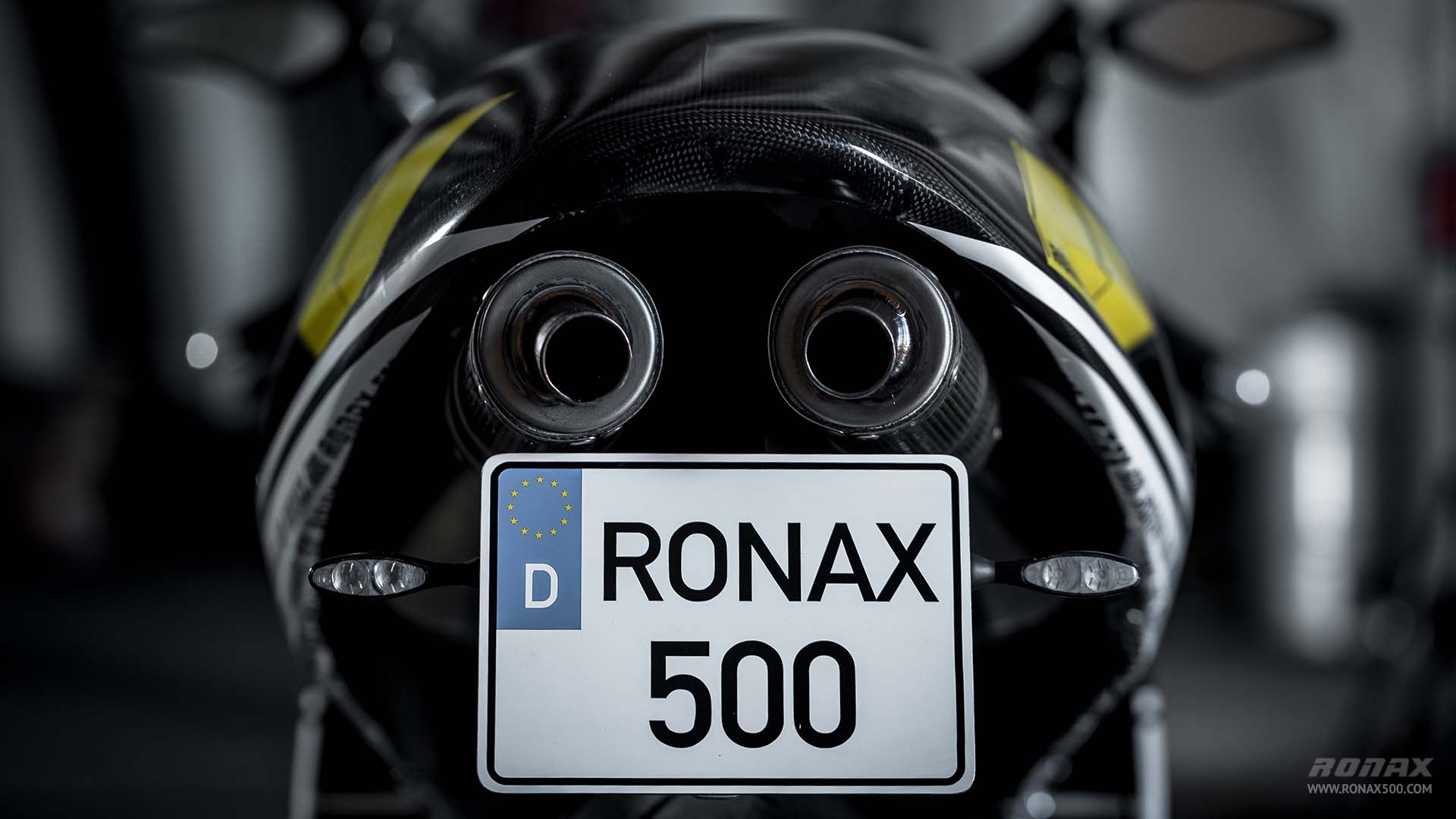 Ronax says the Ronax 500 is a race bike for the road, at it comes complete with a headlight tucked away within its front air-scoop, though you might want to check with your local Department of Transportation before taking the smoker on public streets.