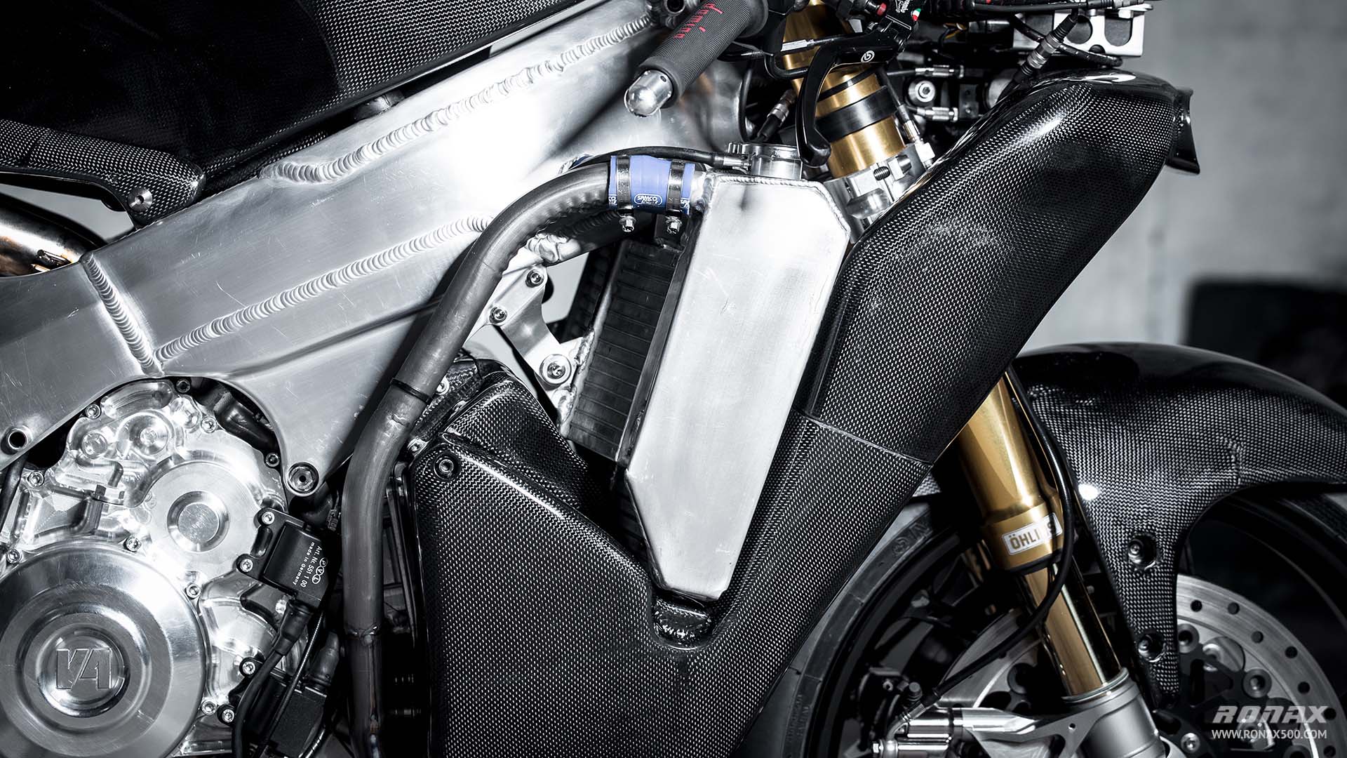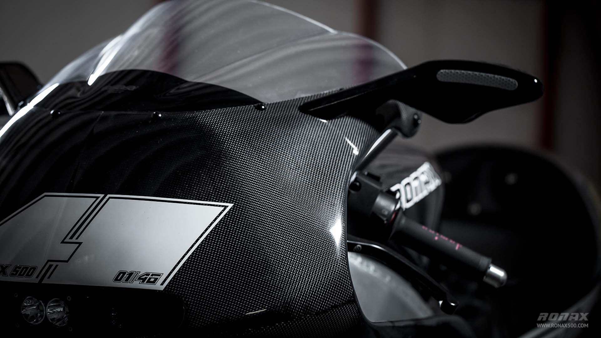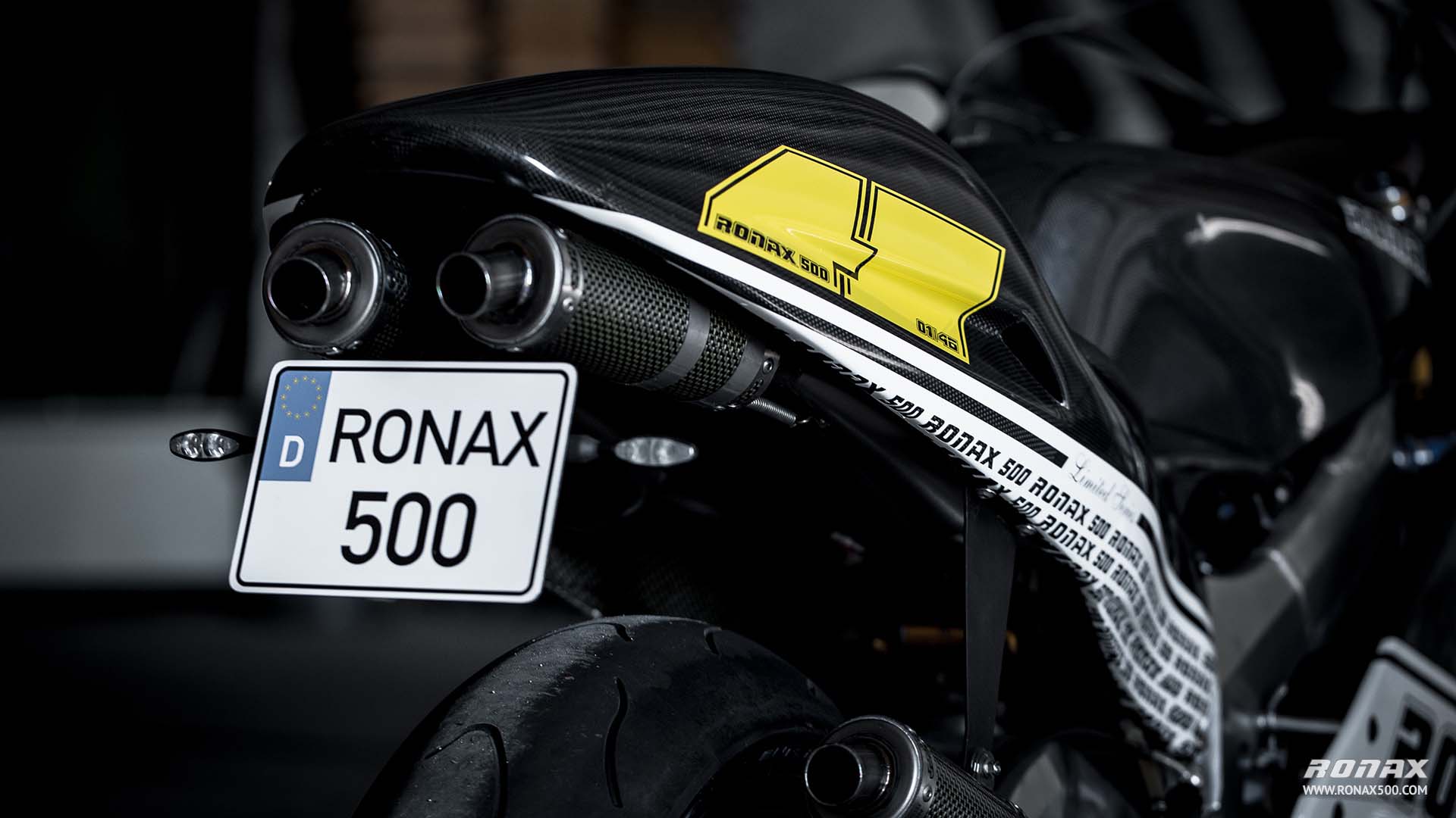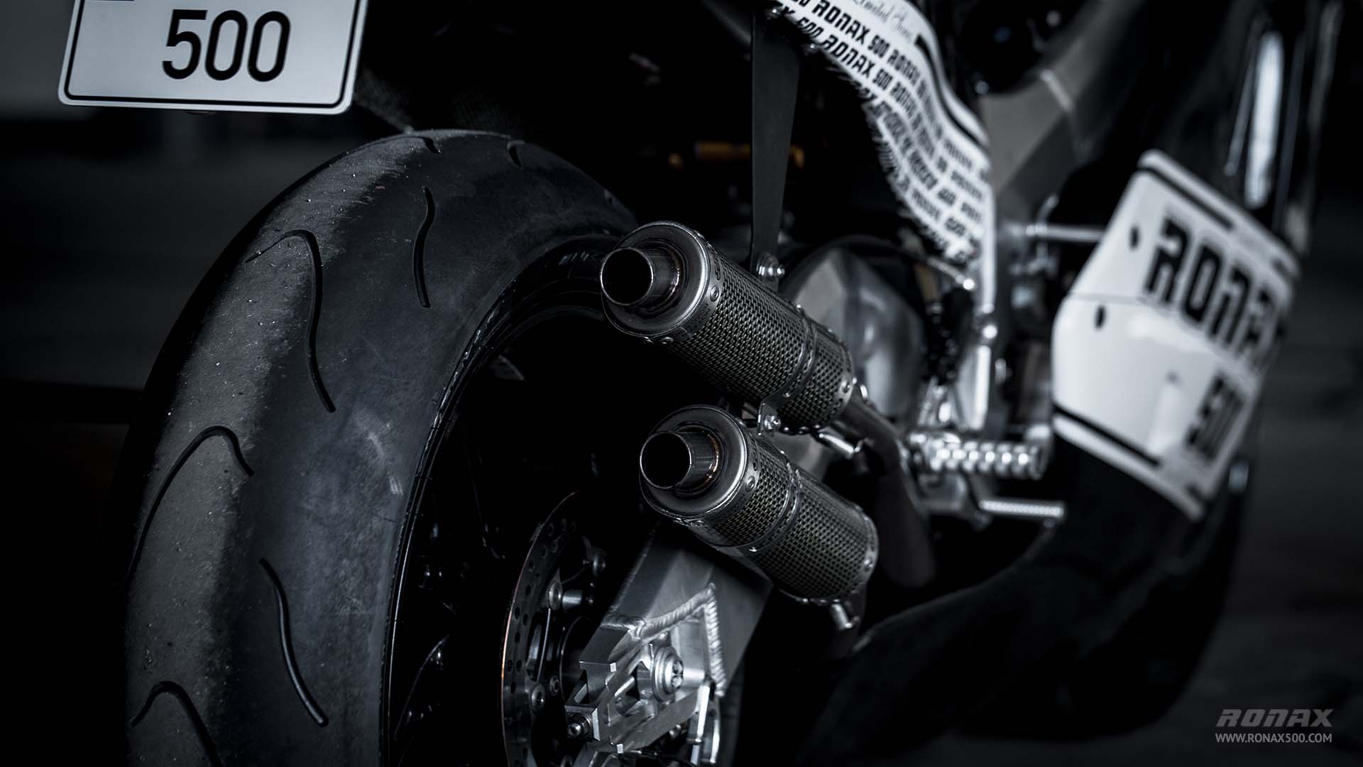 Ronax says the Ronax 500 is a race bike for the road, at it comes complete with a headlight tucked away within its front air-scoop, though you might want to check with your local Department of Transportation before taking the smoker on public streets.