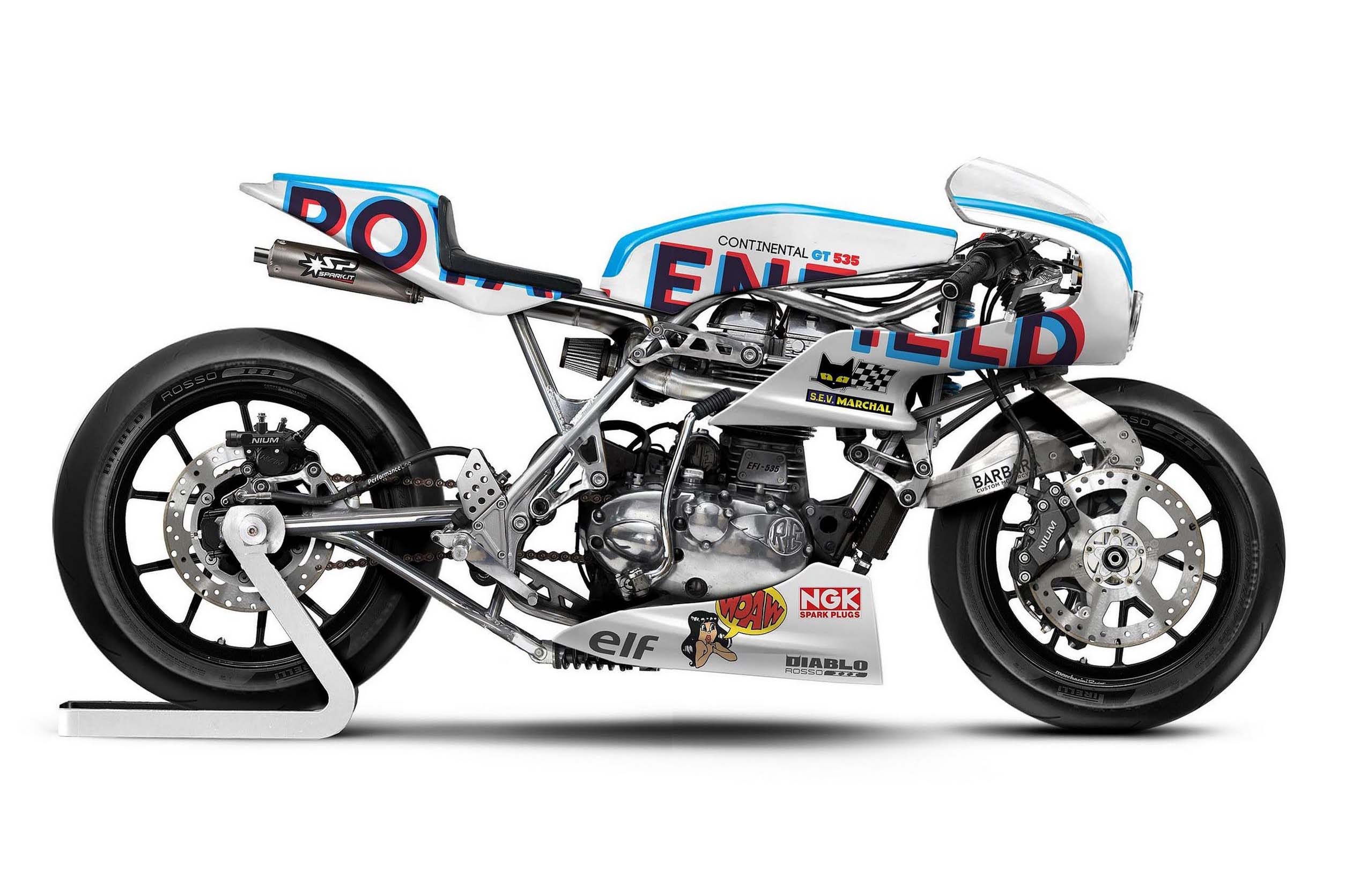Just about the only thing that remains from the Royal Enfield is its air-cooled motor, with the chassis and bodywork being completely reworked to make a stylish café racer.