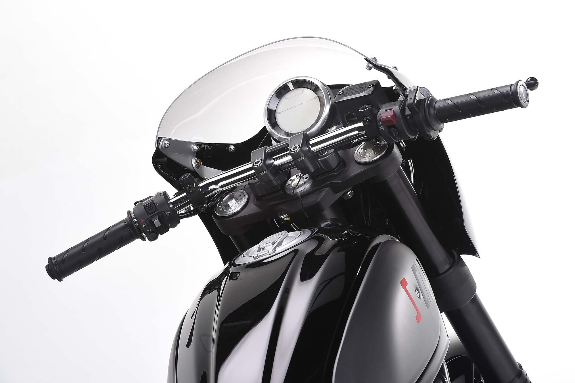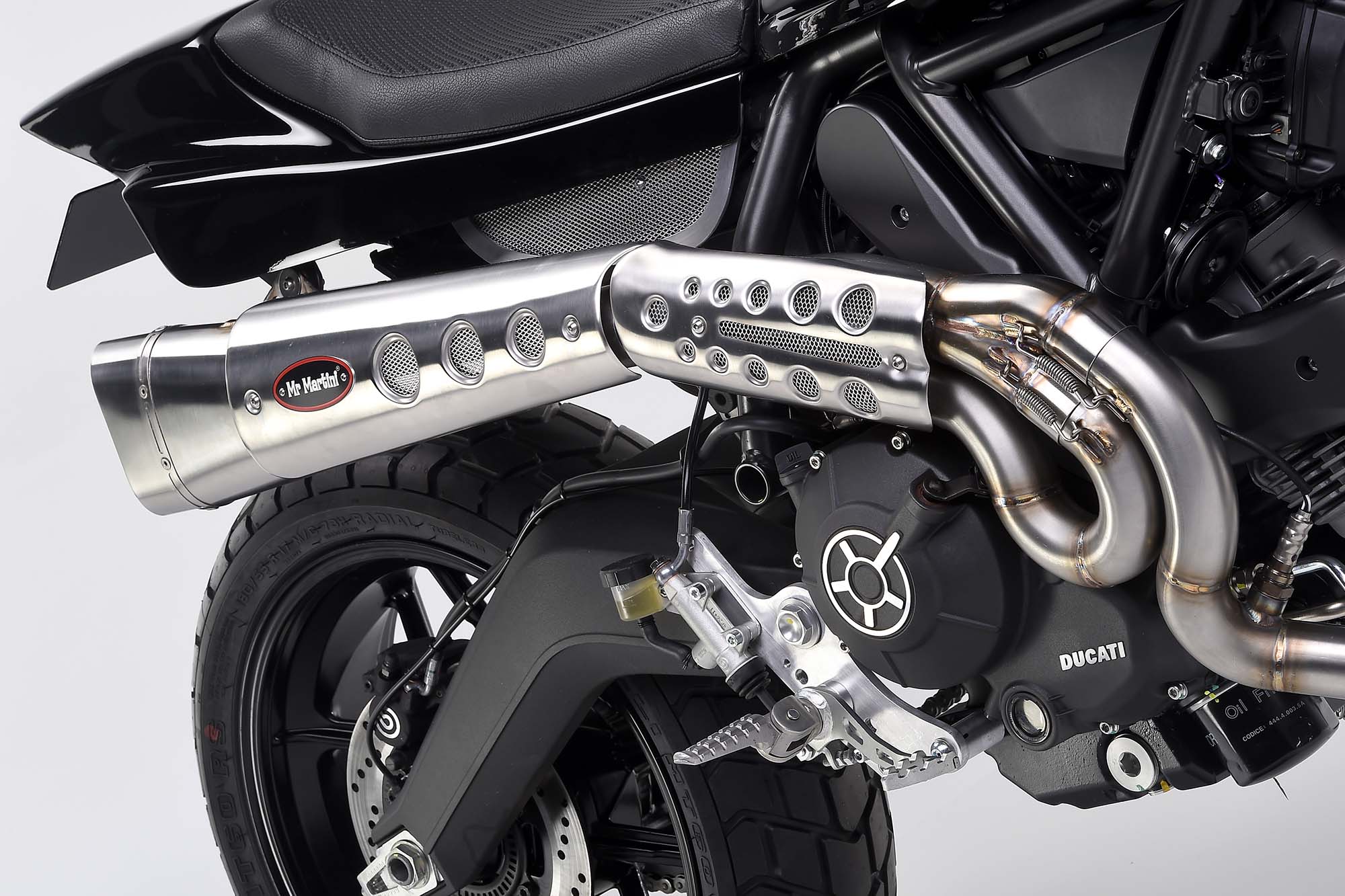 Mr. Martini appropriately added a high-mount exhaust to his “scrambler” and retained the Scrambler’s Pirelli knobby tires. The addition of a cafe racer fairing though is an interesting choice, and leaves this concept straddling the two staples of hipster motorbiking in the custom scene.