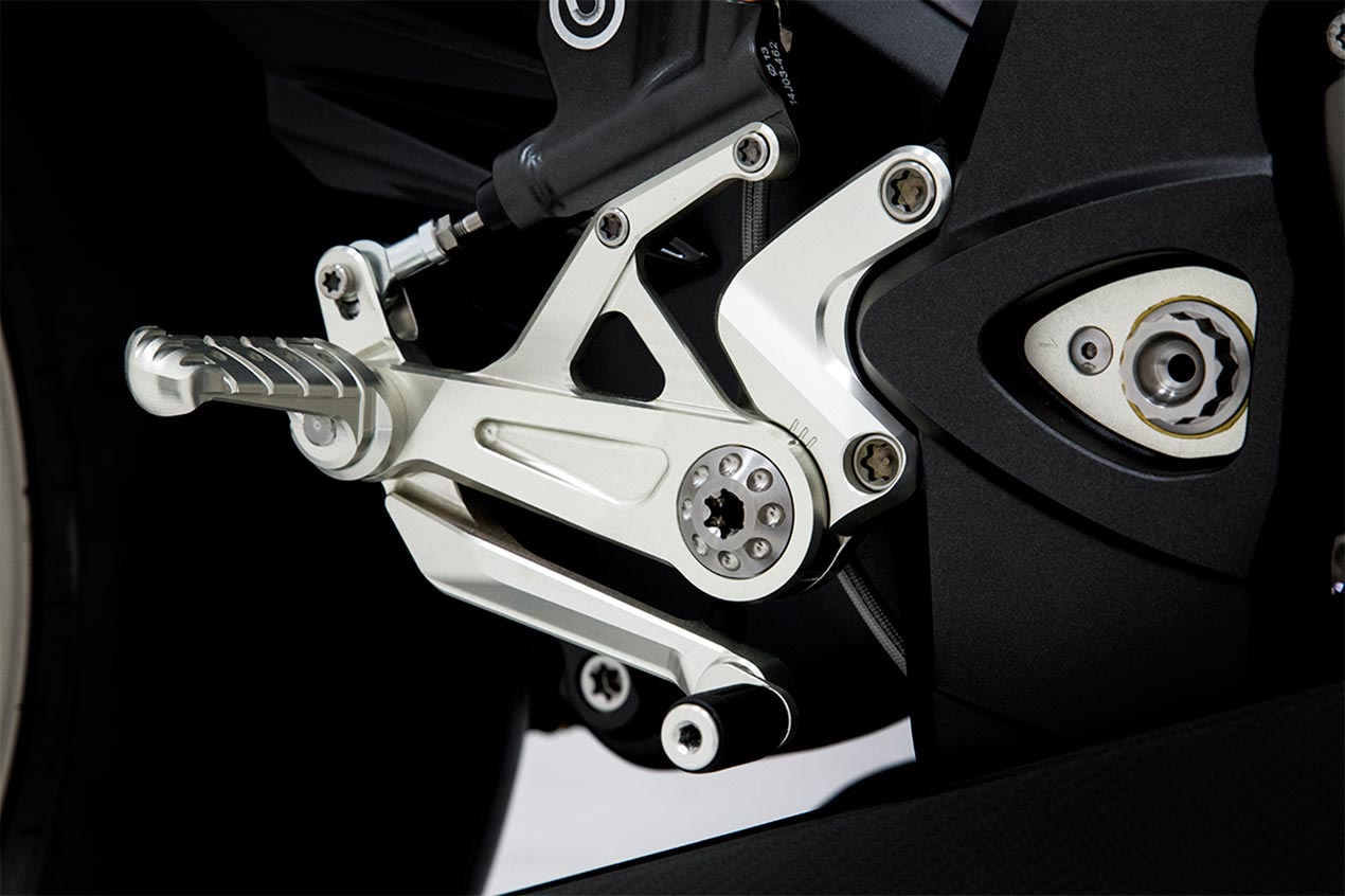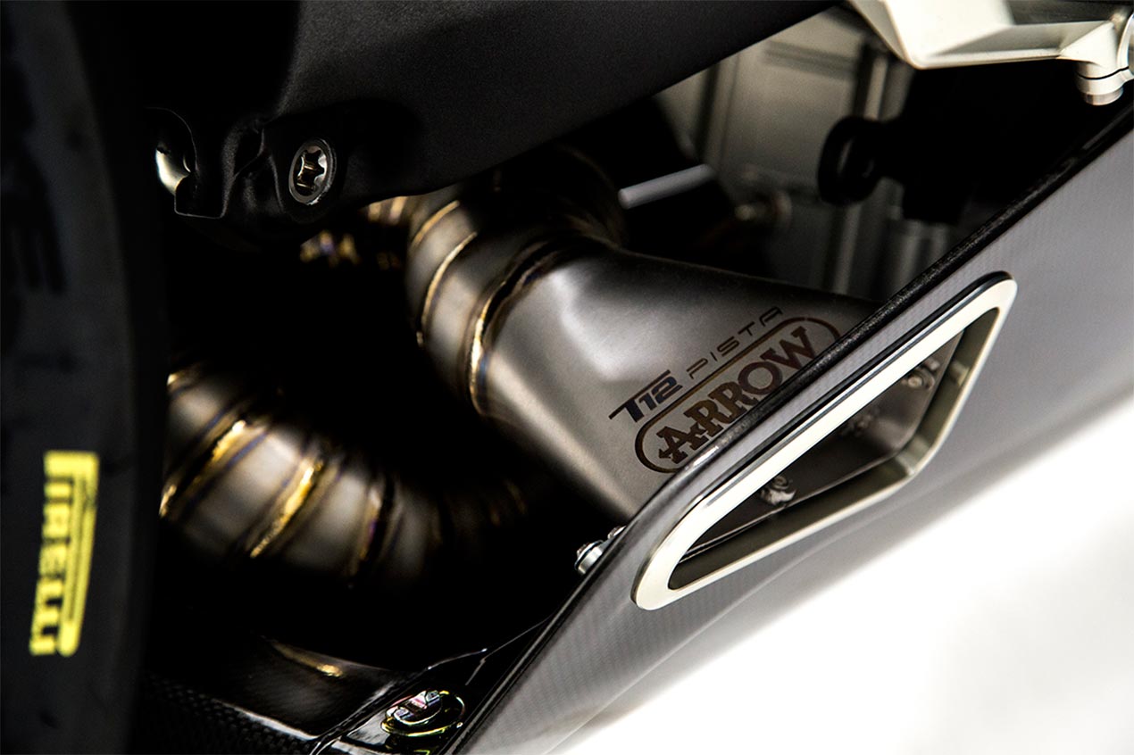 The fairings are an obvious example, but underneath the carbon fiber bodywork we can find some gems hidden. Our favorite piece has to be the custom-built Arrow exhaust, which exits to the side of the bellypan, like on the Ducati 1299 Panigale.