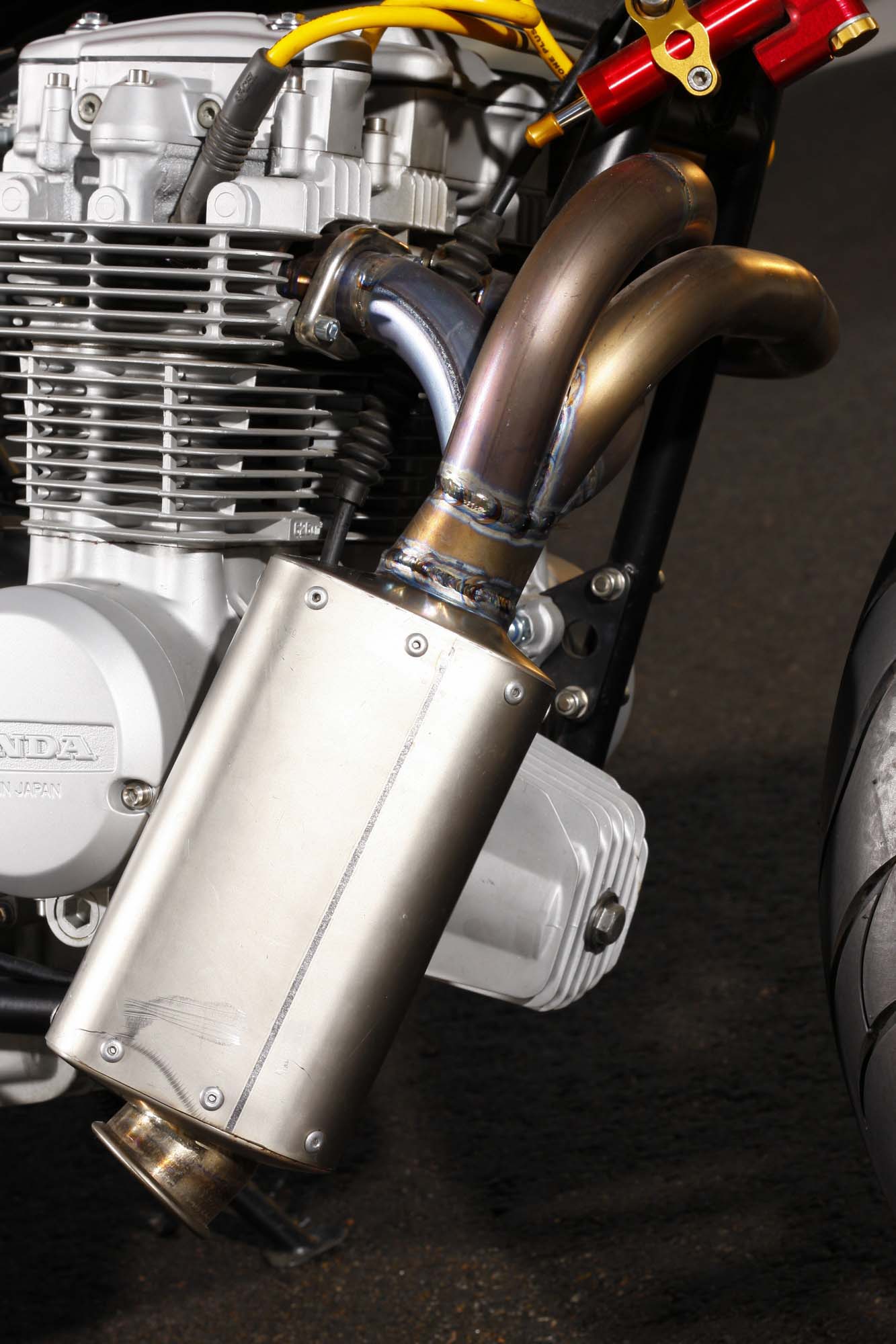 However, what we think really crowns the work that Pauletto has put into his former commuter is the exhaust system. The happy marriage of four exhaust pipes making a short convergence into a single muffler, the work really shows off the creative thinking and skills found at Trillion Industries. Rated at 63hp stock, we doubt this ’79 CB 650 would blow our hair too far back when said literally, but metaphorical? Consider us wind-blasted.