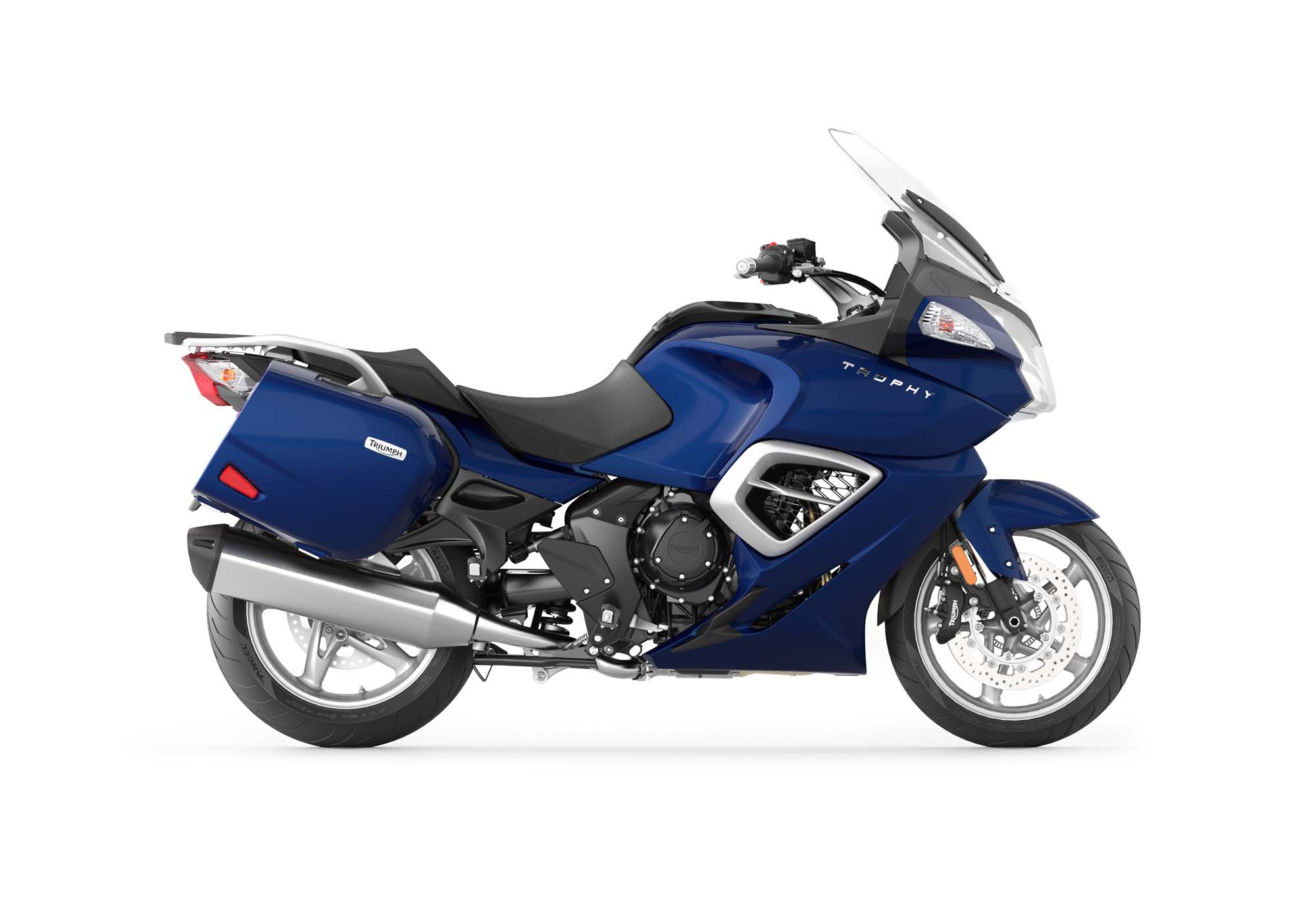 While both models are shaft-driven and sport the same 132 bhp, 1215cc, three-cylinder motor that is found on the Triumph Explorer adventure-tourer, only the SE comes with the electronic suspension, audio package, and tire pressure monitoring system. Realizing that Americans and Canadians enjoy their gizmos, the Triumph Trophy SE will be the only variant coming to the North American market, while the SE and base model will be available in all the other Trophy markets.