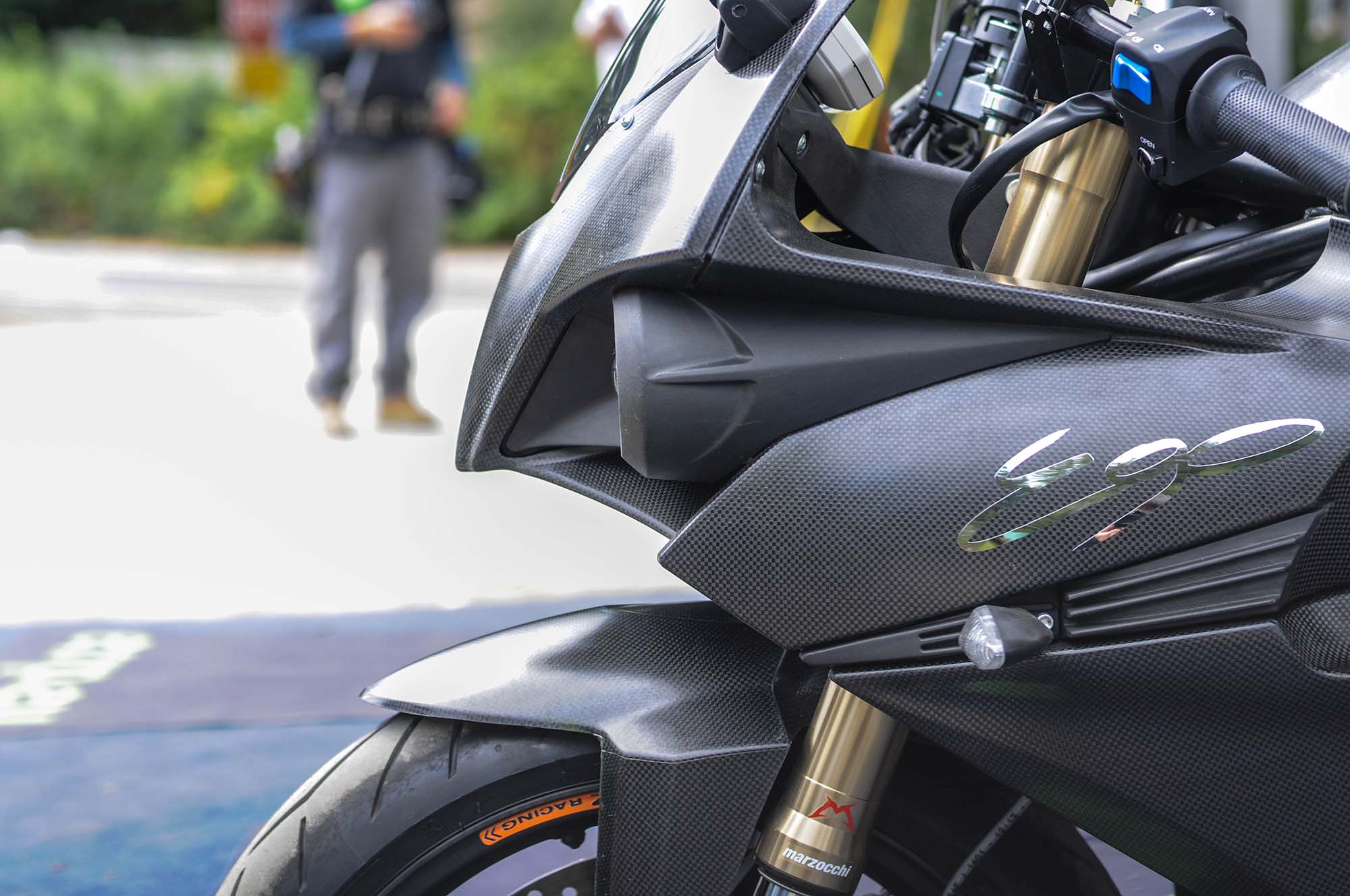 The Italian company called its carbon fairings as pre-production (a standard feature on the more robust Energica Ego 45 that will debut later), and there are noticeable imperfections in the epoxy and finish. You would have to look hard to see the flaws, and I have zero reservations about those imperfections being absent from the consumer-ready models. Still, it’s fair to note.