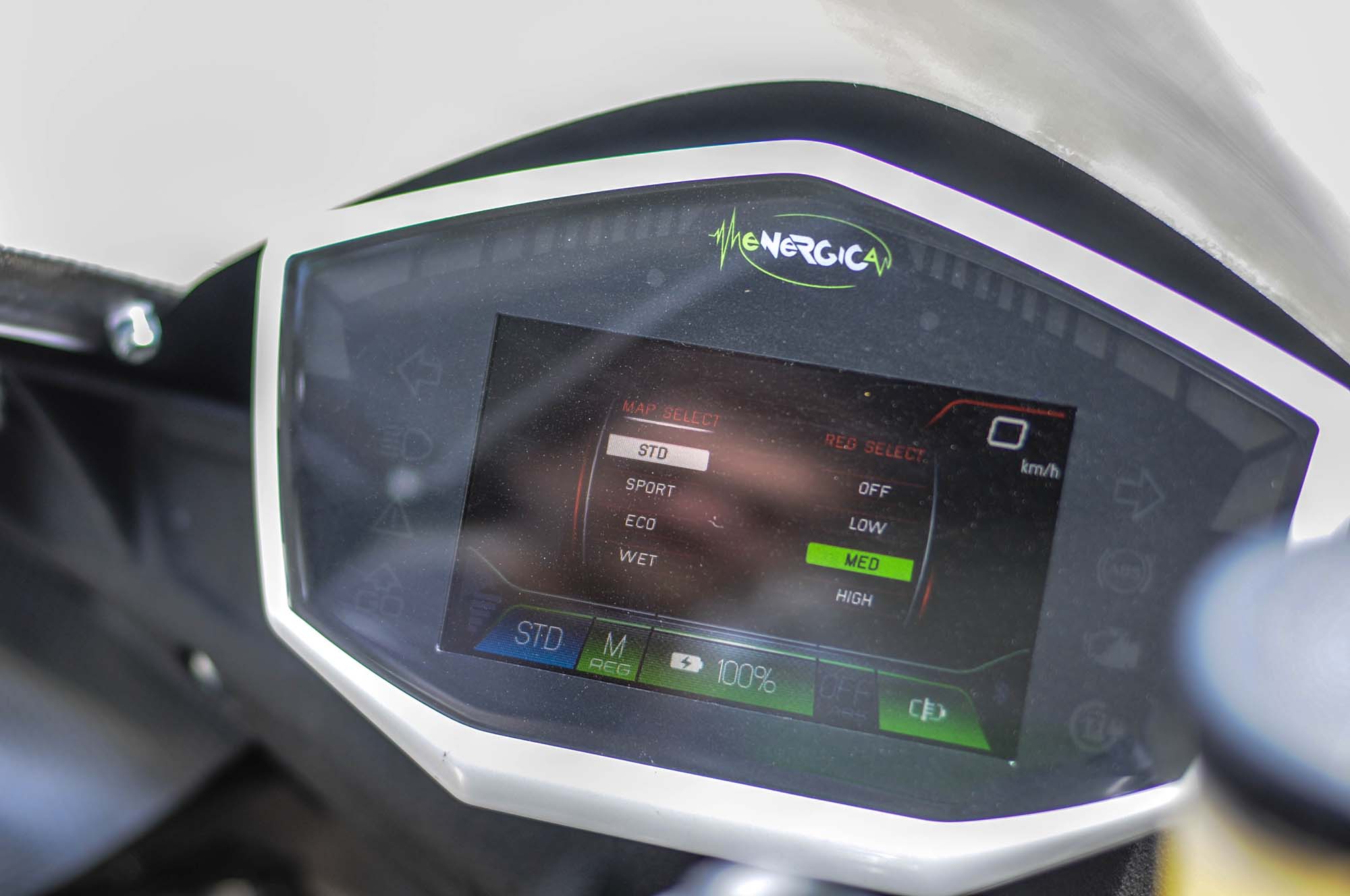 Most impressively is the 4.3″ TFT dash, which has a clean and attractive display for bike systems and vitals. Four riding modes, three regenerative braking modes (plus an “off” mode), makes for an adjustable ride.