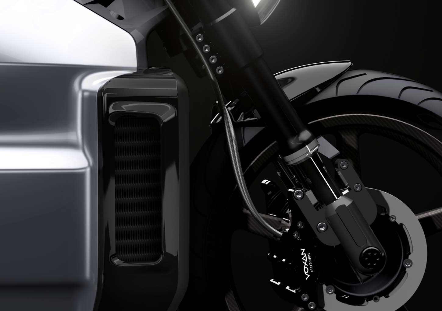 The shape of the swingarm is to accommodate the apparently physically large battery pack that is shrouded by the Wattman’s aluminum monocoque frame, which Voxan calls an “exoskeleton” design.
