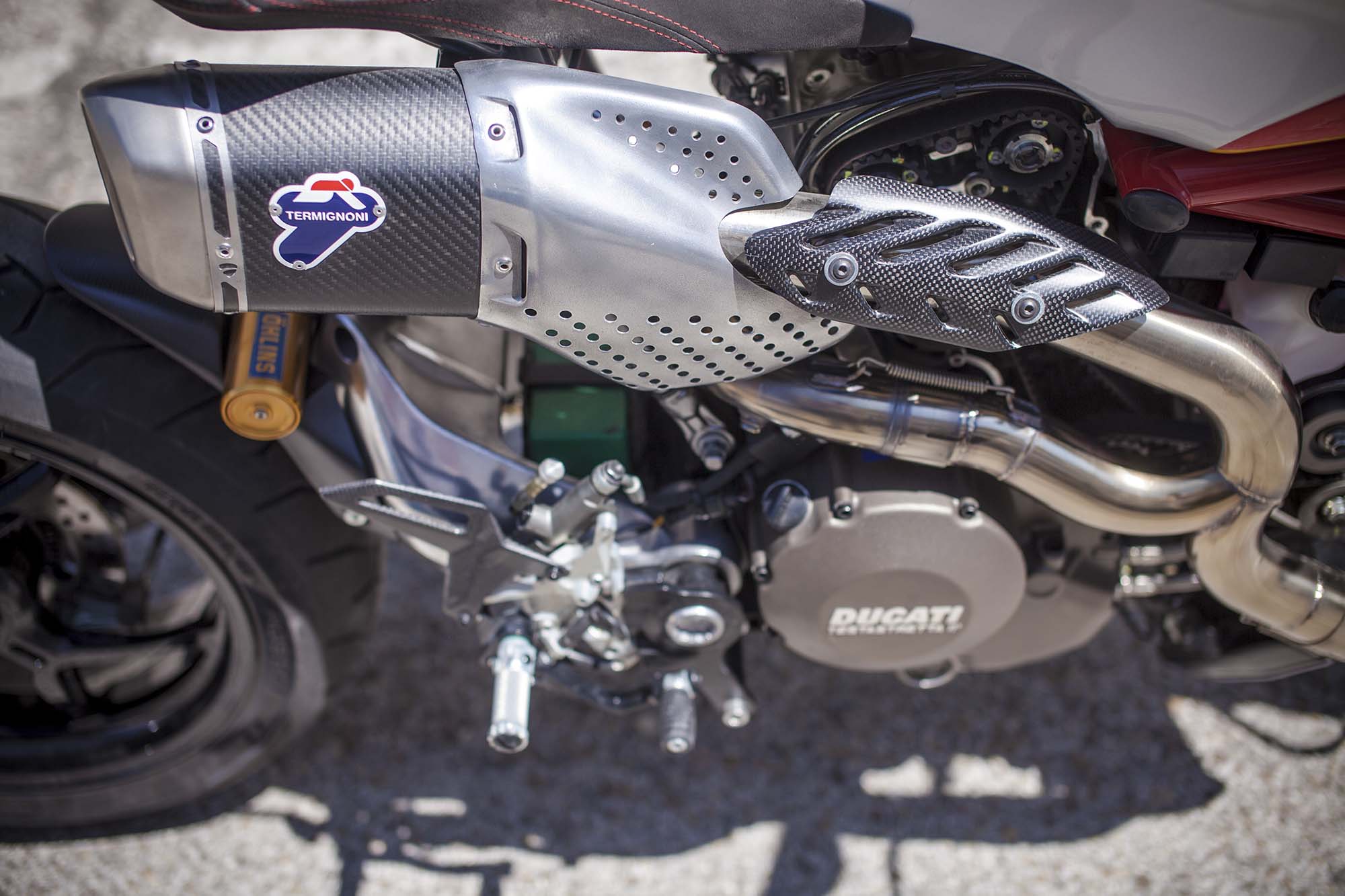Perhaps it is the high-mount, scrambler-styled Termignoni exhaust, or maybe it is Pepo’s signature “RAD” seat, that has adorned so many custom Ducati’s before this one, but is now wrapped in suede. Whatever it is, it’s working.