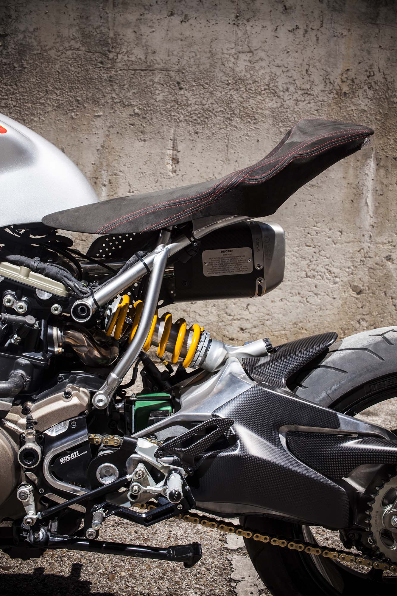 Unlike many of Pepo’s builds, this one uses many of the stock Monster 1200 pieces, rather than Frankenstein-ing a new machine from various Borgo Panigale pieces. Still, there is plenty of character to be found in Siluro, including the minimalist custom subframe.