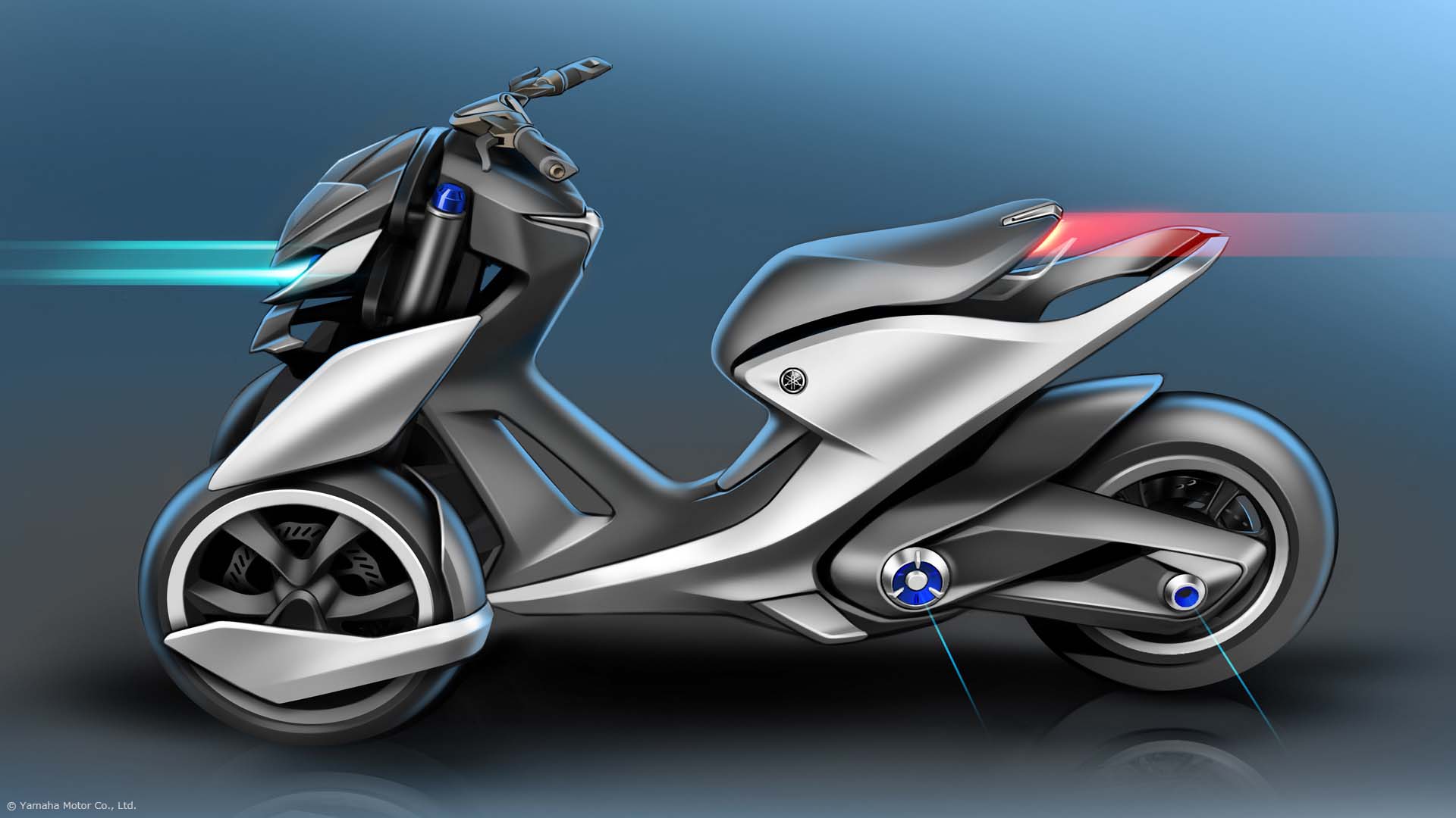 Built like a scooter, with a feet-forward sitting position, Yamaha’s 03GEN-f concept expands on the Tricity’s on-road focus, but with sportier motion in mind.
