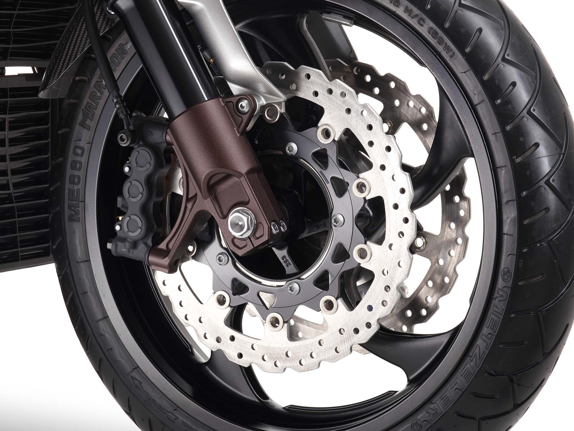 At the heart of the machine is the same 1,679cc V4 engine, which pumps out 197hp (200 PS). You will also find the stock aluminum dual-spar frame, dual 320mm front disc brakes with six-pot radial calipers, and a massive 298mm rear brake disc that stops the 200/50-18 rear tire.