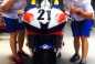The first day at the track we set up, got situated, said hello to the team, checked out our bike and it’s new paint job, a SynergyForce Lion! Moriwaki, Motul, Dunlop, Honda, FIM Women’s Commission logos. It was awesome. Mine and Melissa’s names on the front fairing on either side of the windscreen were the final touch that made it ours.