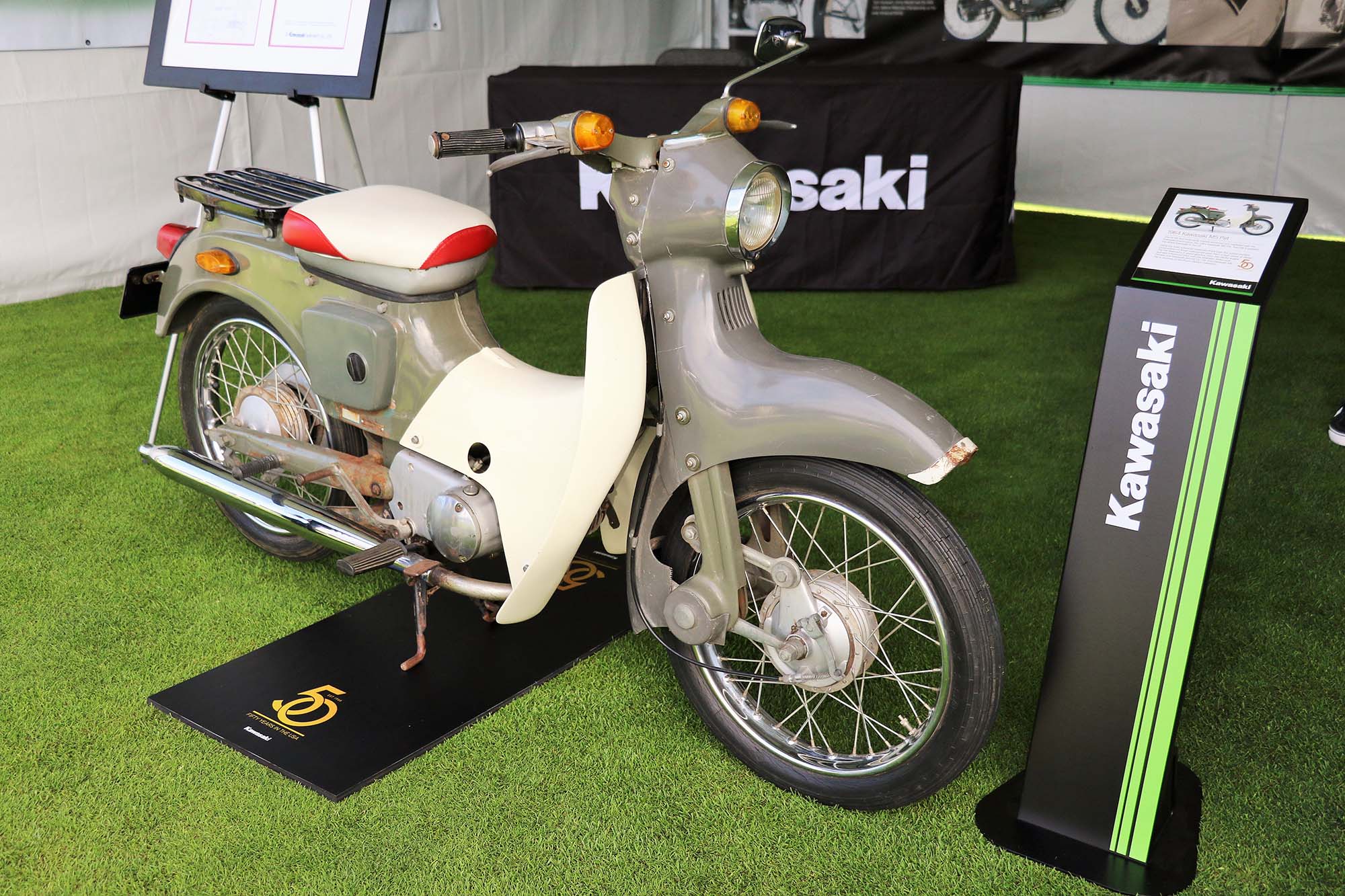 The Pet had a step-through design and was one of the first motorcycles marketed in the US under the Kawasaki brand name. Kawasaki also took an opportunity to introduce its new Z125 Pro to the public, garnering a lot of interest from passersby.
