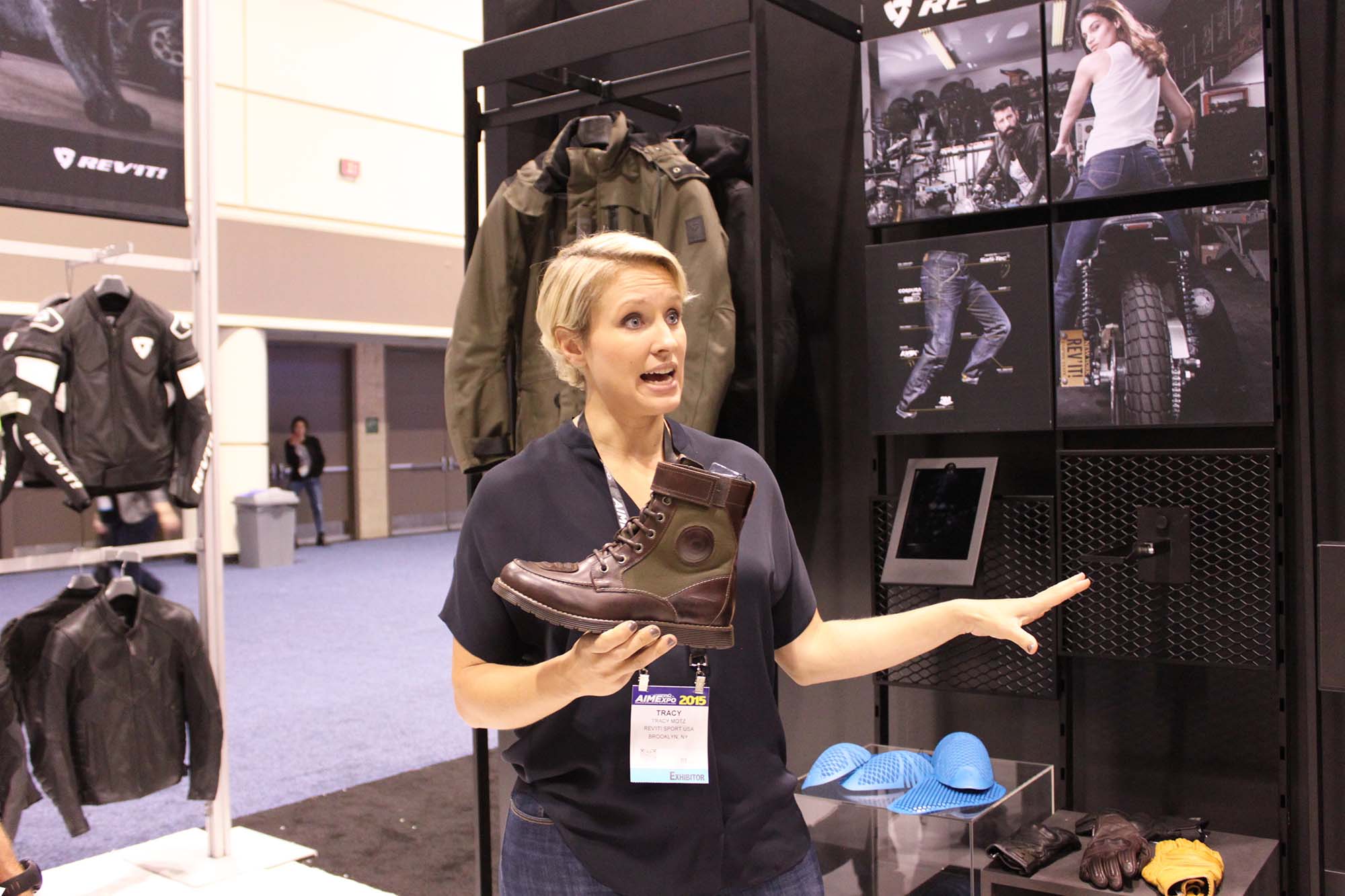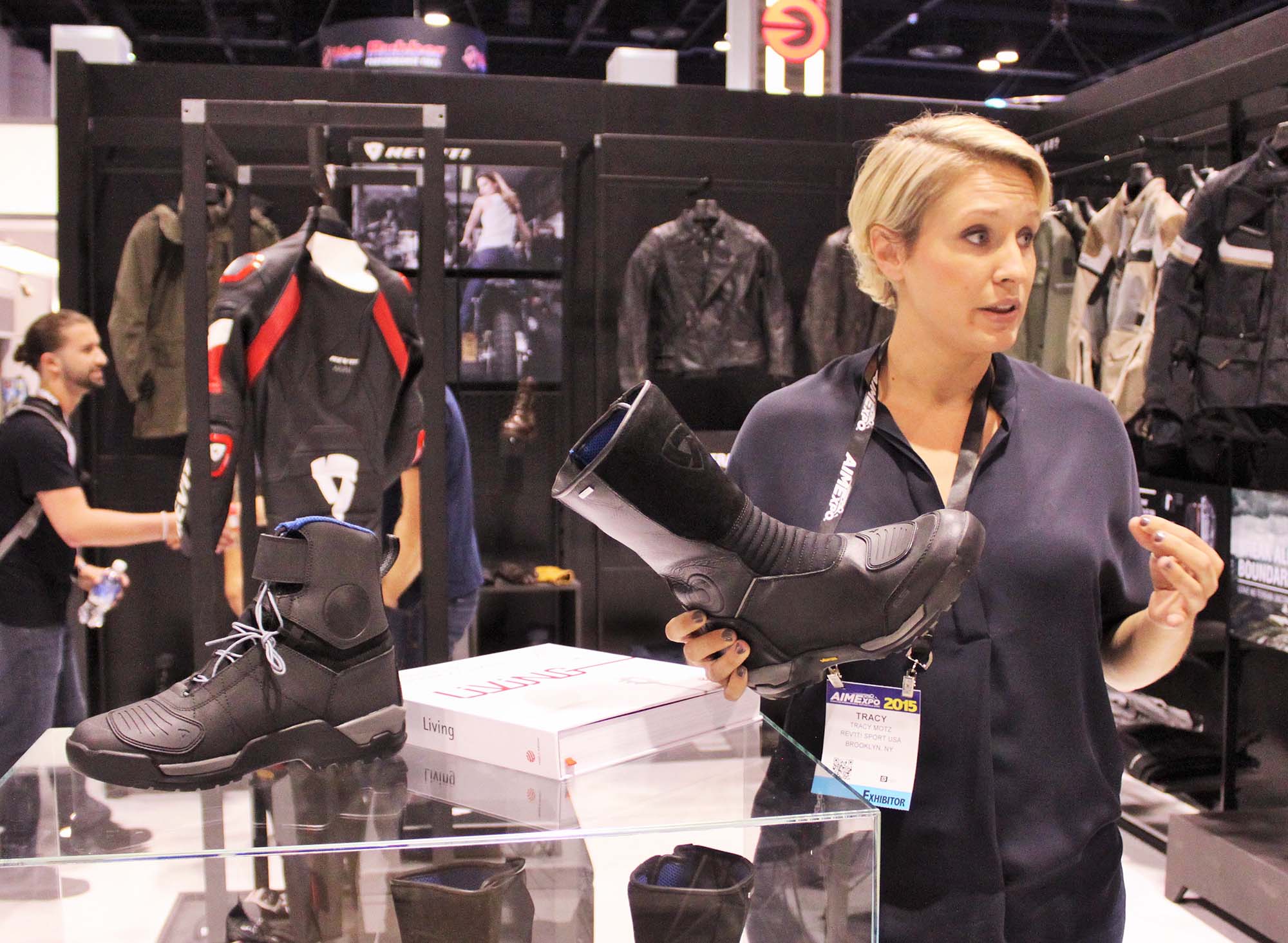 SENA introduced a helmet with built-in active noise cancelling technology. And Bates, a longtime producer of military and law enforcement footwear, showed their new line of motorcycling specific boots.