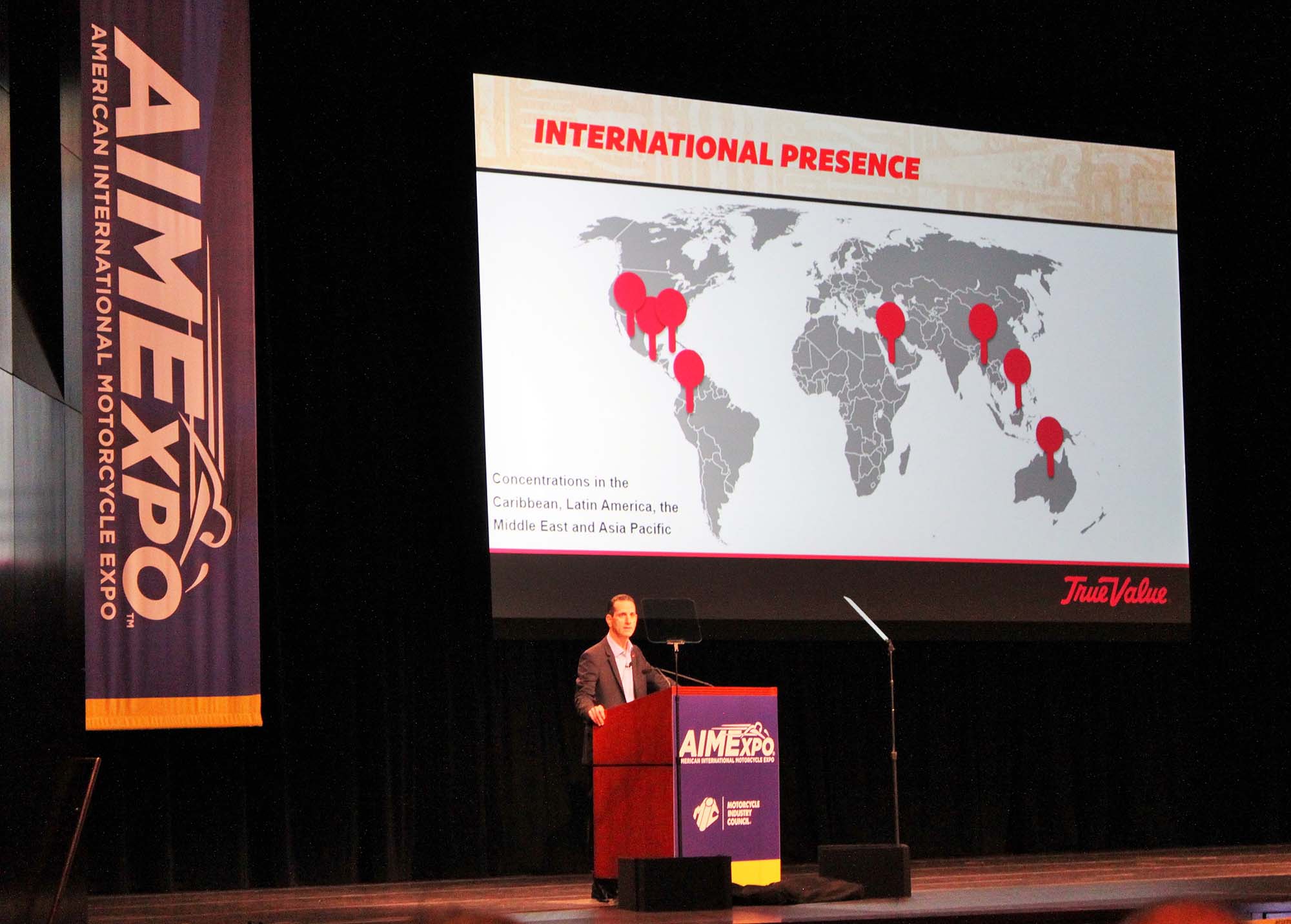 On Friday morning, John Hartmann, the CEO of True Value Corporation gave the keynote speech for the expo. Hartmann was chosen to speak because of his love for motorcycling and because True Value is actually a cooperative, with its stores being independently owned.