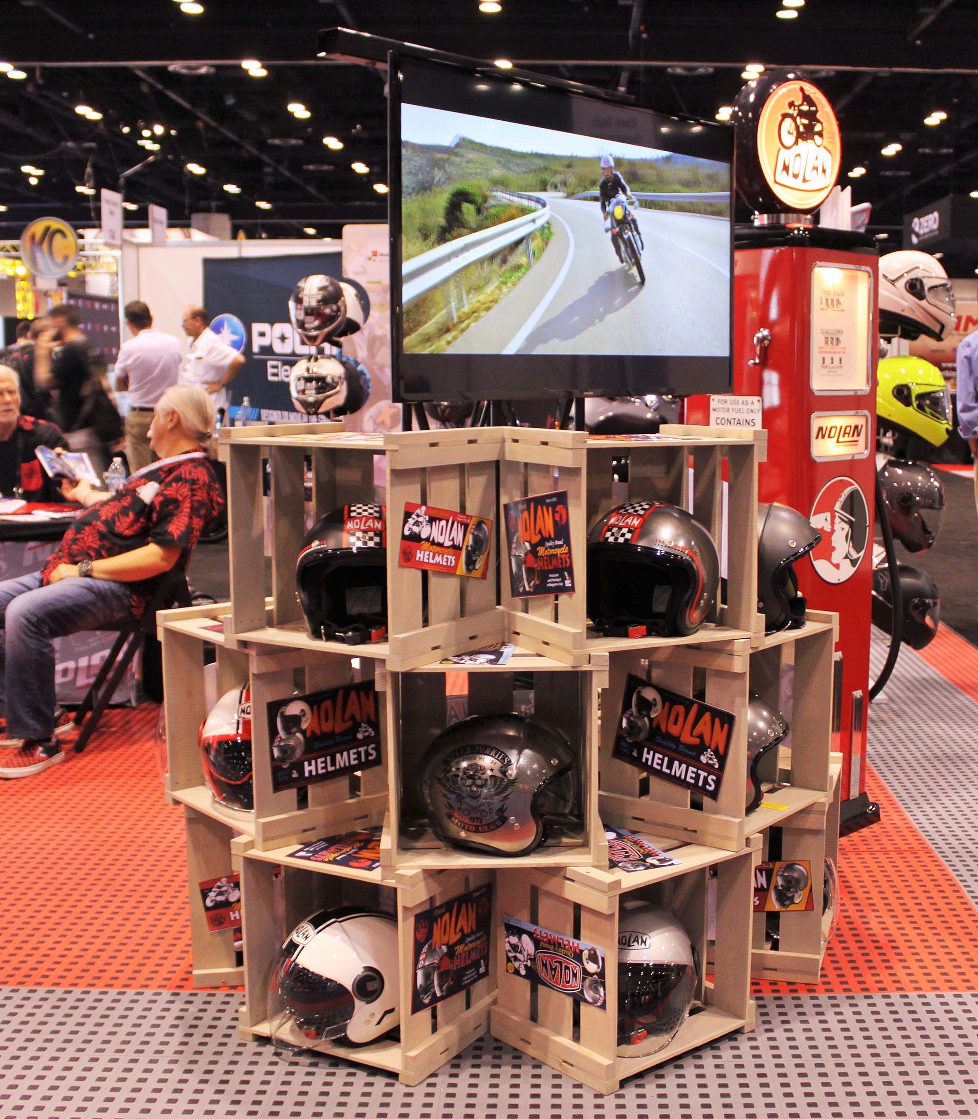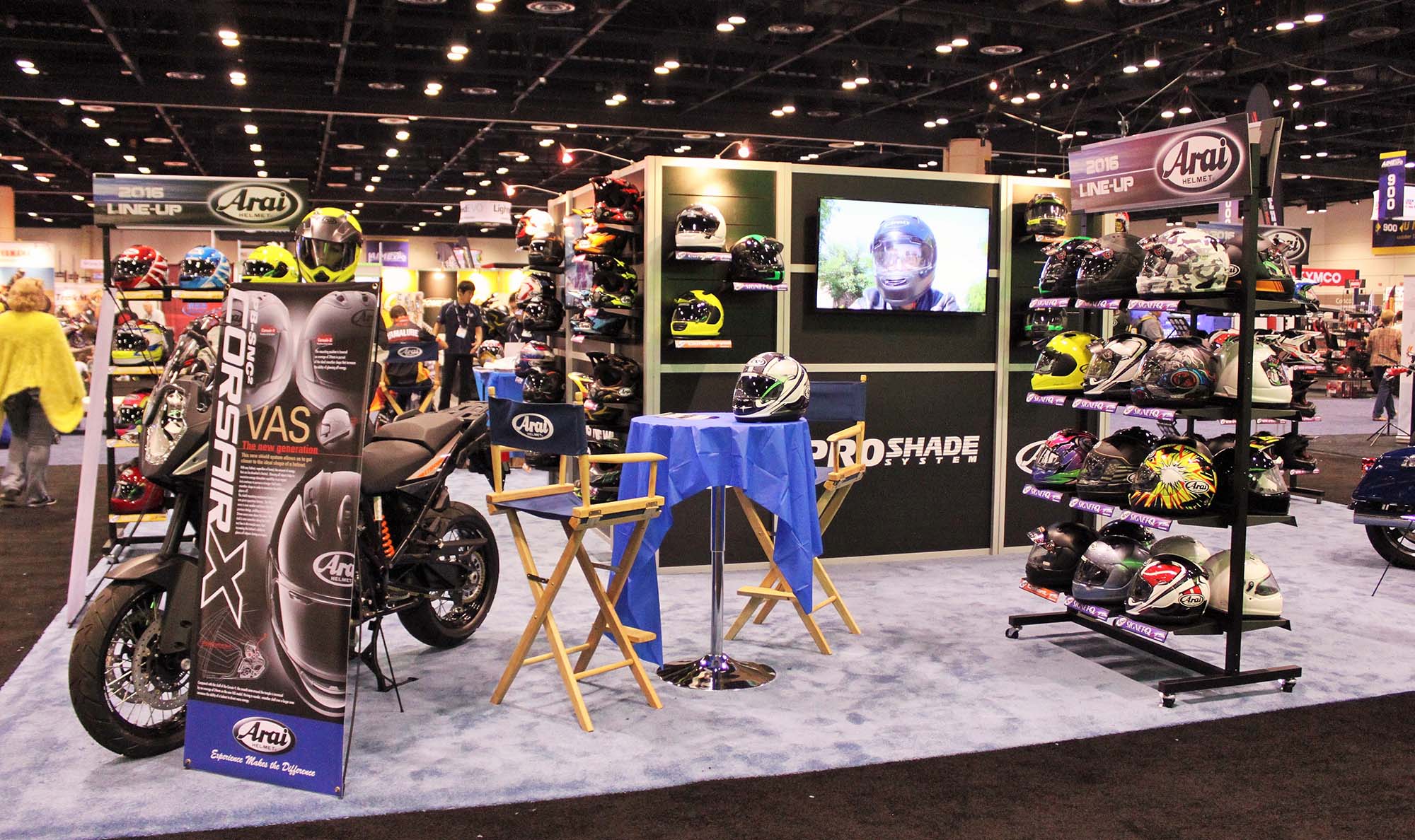 There were a number of interesting accessory introductions at AIMExpo. AGV helmets introduced a new visor system that allows the wearer to transition their shield from clear to tinted with the push of a button.