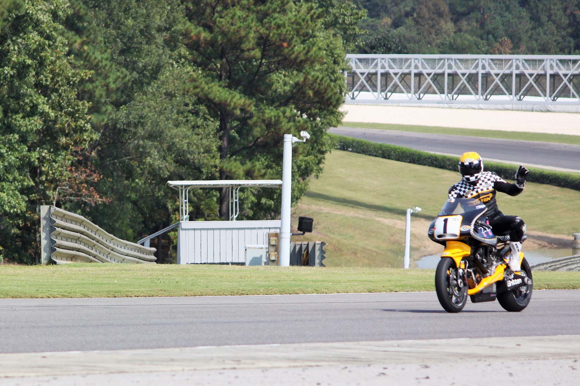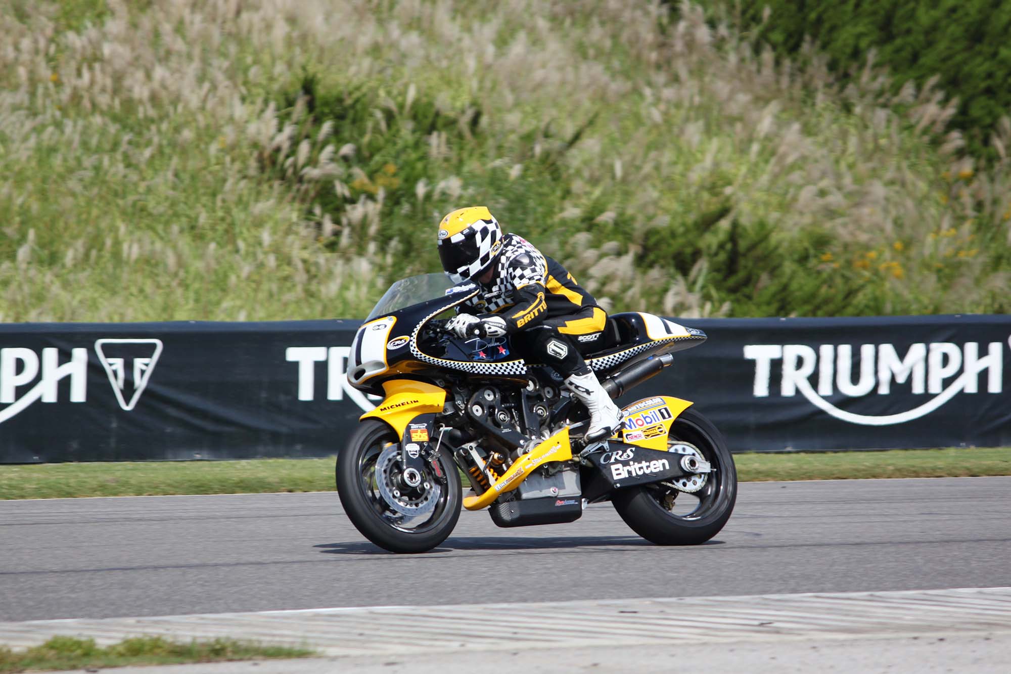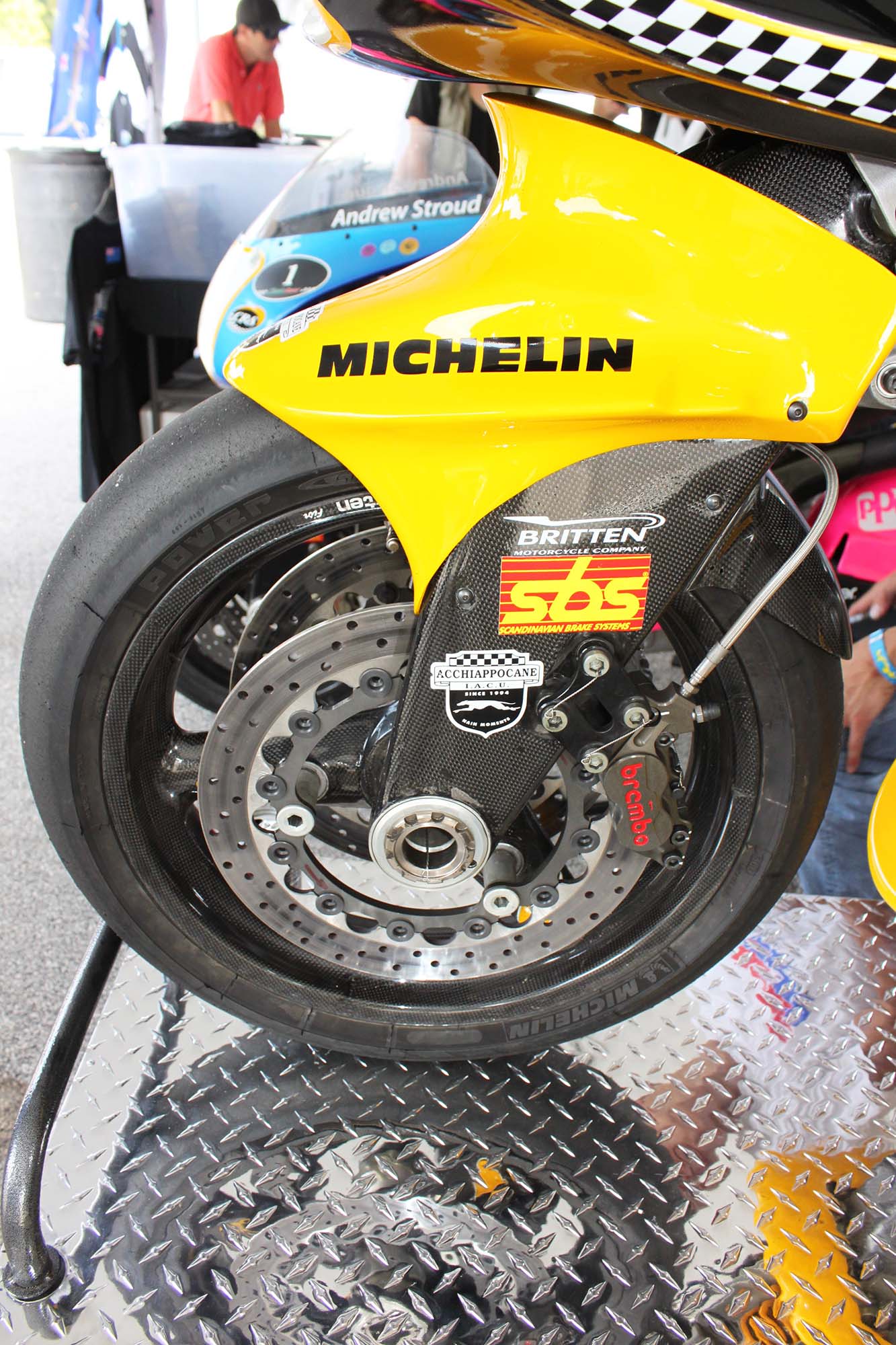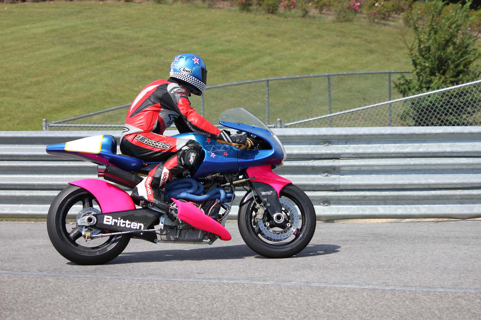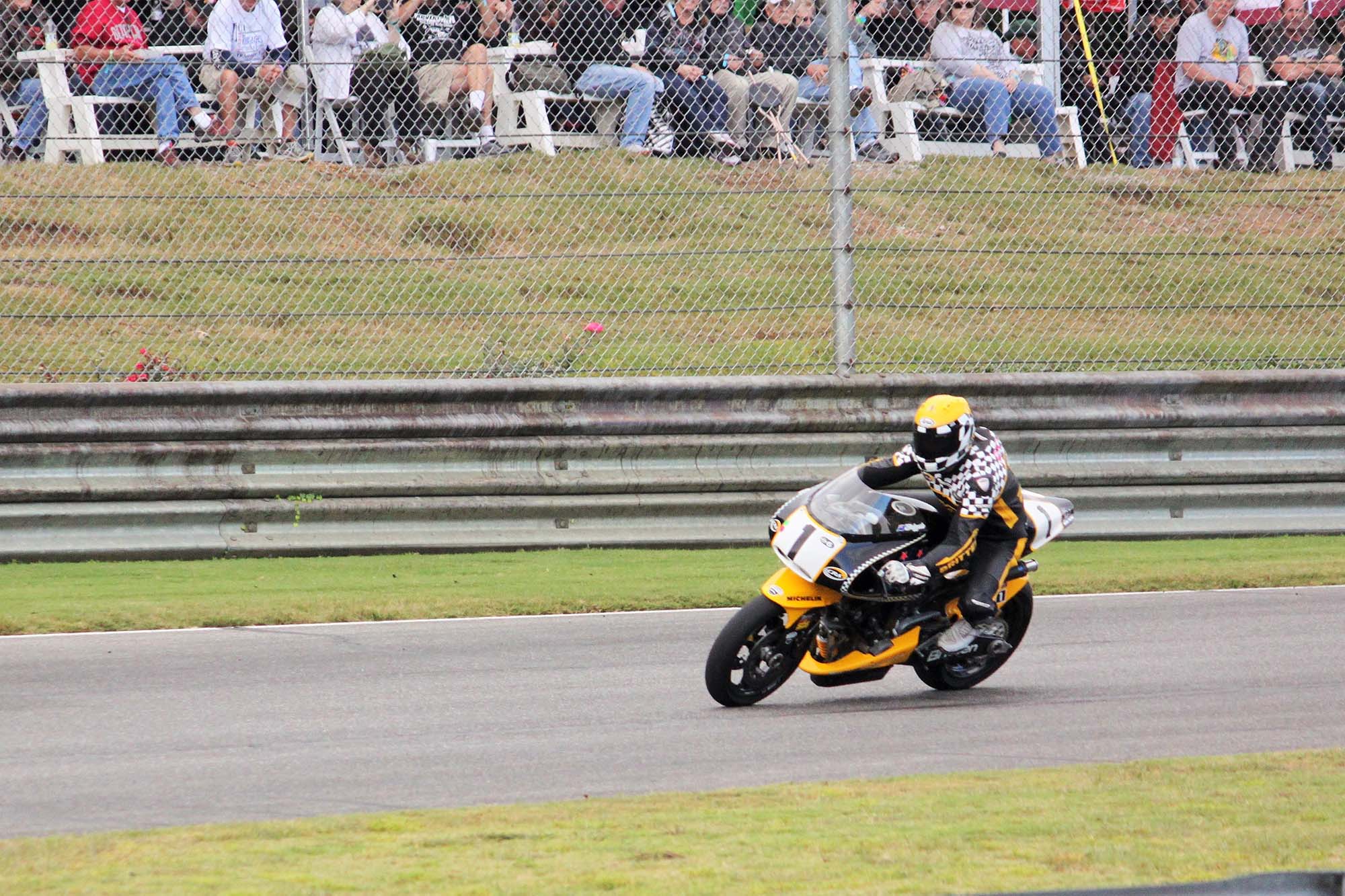 Andrew Stroud, an original Britten rider, actually wheelied his machine across the finish line in celebration. Prior Britten rider Steven Briggs was also on hand for the tribute events. Besides the bikes taking laps on the track, there were many other Britten events during the entire weekend.