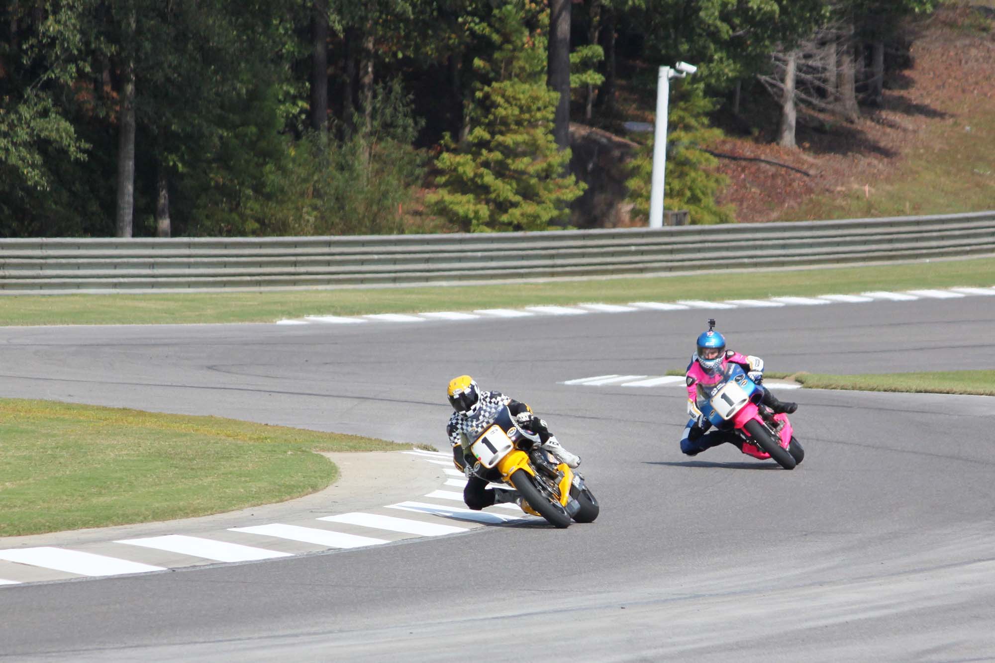 The bikes were ridden pretty gently most of the time, but on Saturday, two of these amazing machines participated in one of the vintage races. While not pushing for the lead, neither motorcycle was treated with kid gloves either.