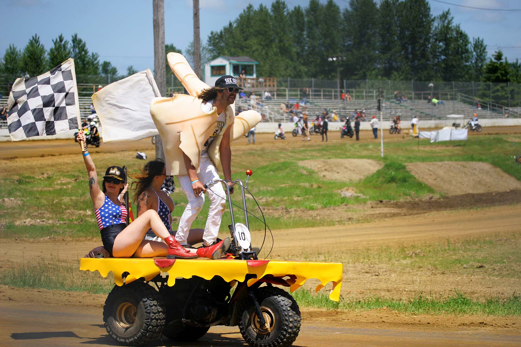 With all the ridiculousness, you might expect ‘racing’ in the Innapropiate Streetbike, Chopper, Street Tracker, Kitchen Sink, and Girl on a Motorcycle classes to be low-key. I certainly did. Two easy heat-race wins in the Innapropriate Streetbike class reinforced that bad assumption.