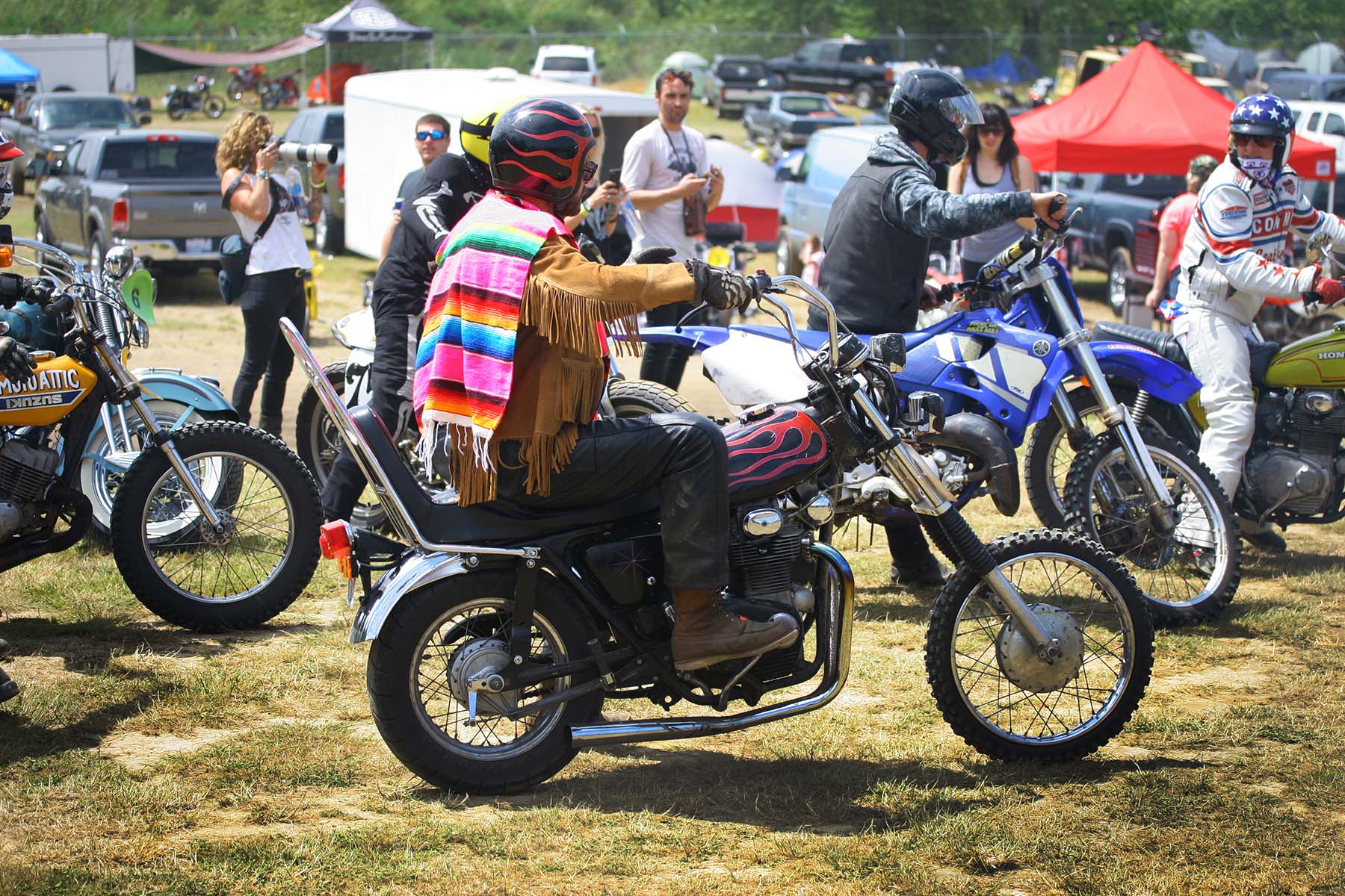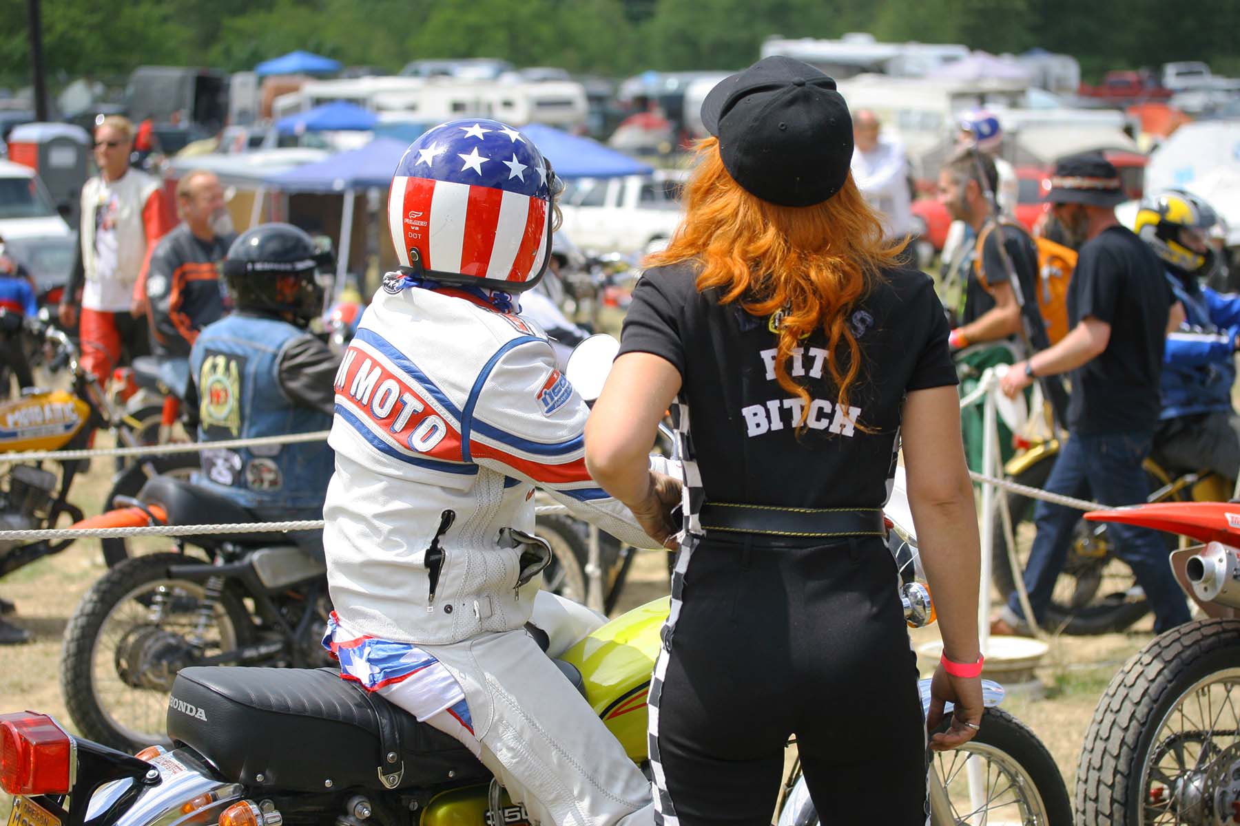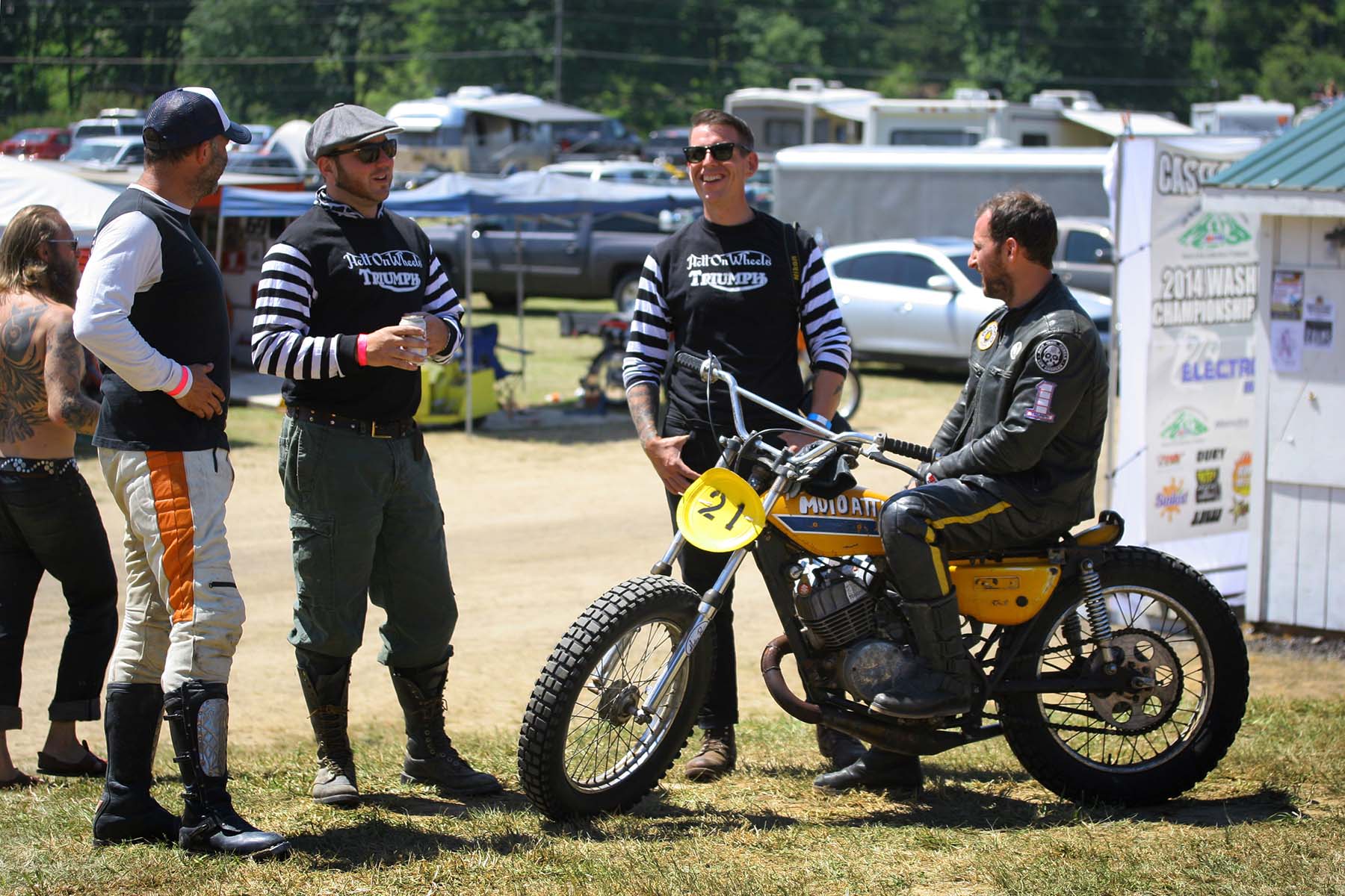 There is serious weirdness afoot. This must be what my generation’s idea of 1970 is like. Part Hells Angels, part Merry Pranksters, part Jackass, part hipster, part daredevil, part Instagram geek, part small-town fairgrounds, part AMA Pro Flattrack. The crazy thing though, is that almost everyone here is going to race motorcycles together. On a racetrack. There are even race officials!