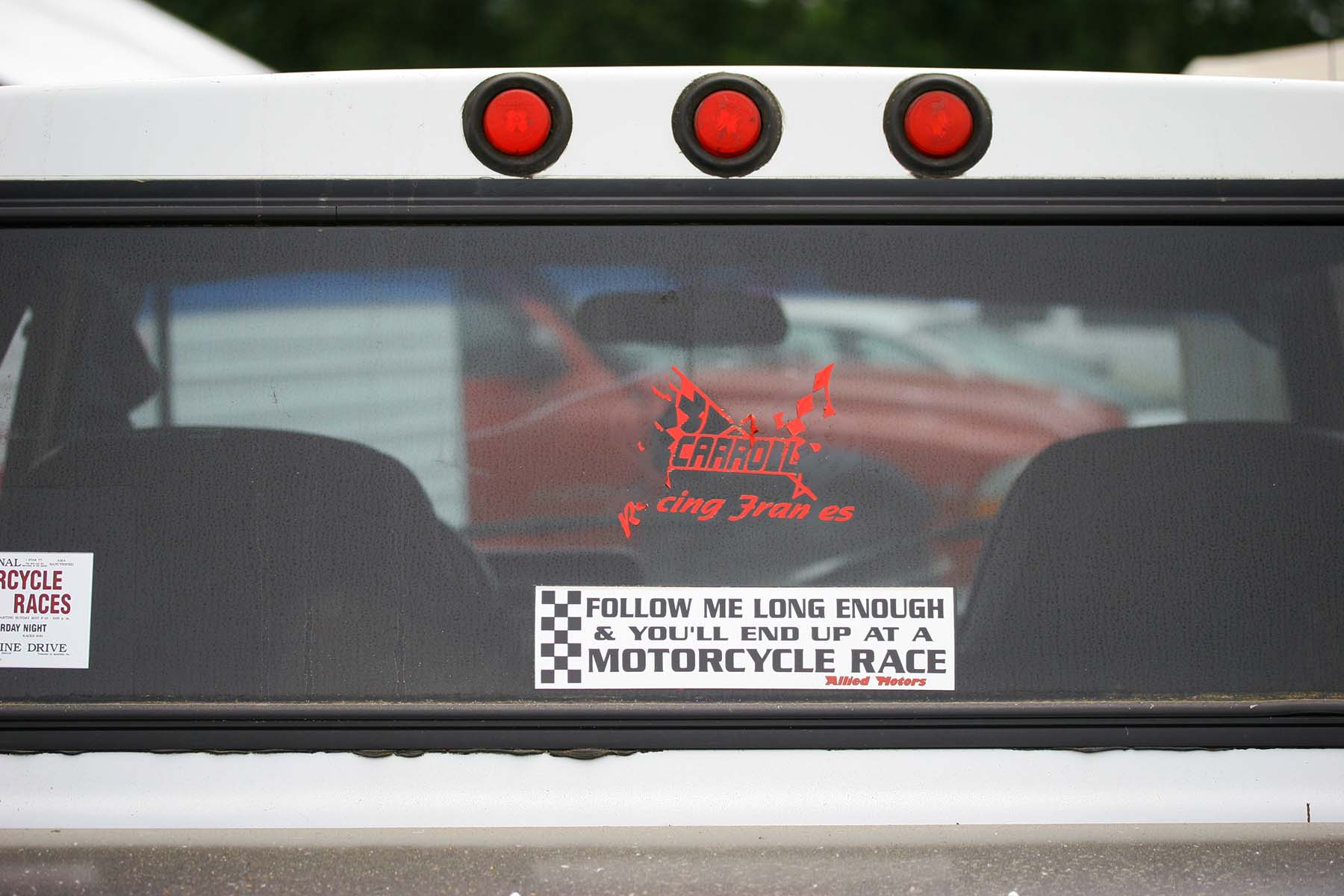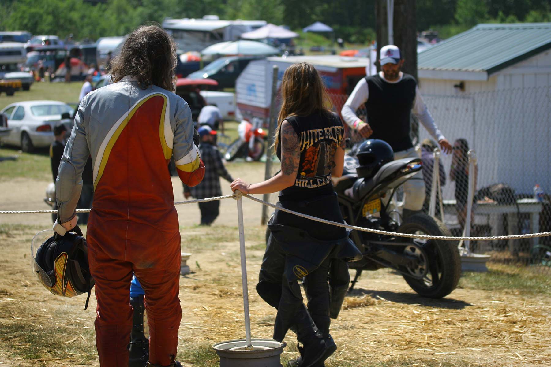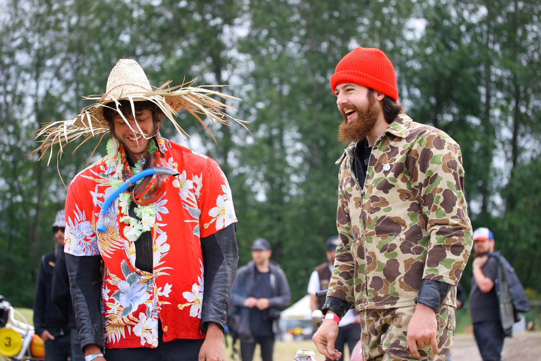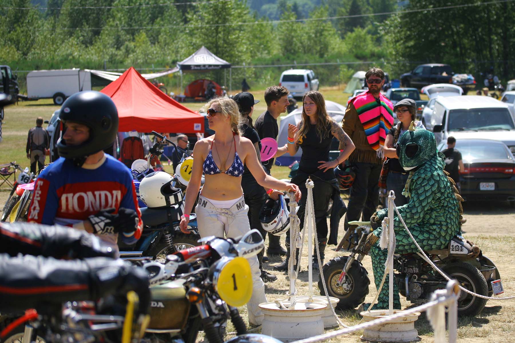 There is serious weirdness afoot. This must be what my generation’s idea of 1970 is like. Part Hells Angels, part Merry Pranksters, part Jackass, part hipster, part daredevil, part Instagram geek, part small-town fairgrounds, part AMA Pro Flattrack. The crazy thing though, is that almost everyone here is going to race motorcycles together. On a racetrack. There are even race officials!