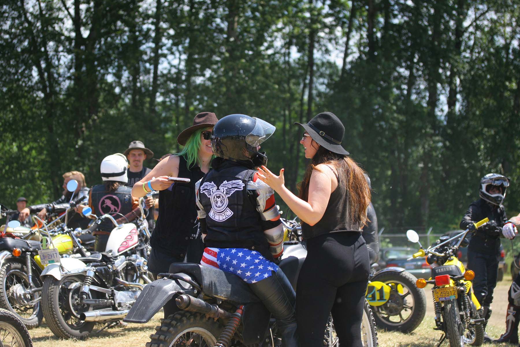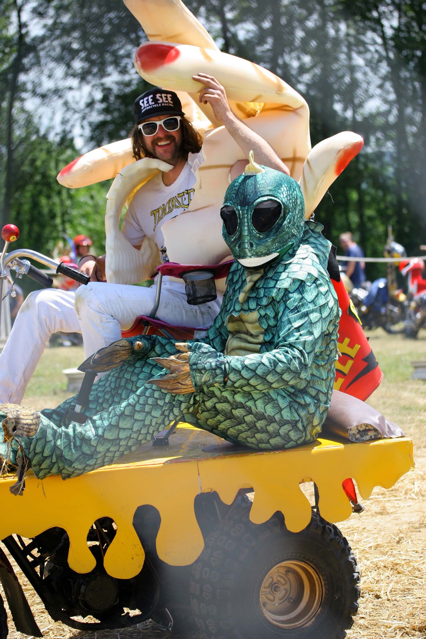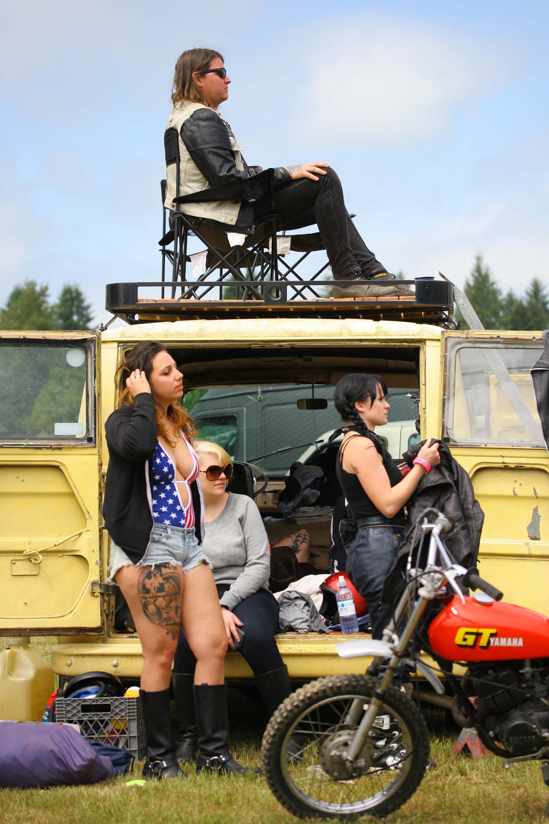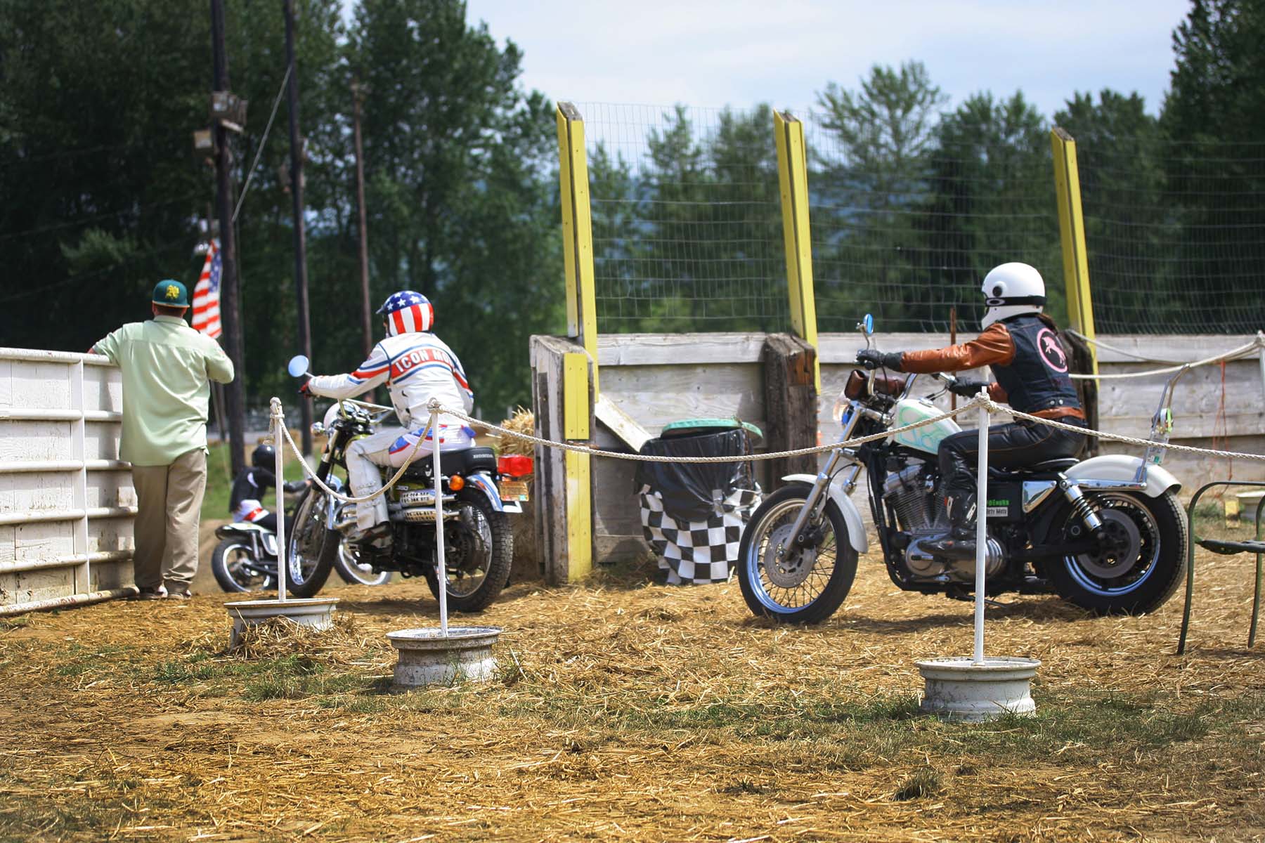 We arrive at the scene in Castle Rock, WA. There are people in shorts riding all manner of choppers, Thor is dressed in white 12 o’clocking a slice of Sizzle Pie that Bjorn Drake affixed to a Honda ATC200, something to do with some advertising deal, but no one cares. It’s awesome.