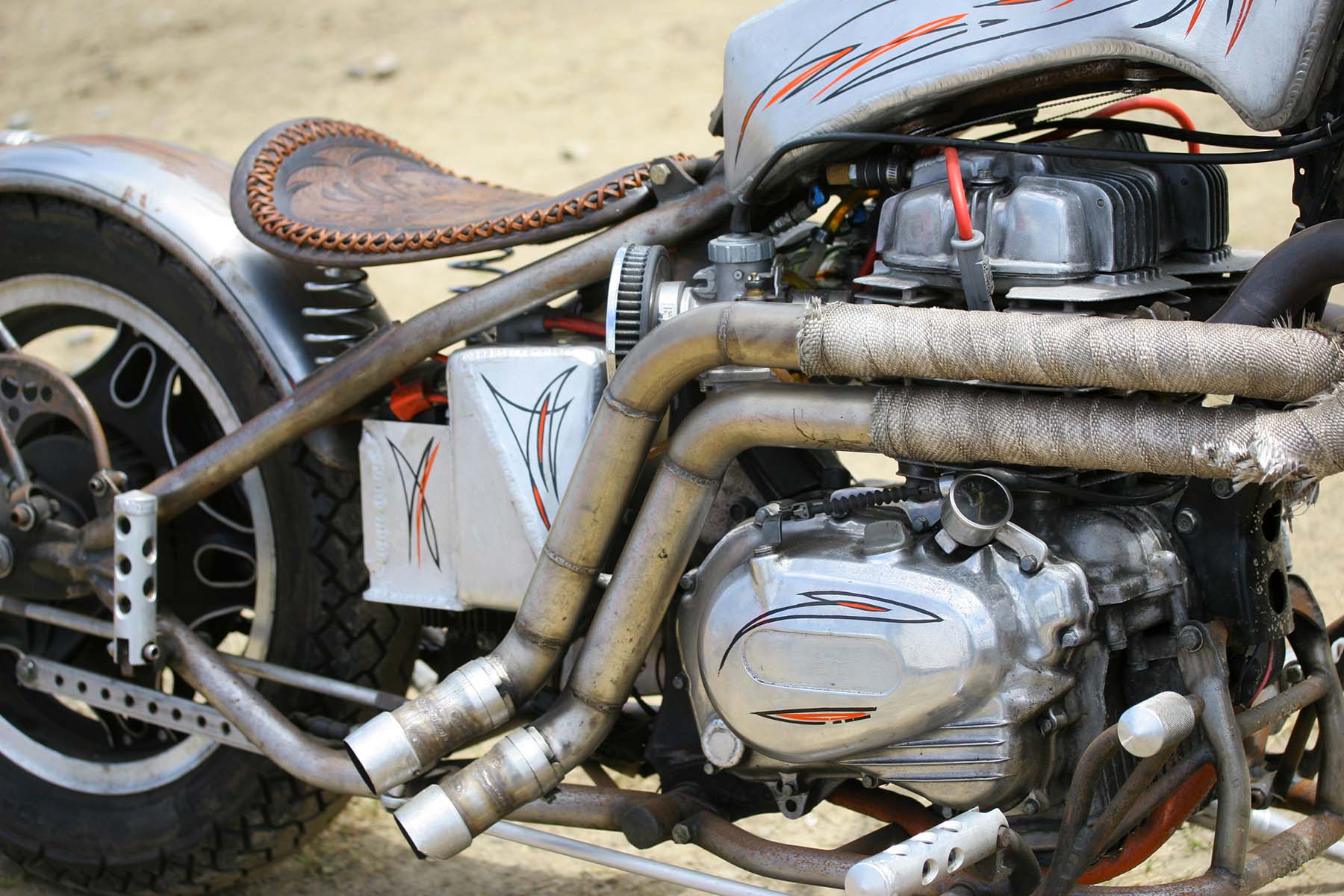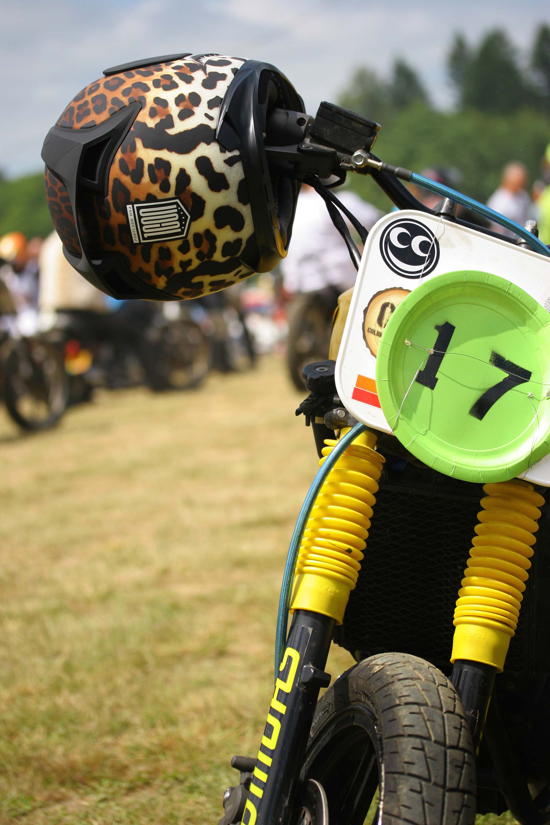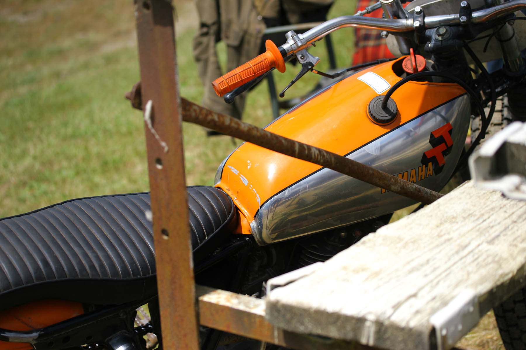 It’s got apes, a pullstart, a sweet wheelie bar, a plinker, bar mounted rear brake, and well, just look at the pictures. As it turns out, there’s no tech inspection. When I go to sign in, Gary Inmann tells me, seriously, that if I see Dave England anywhere to tell him he doesn’t get to race if he doesn’t register. He’s still in his tent.