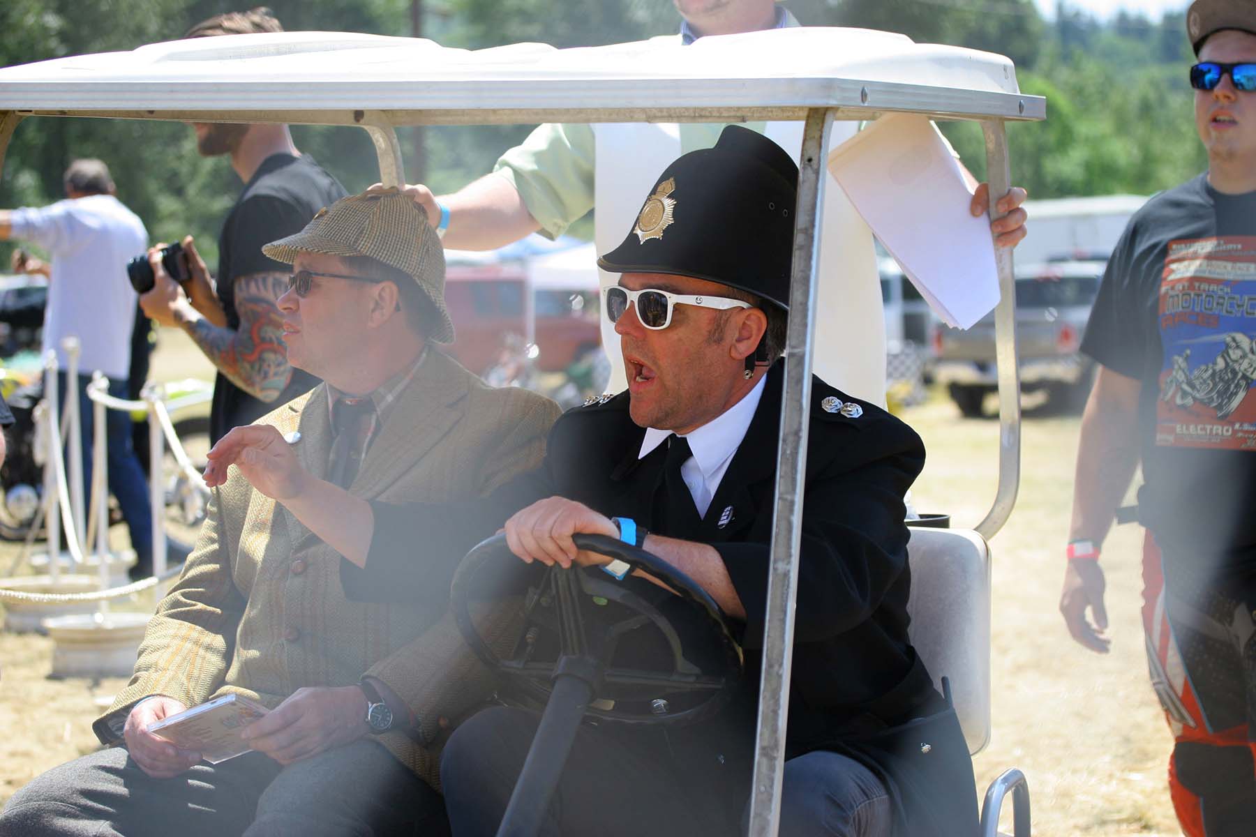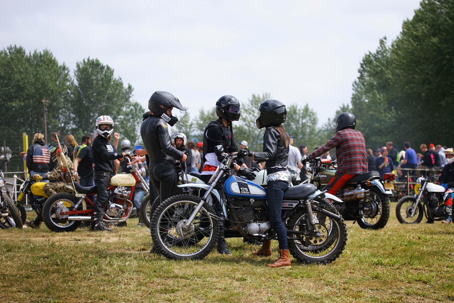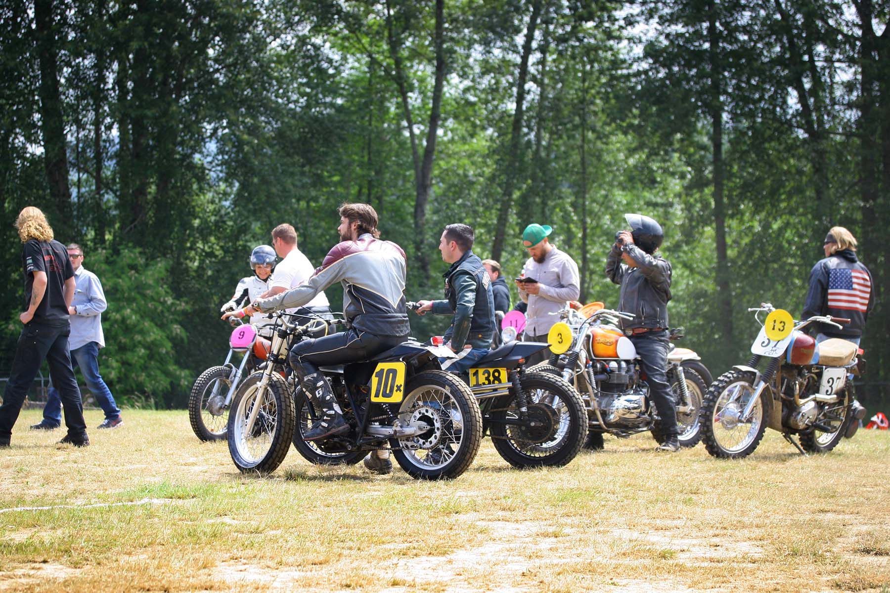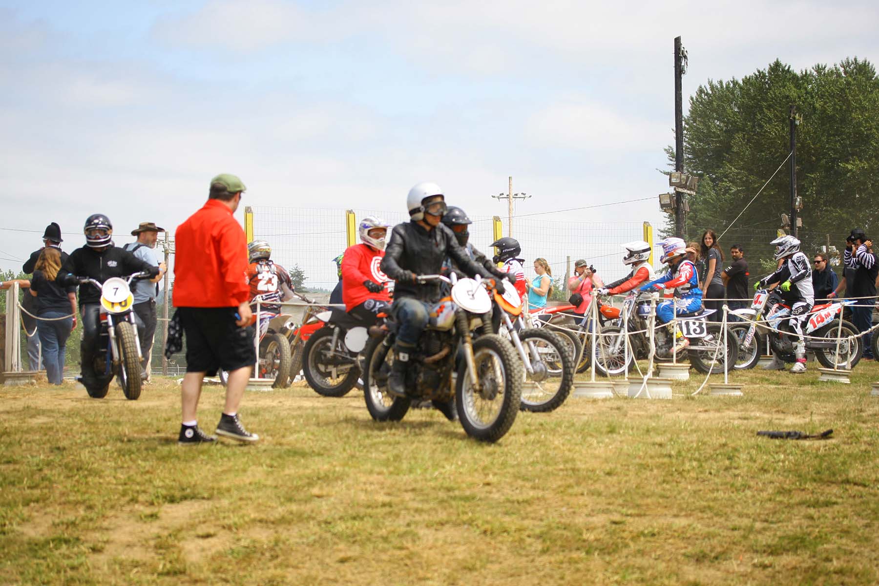Drew Hopkins and Brody Cox from Bixby Moto were also on three wheels, and so was NWC’s 750 Sargent from Portland (a real-life William Murderface taking his aunt racing). Dave England in a sleestack suit racing in the girls class, Adam Alesky on a super Heritage Springer, a carbon fiber beast of an XR750 up from SoCal, #80 on the plates and unobtainium everything, a freaking Zaeta (Graziano Rossi anyone?).