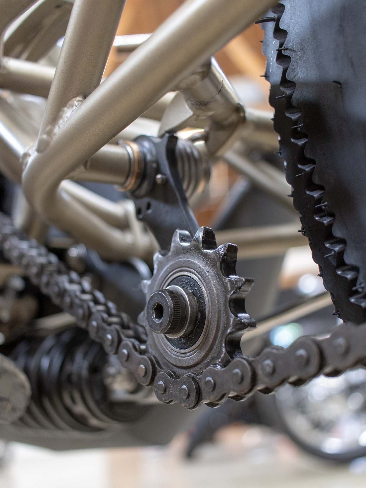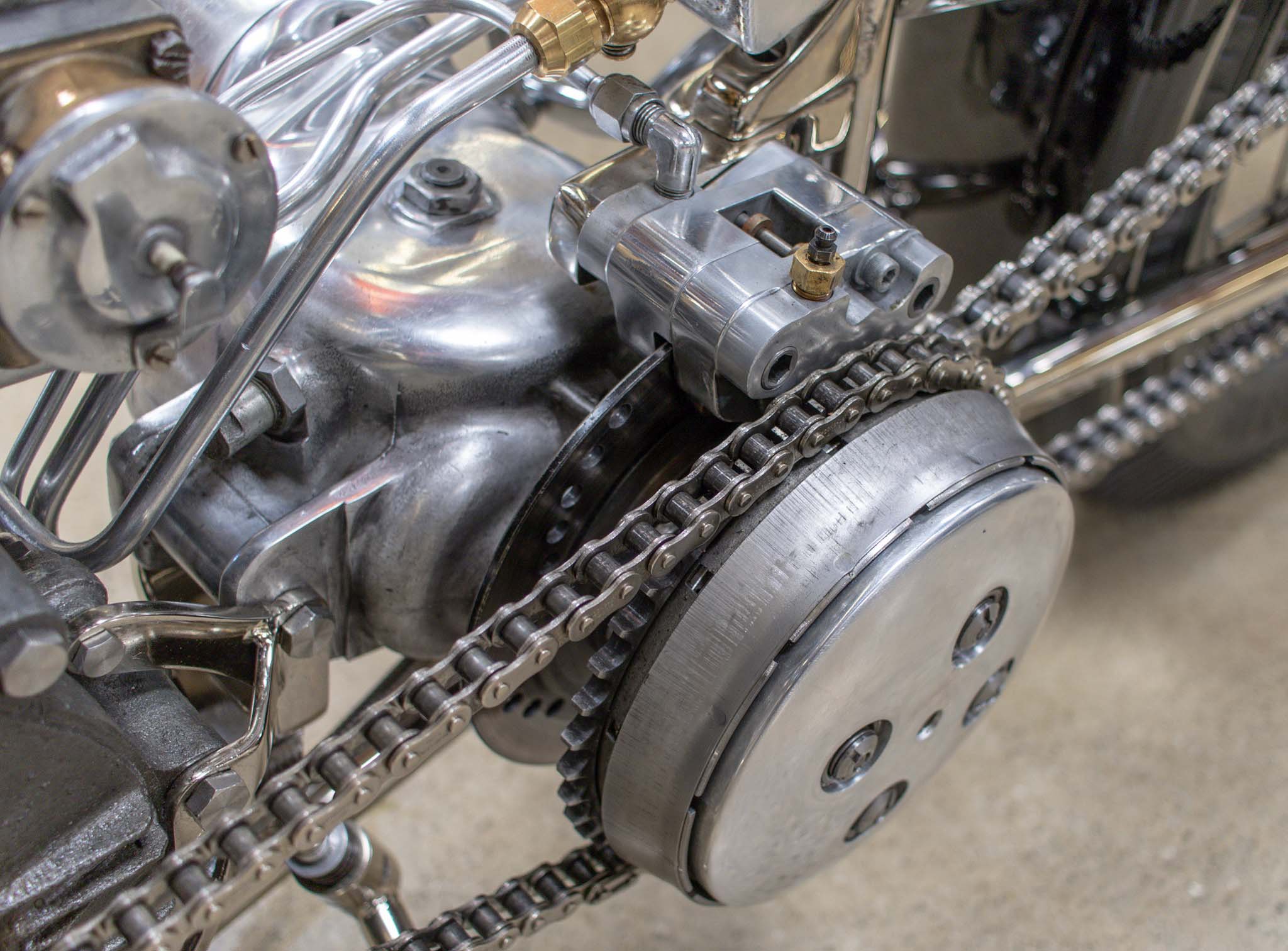 The engine was the jewel of the build, but the details of the nickel plated frame, brakeless spoked wheels, and a transmission mounted disc brake were a sight to behold. Oh yeah, the 80 year old engine made the 25 mile ride in 95 degree heat without a hitch!