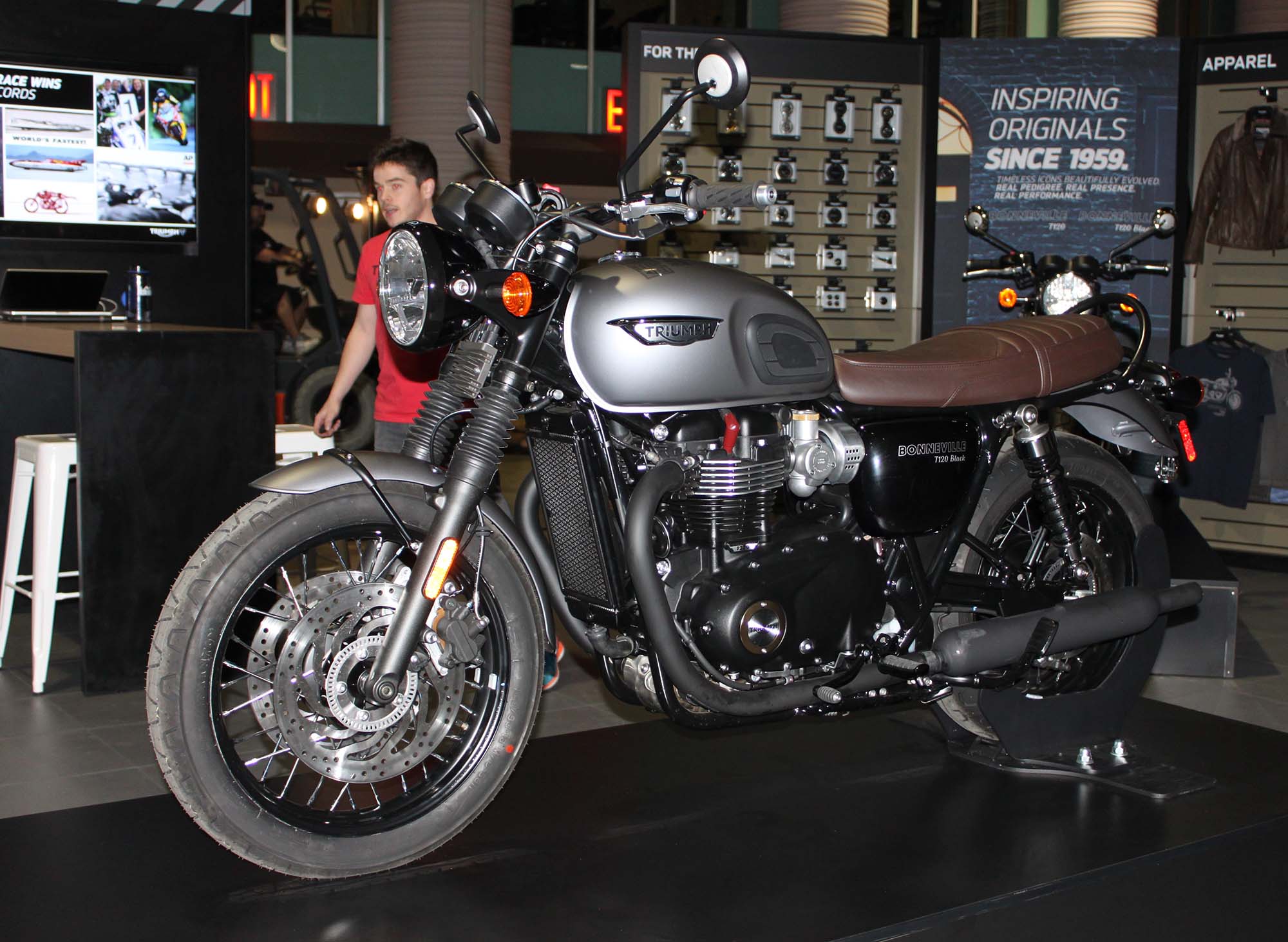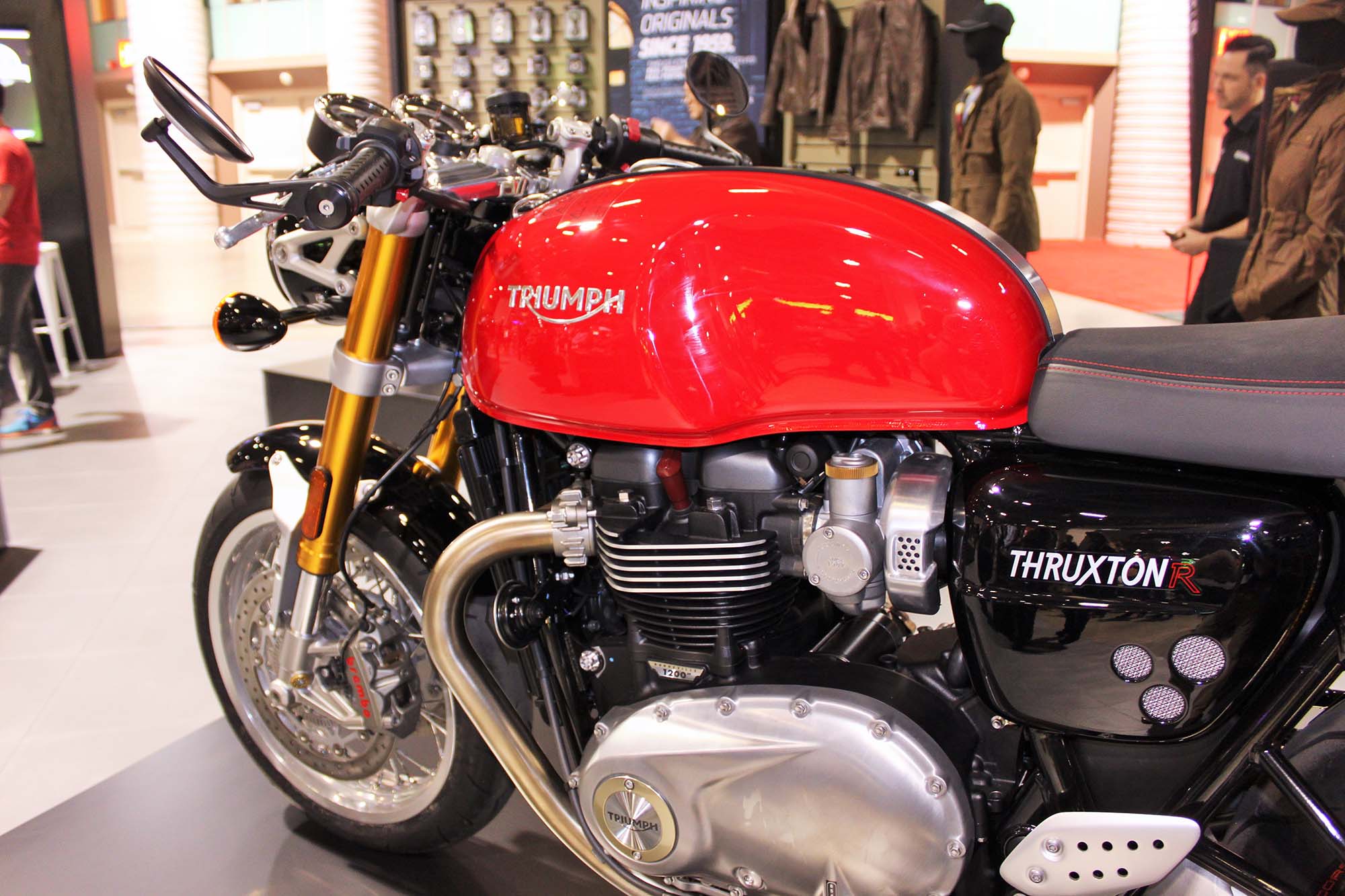 Triumph had an interesting booth that focused solely on the new line of Bonnevilles. The new Thruxton R, Bonneville T120, and Street Twin were all on display.
