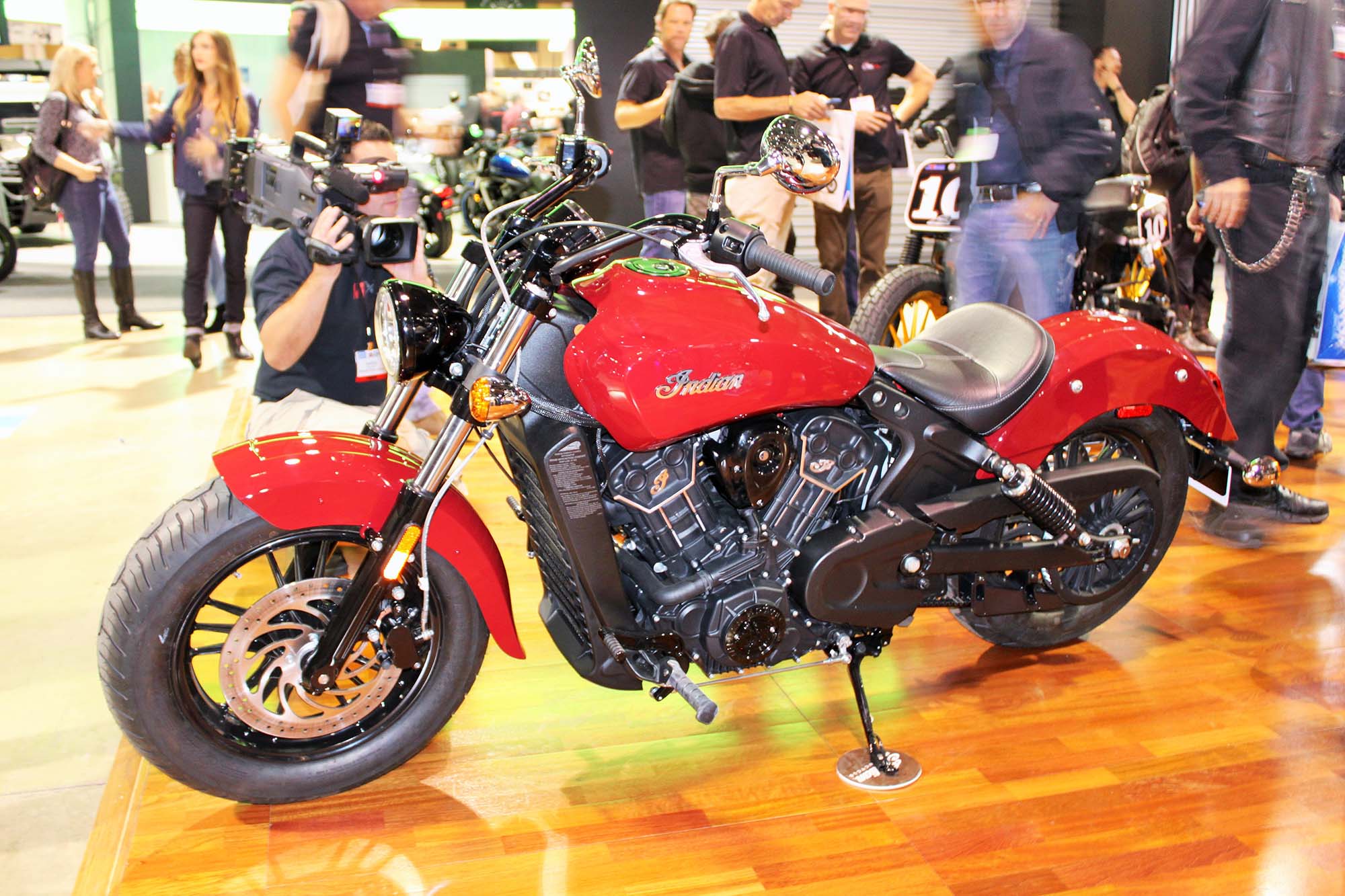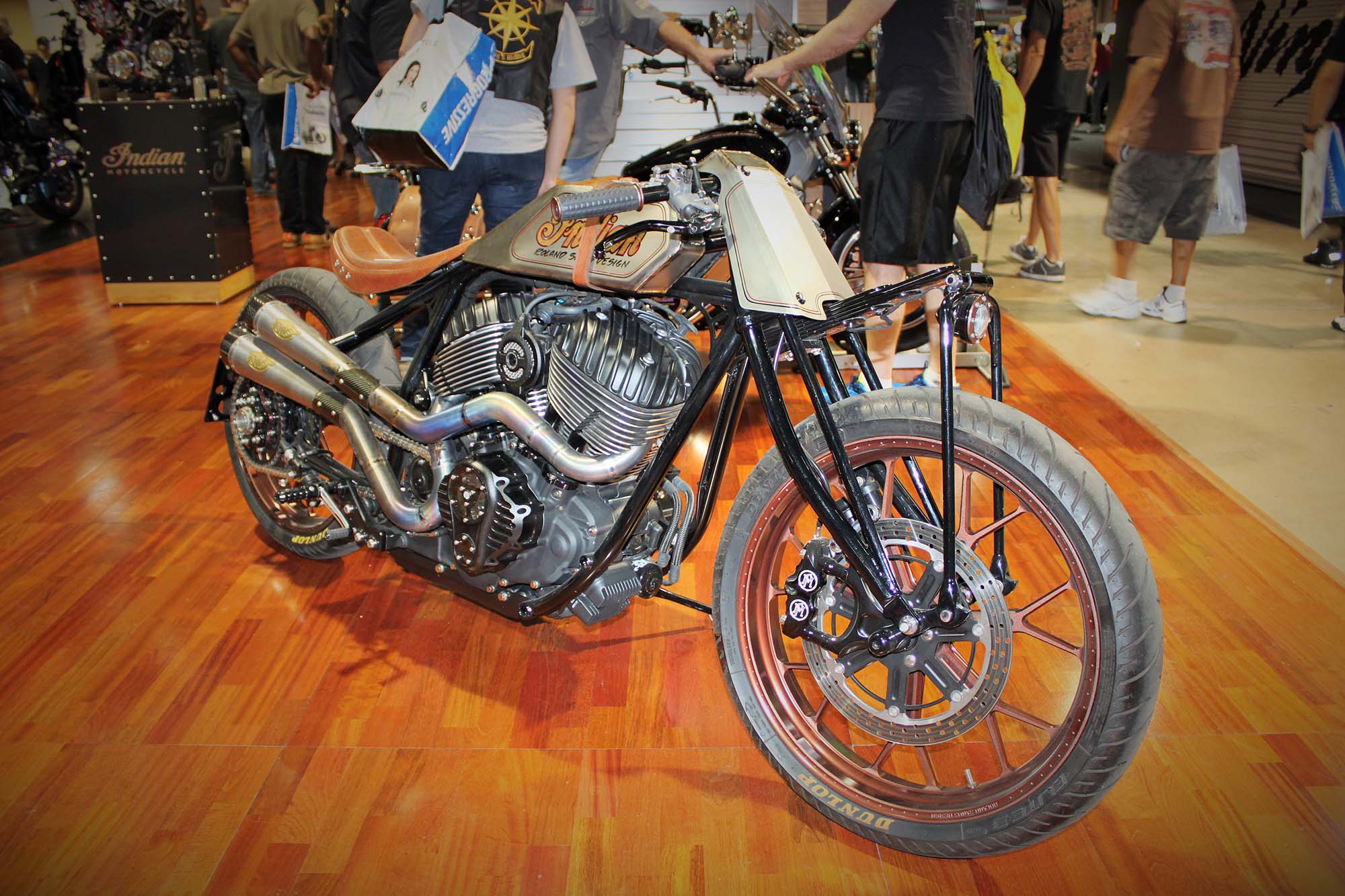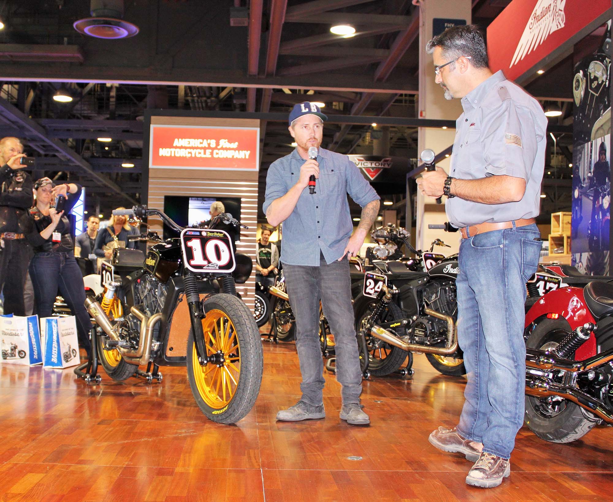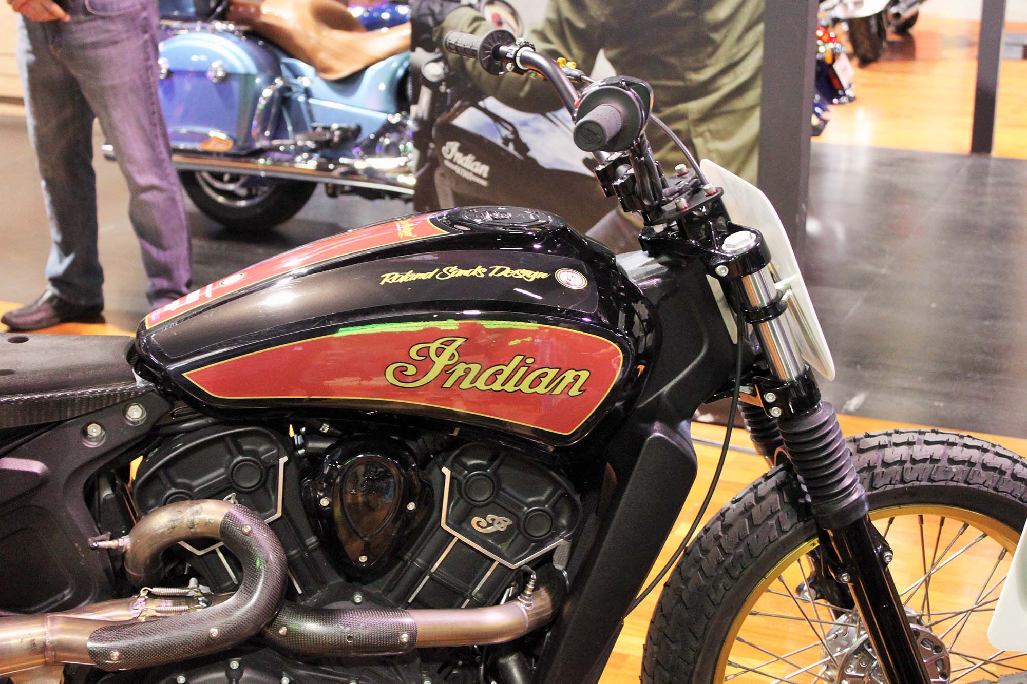 Polaris also had a strong presence at IMS with the Indian and Victory booths both generating a lot of buzz. Indian presented its Scout 60 to the press, with Polaris Motorcycle President, Steven Menneto and custom designer and fabricator Roland Sands, presenting the new machine. Sands also displayed a number of his Scout based Super Hooligan dirt track racers. Very cool!
