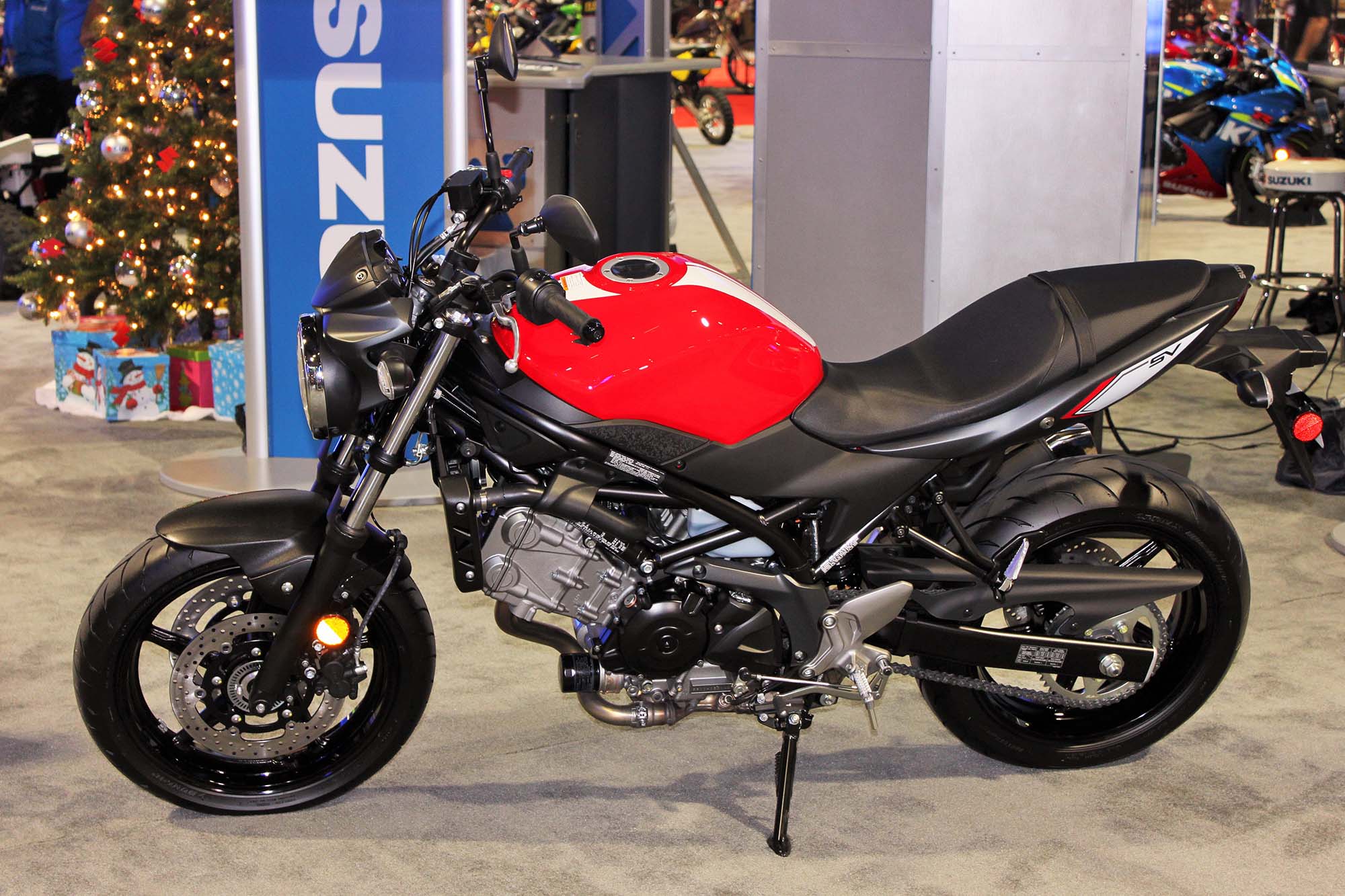 Suzuki continued the gradual revamping of their product line with teasers of the 2017 SV650 and GSX-R1000. Suzuki also continued to emphasize their GSX-S750 and GSX-S1000 naked standards as well as their V-Strom line of dual-sports.