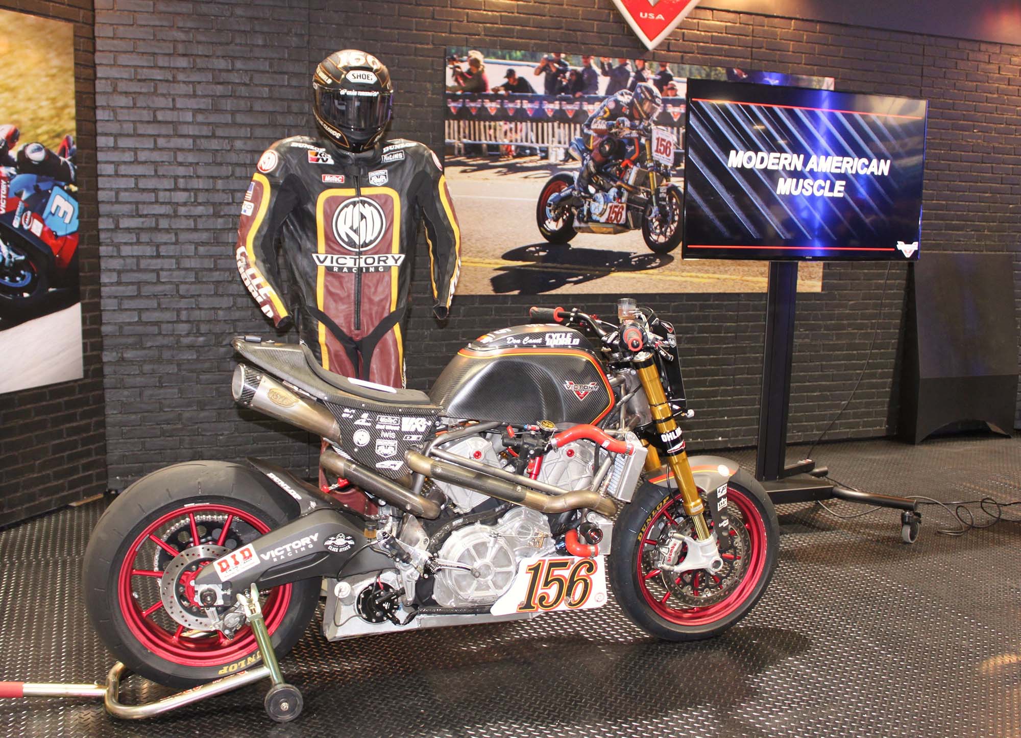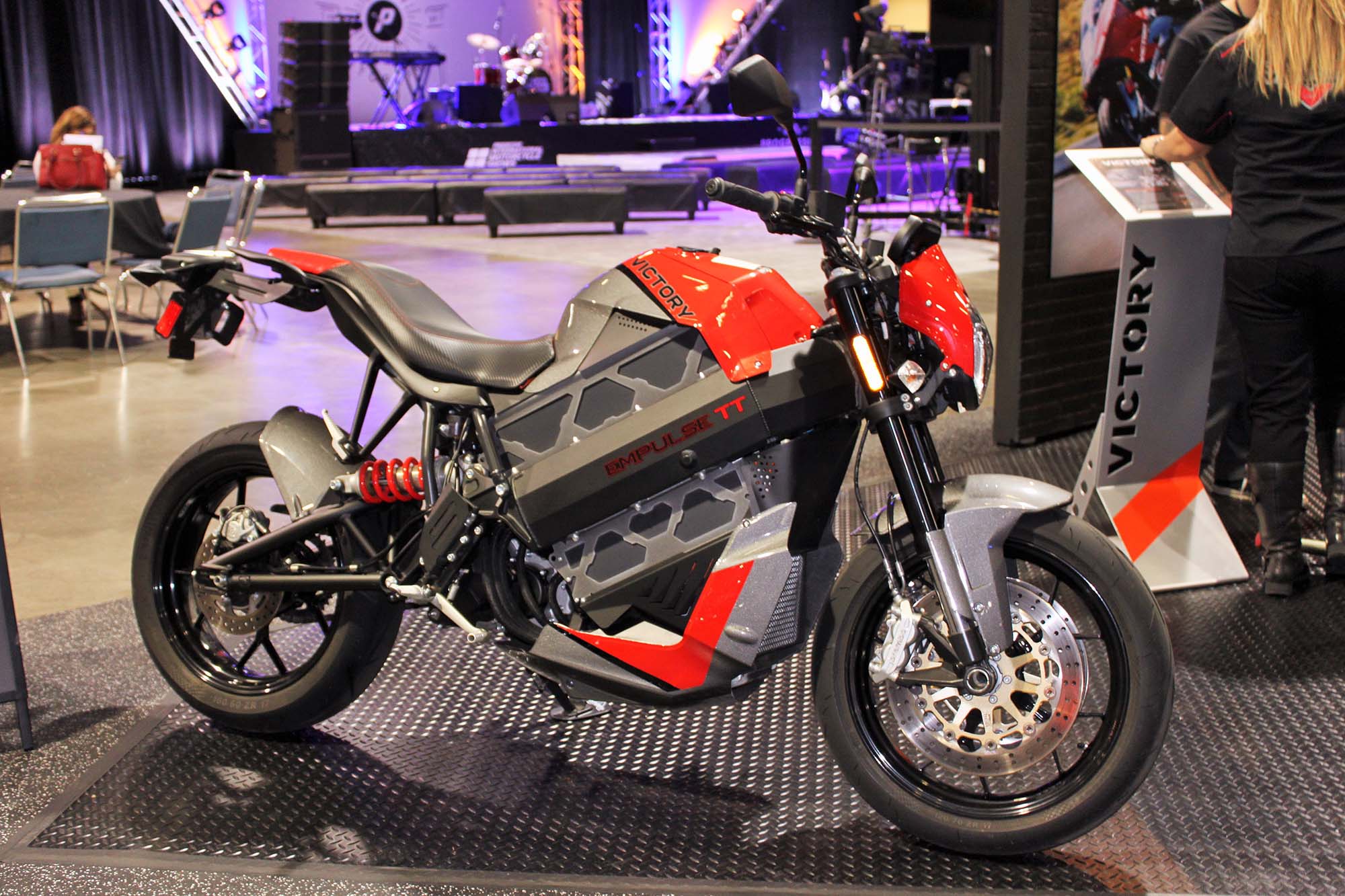 The good energy continued at the Victory booth, where the brand’s new emphasis on performance was displayed with their Project 156 racer and the new Empulse TT electric bike.