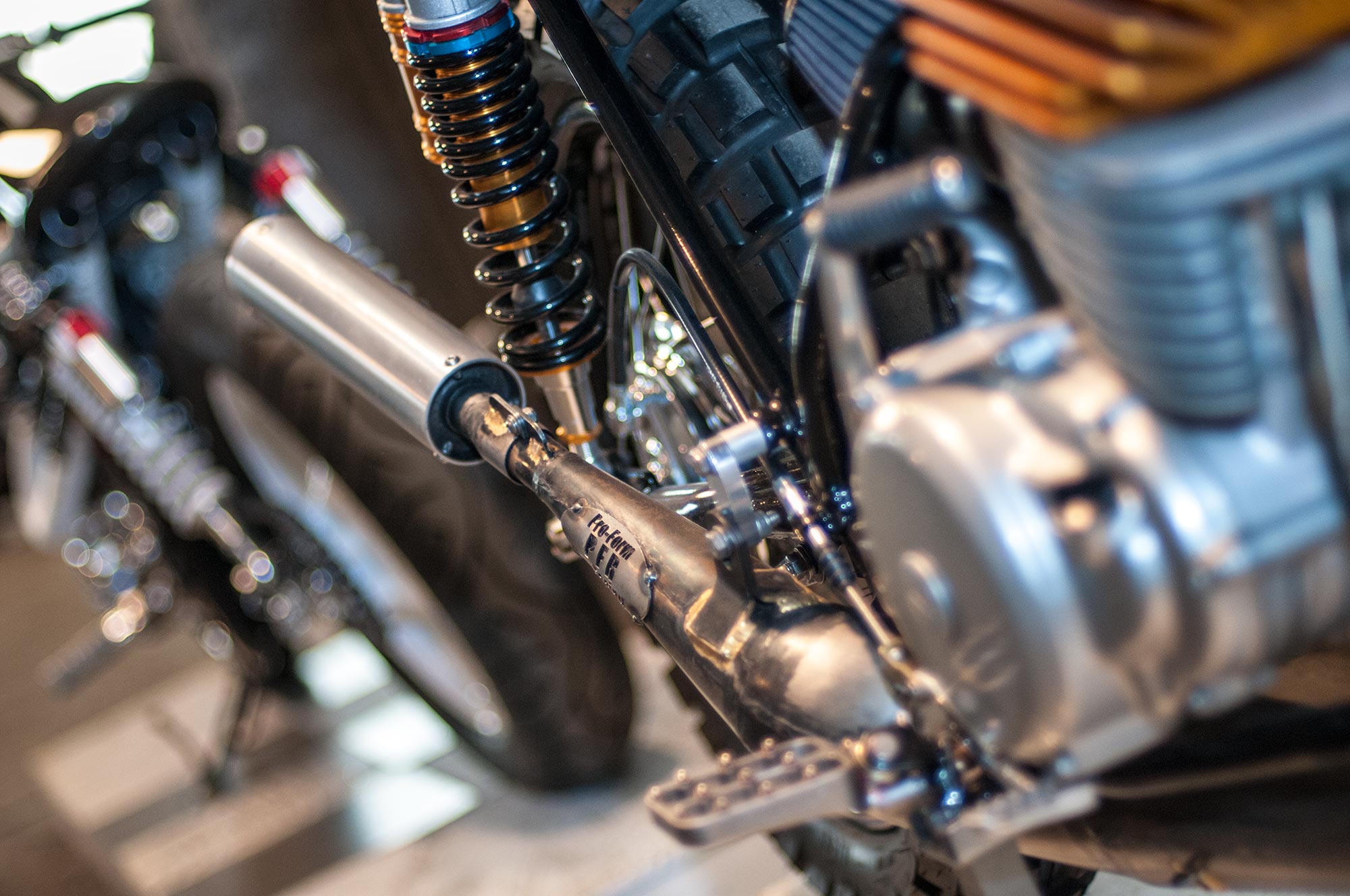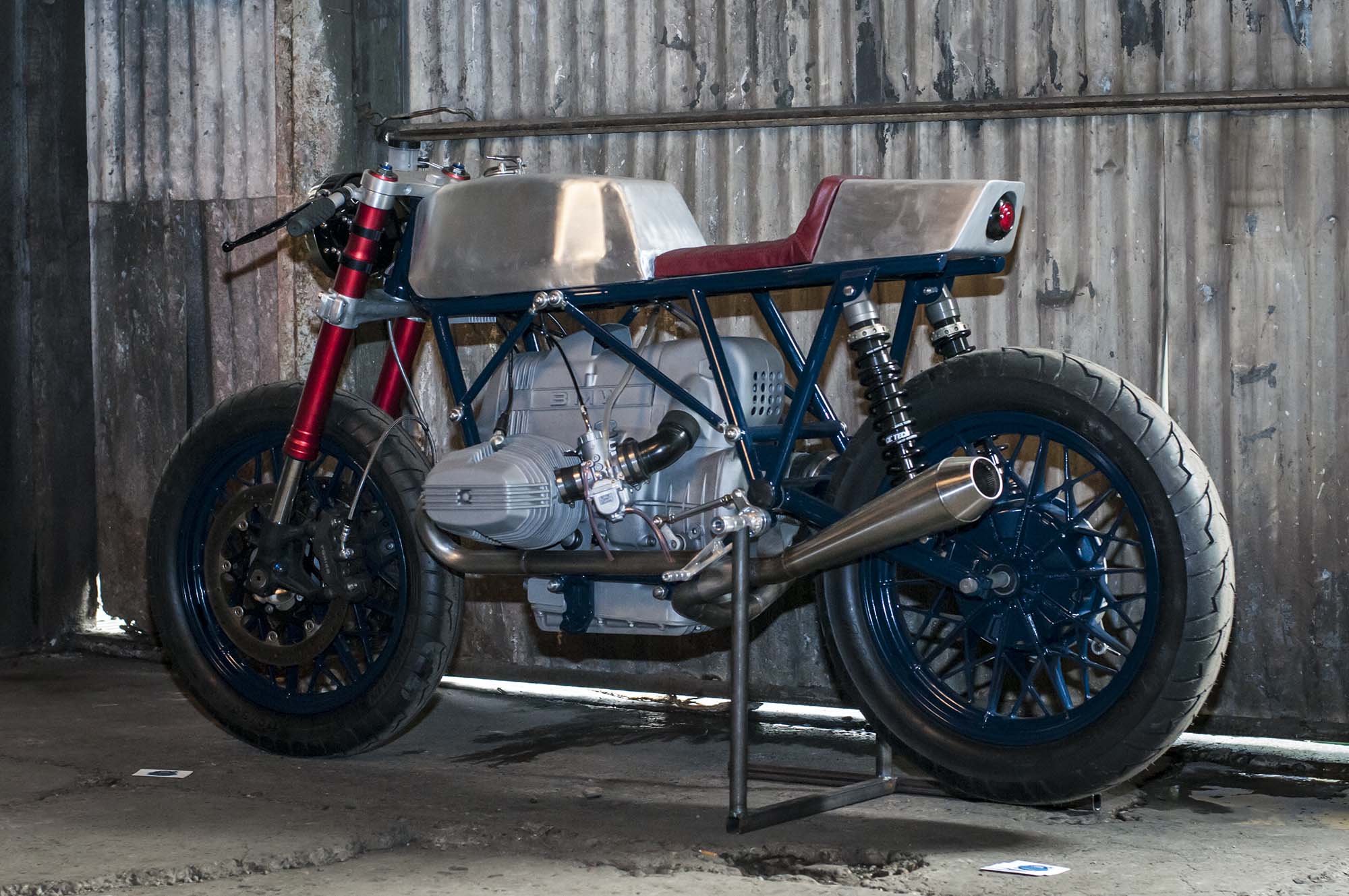 A nod to the Super Hooligan series that RSD just started, this boxer-engine tracker has a tasteful low-slung chassis with a single-sided swingarm.