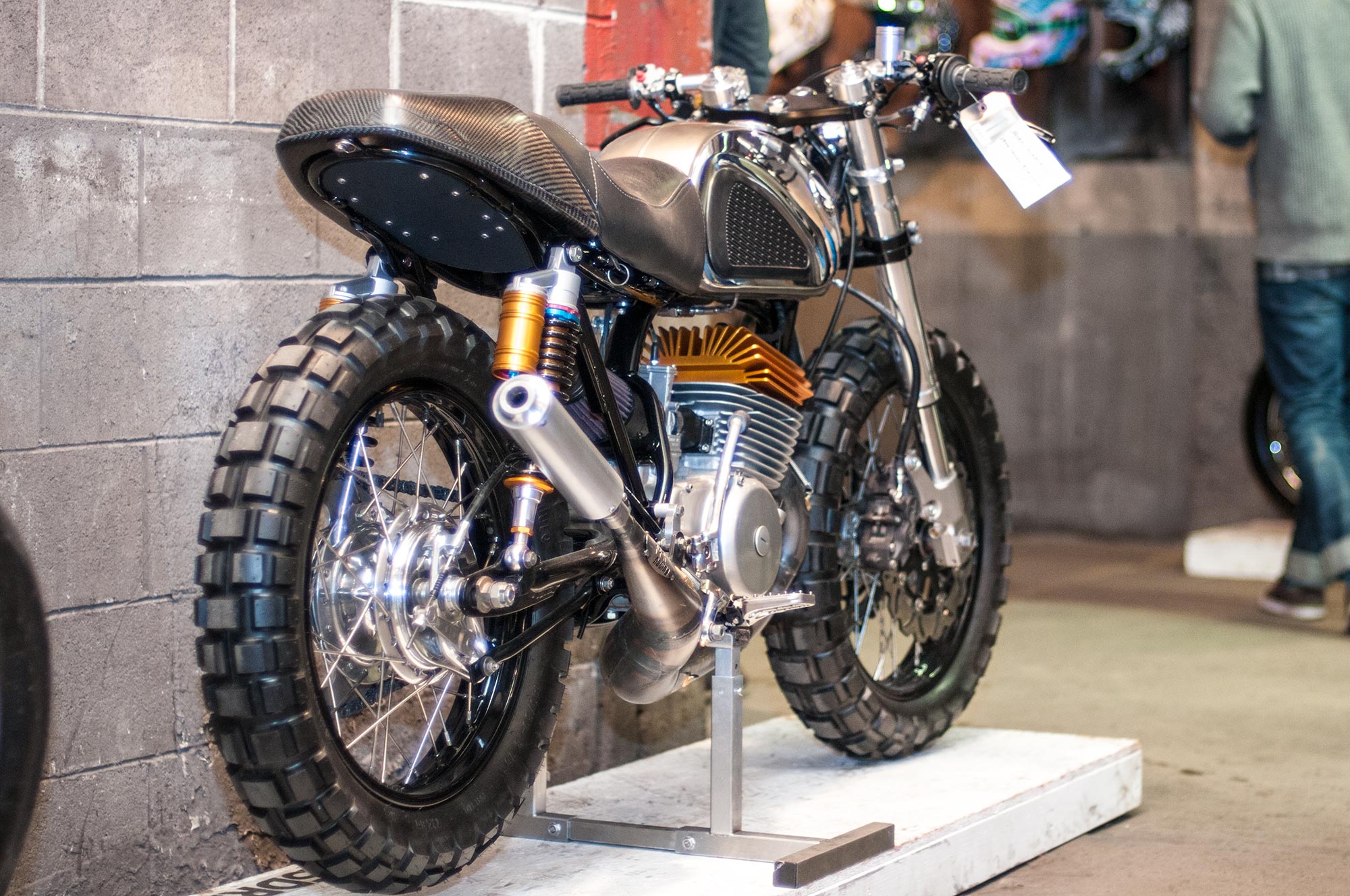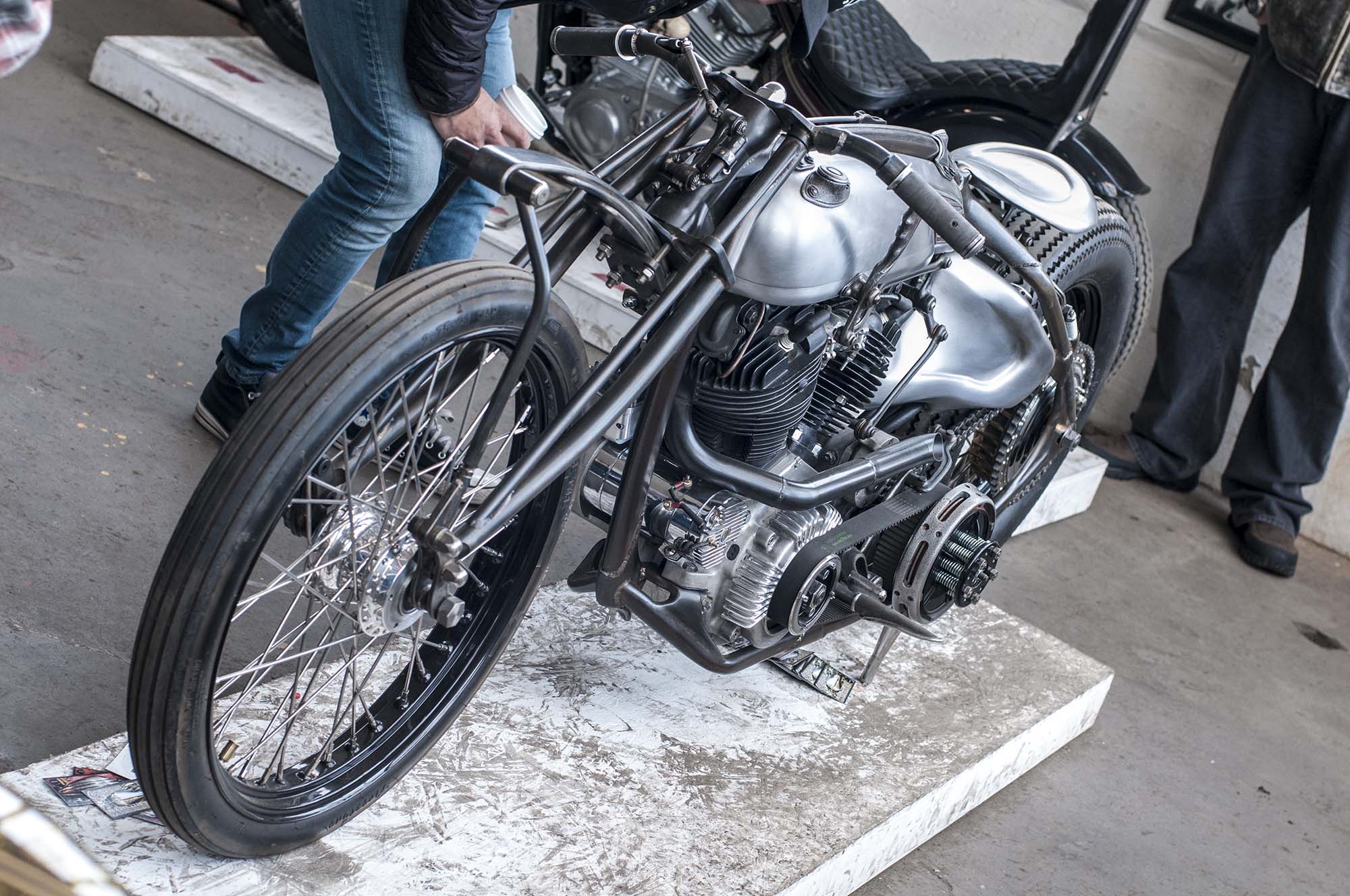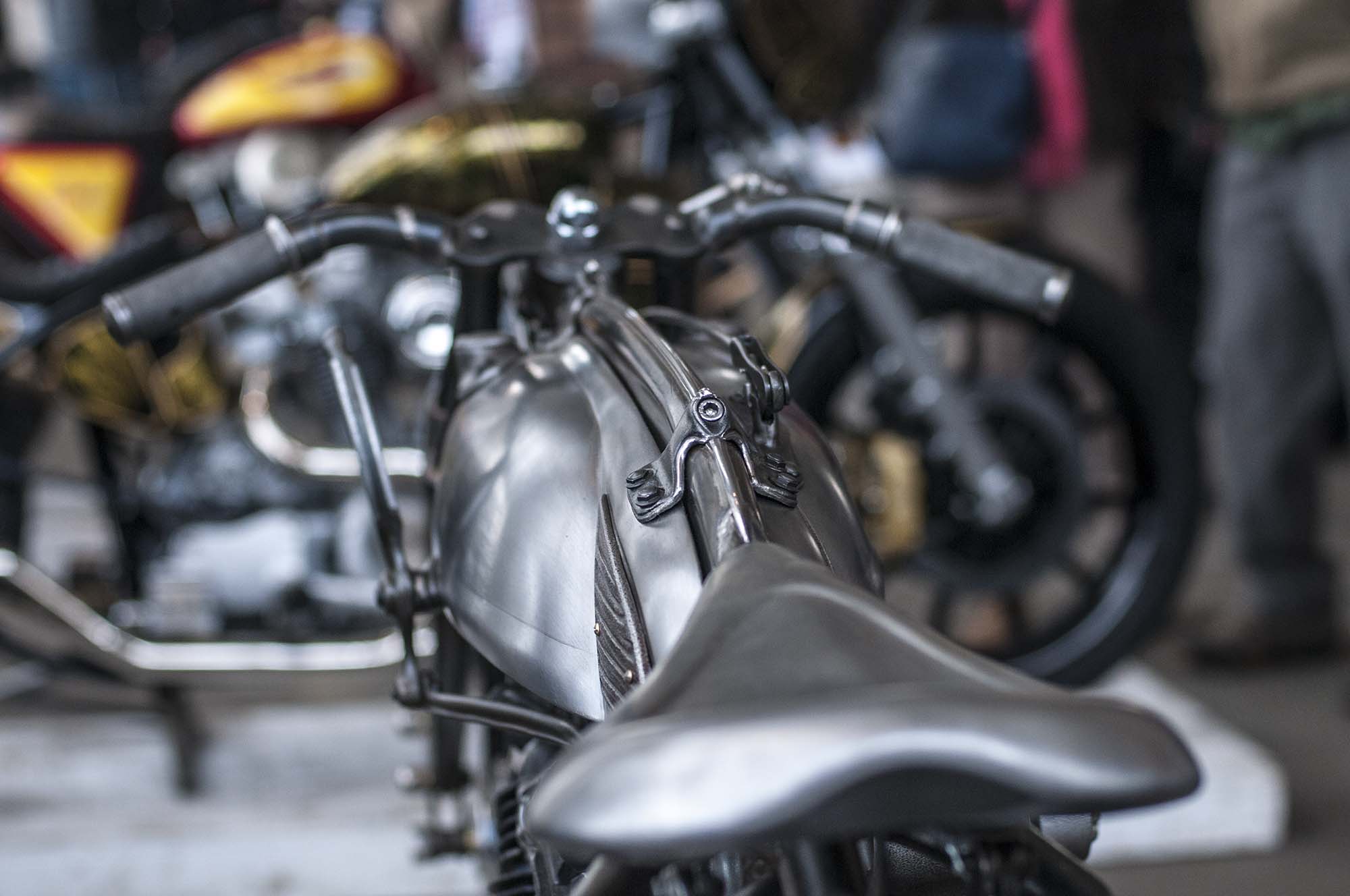 Hands down the most beautiful bike on display, if you haven’t heard of Sosa Metalworks, then this knucklehead custom should certainly change that. The bike is decisively analogue, with mechanical actuation for virtually everything.
