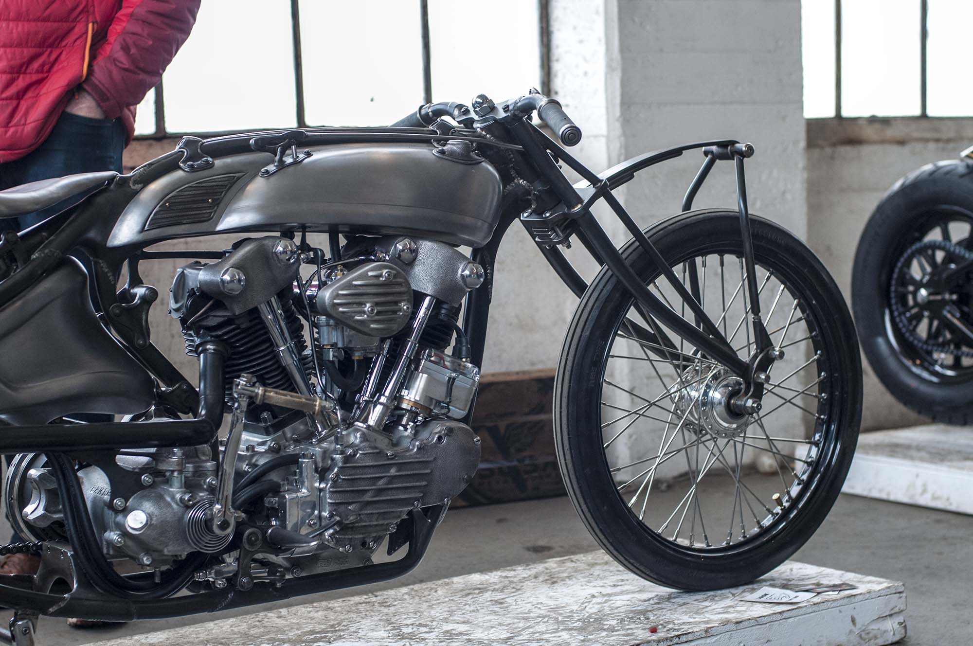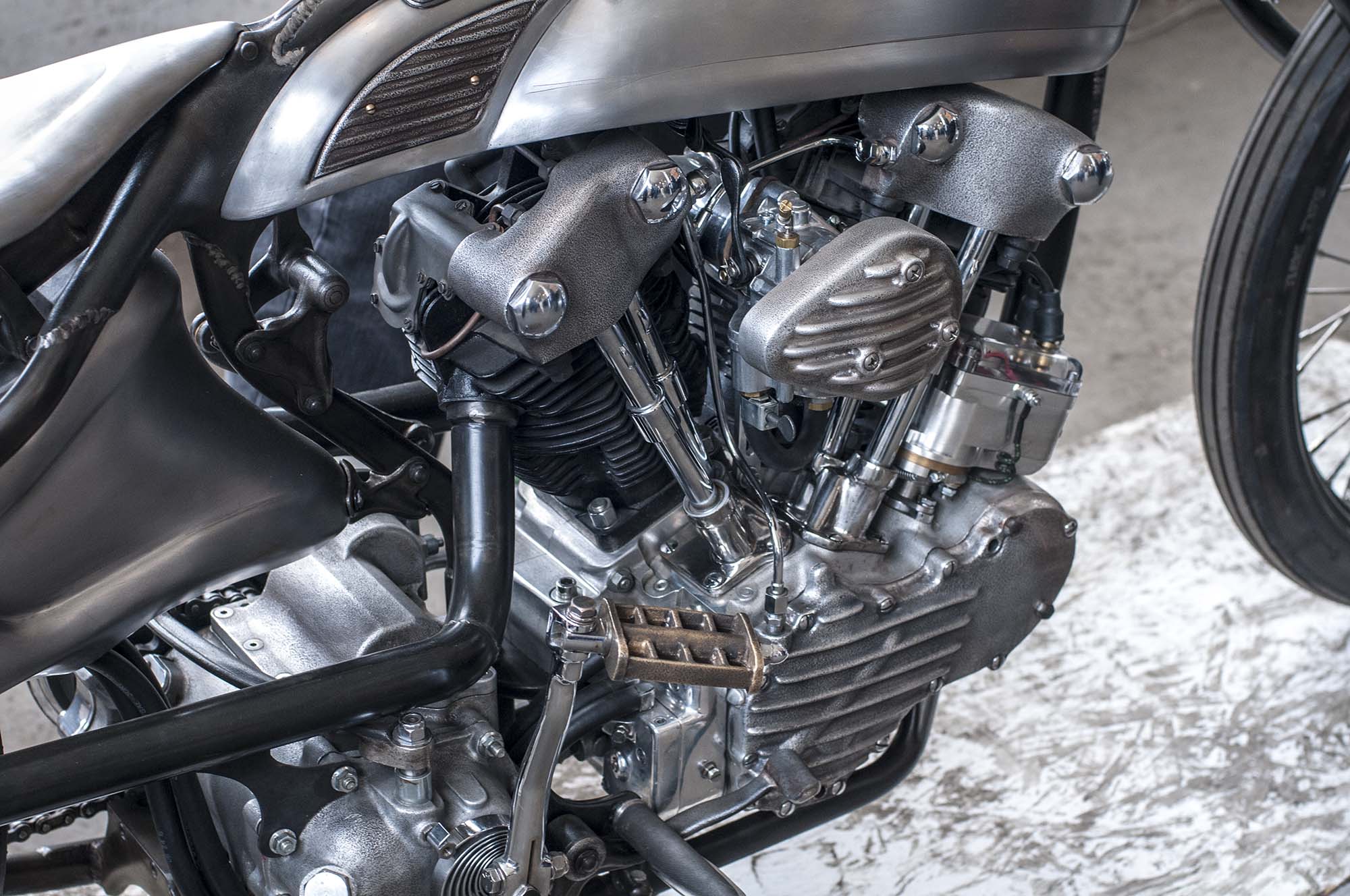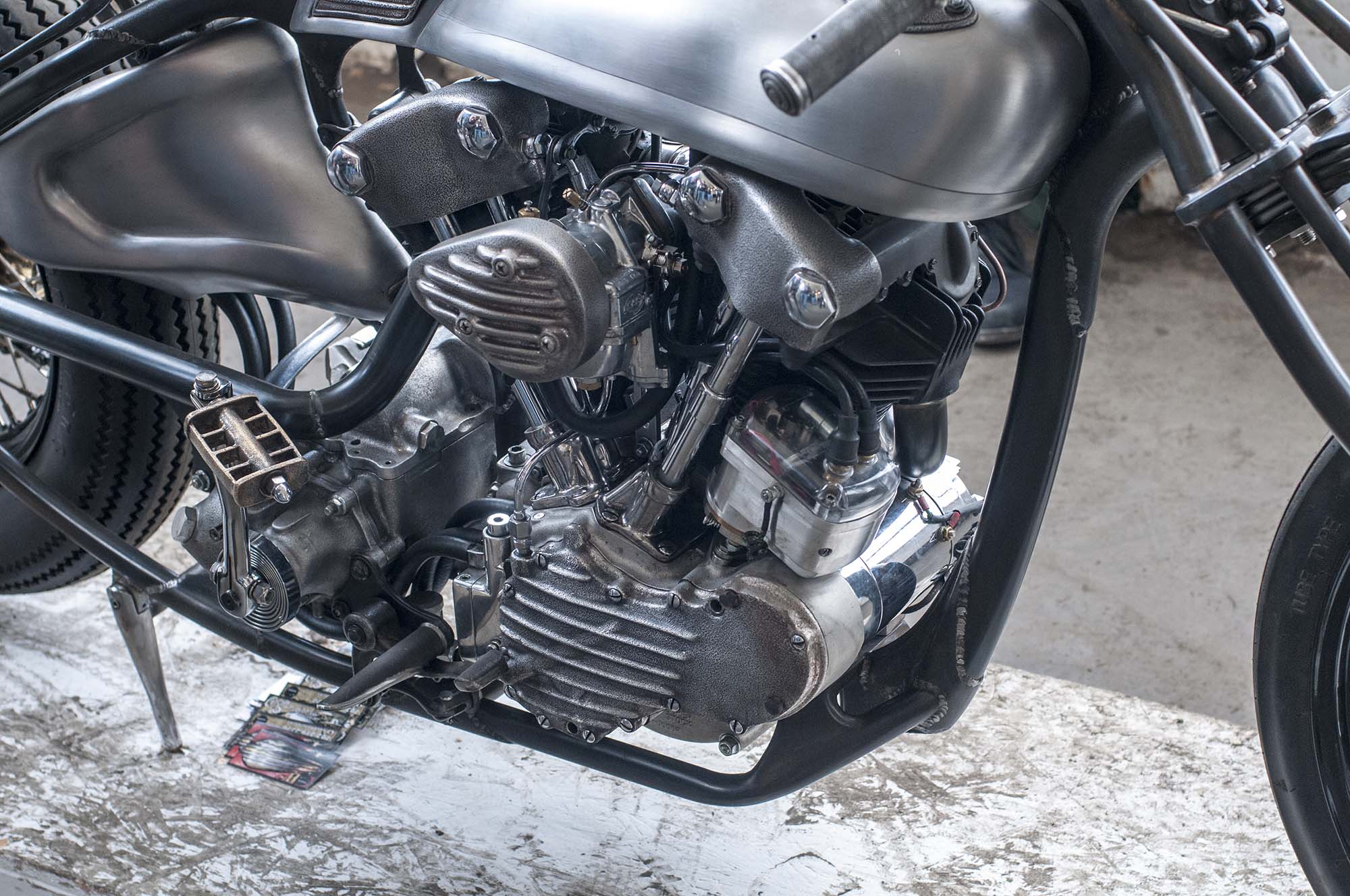 Hands down the most beautiful bike on display, if you haven’t heard of Sosa Metalworks, then this knucklehead custom should certainly change that. The bike is decisively analogue, with mechanical actuation for virtually everything.