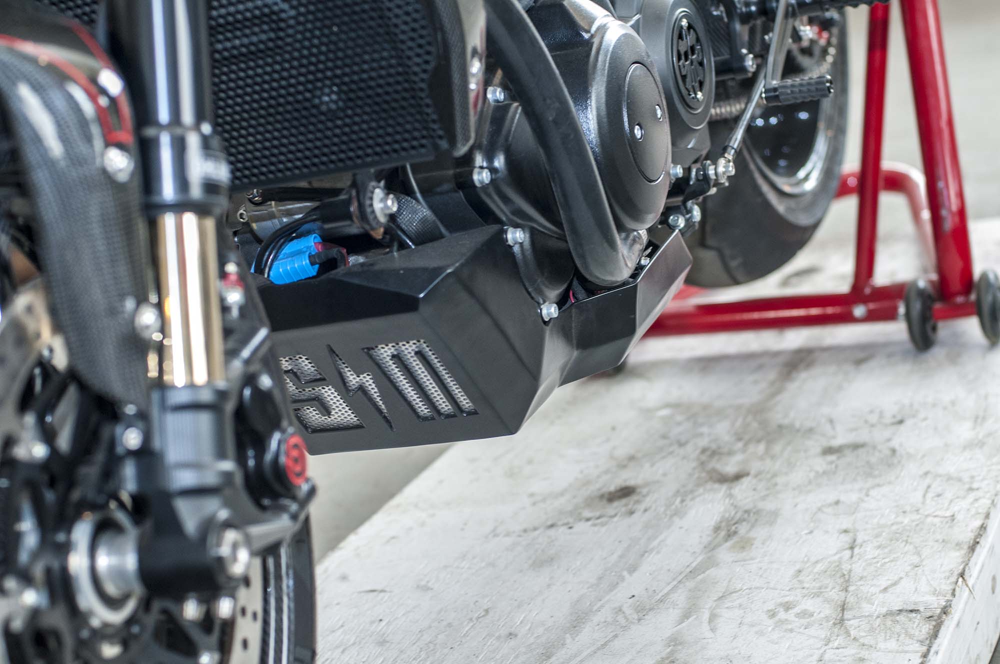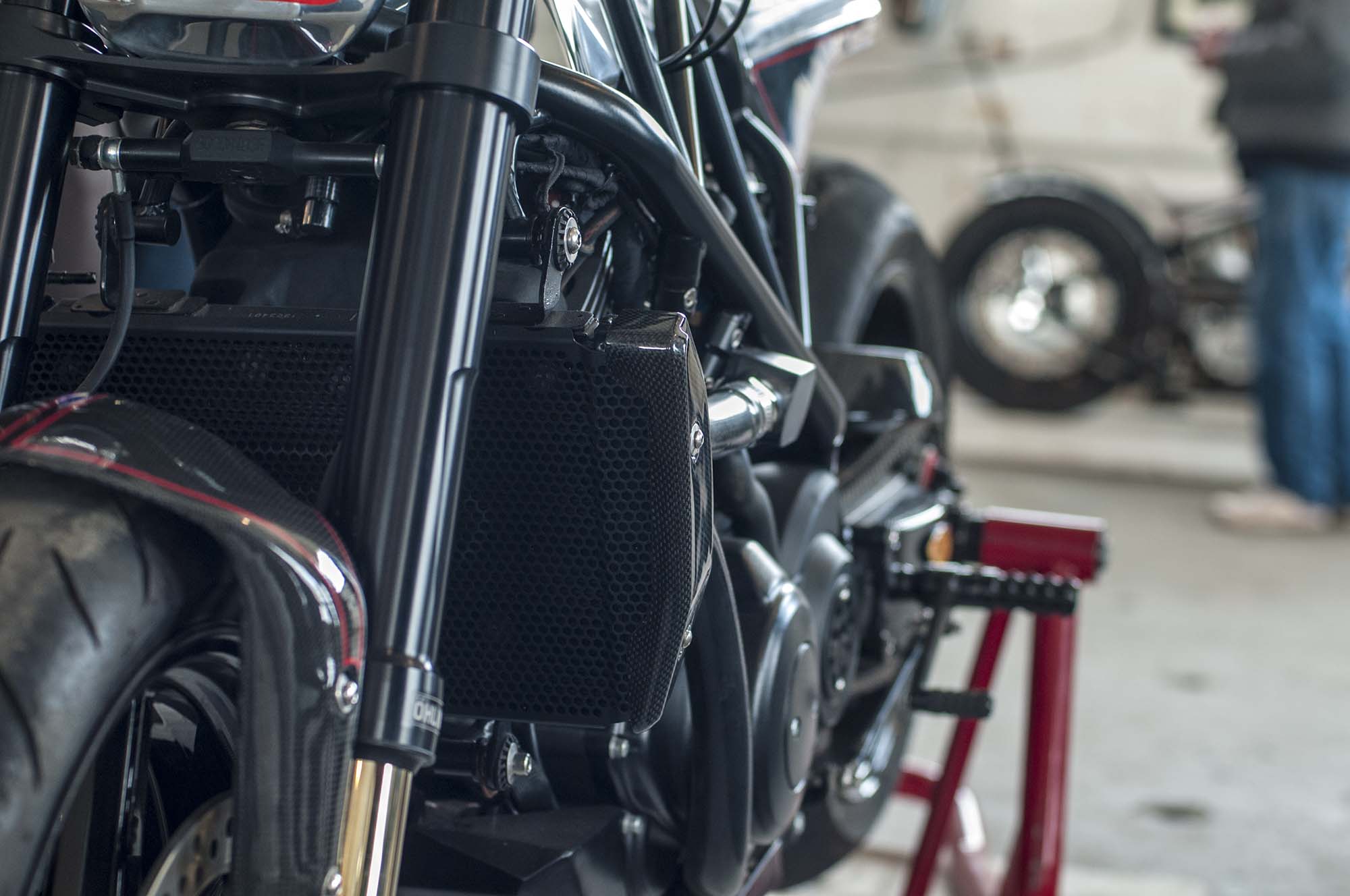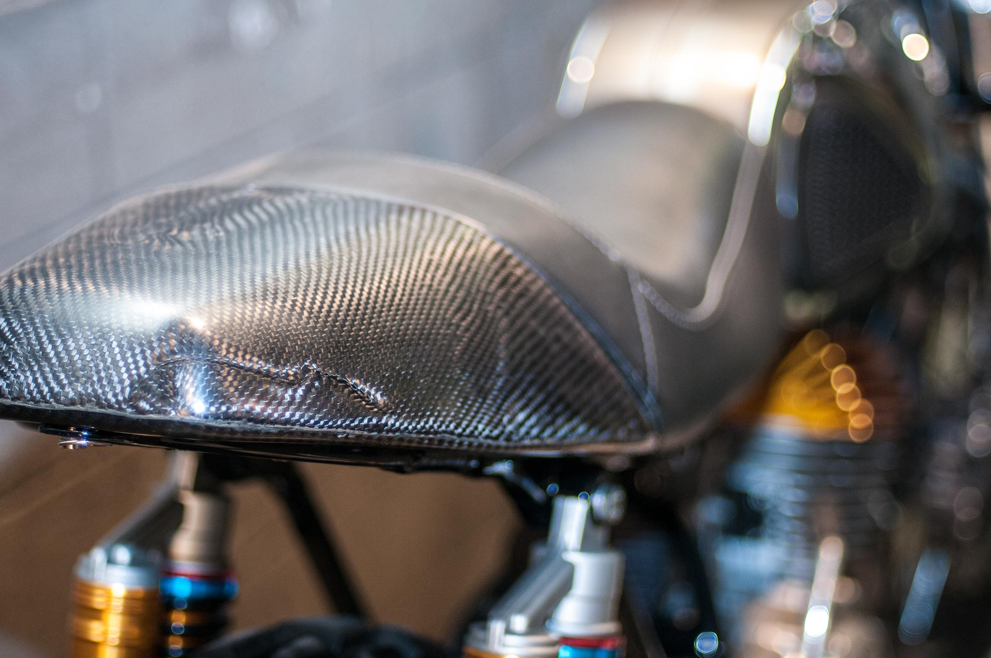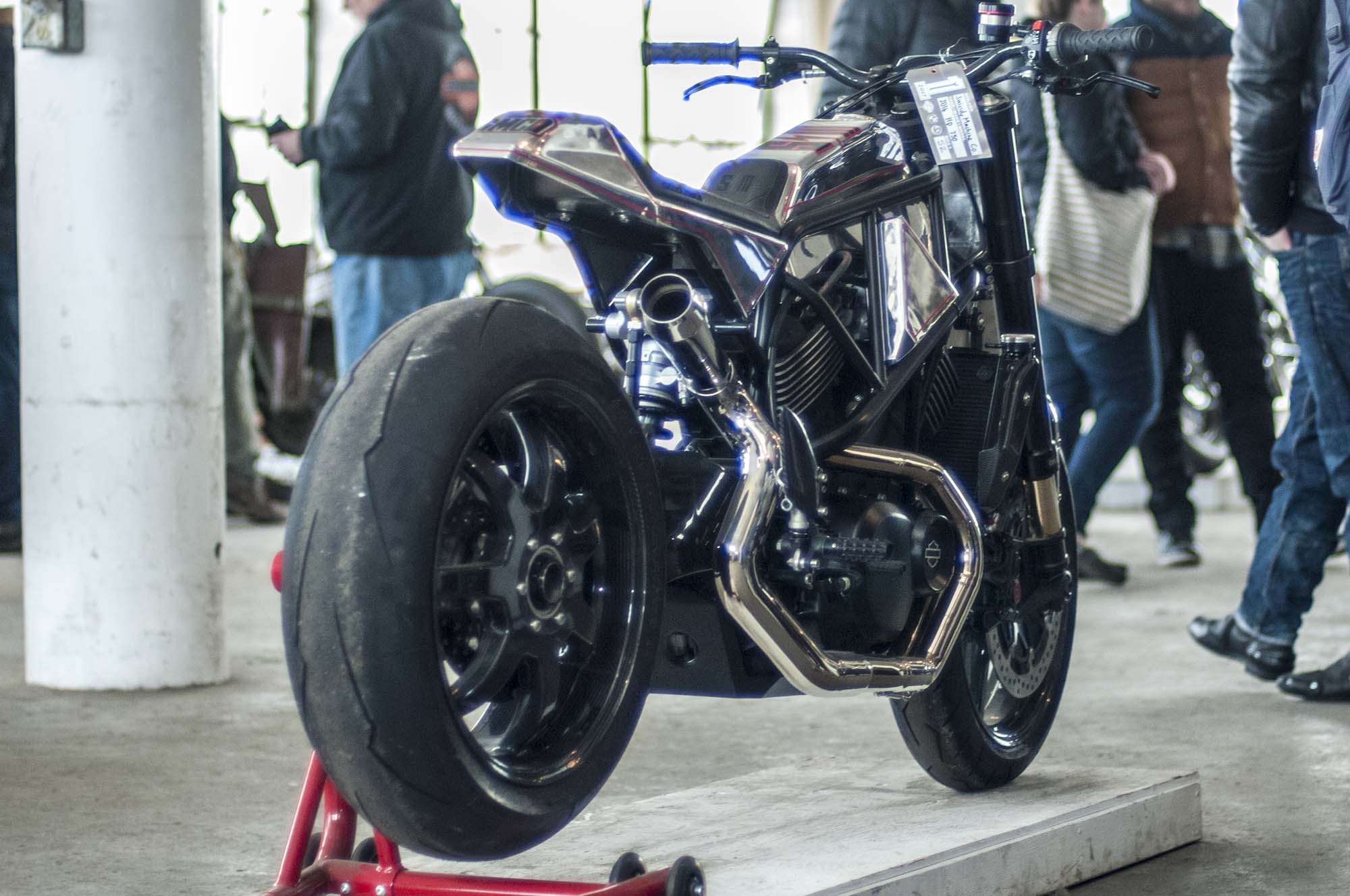 The world might be collapsing when the sportiest custom you see at a bike show is from the Bar & Shield brand, and yet here we are with Suicide Machine’s tasty Harley-Davidson 750. The bike has not only carbon fiber wheels from BST, but also a carbon fiber swingarm from the South African outfit.