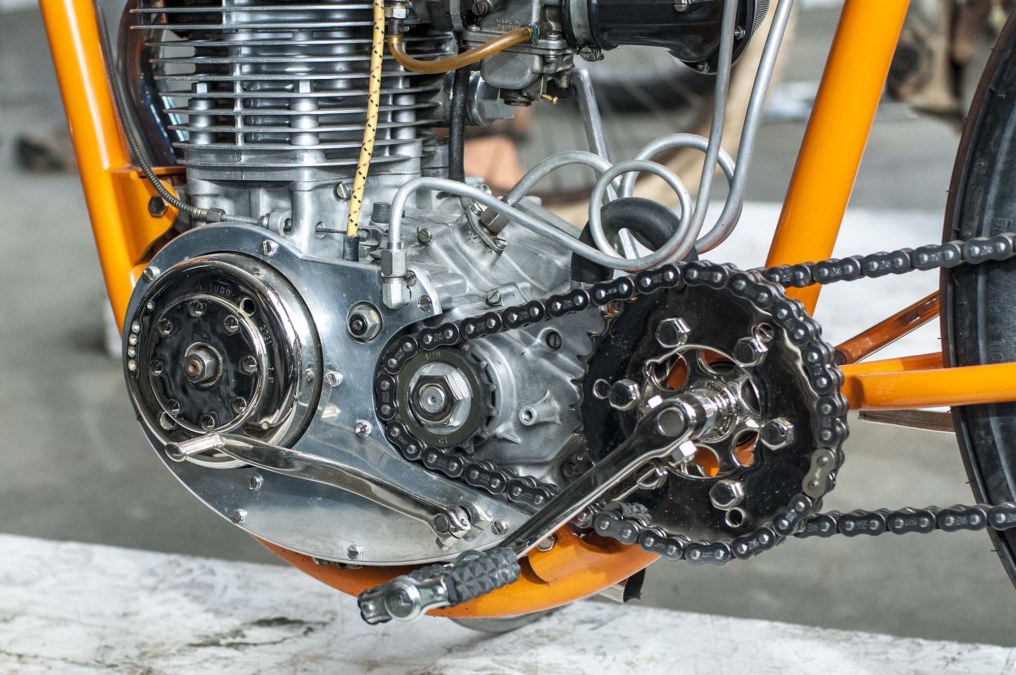 How do you make a boring motorcycle like the Yamaha XT500 look lurid and eye-catching? Painting it orange certainly helps, but the true-to-form board tracker aesthetic works even better…and doing both certainly covers all the bases.
