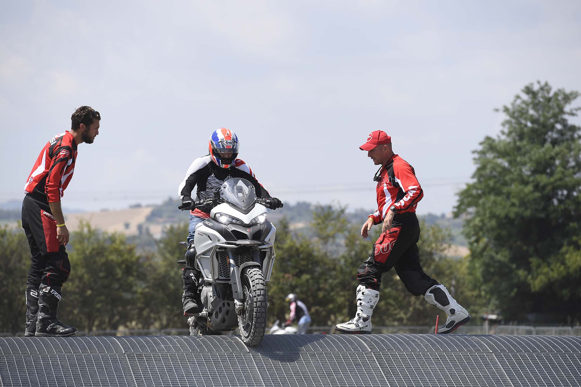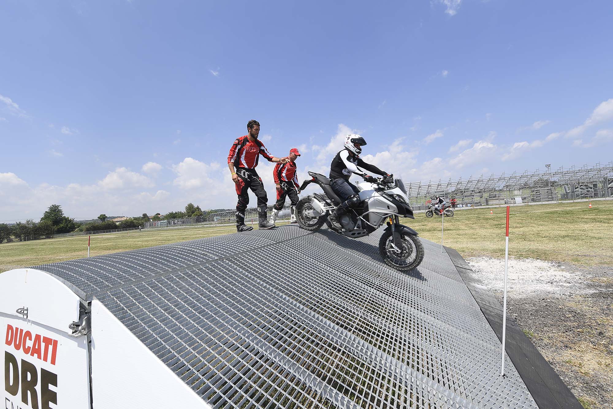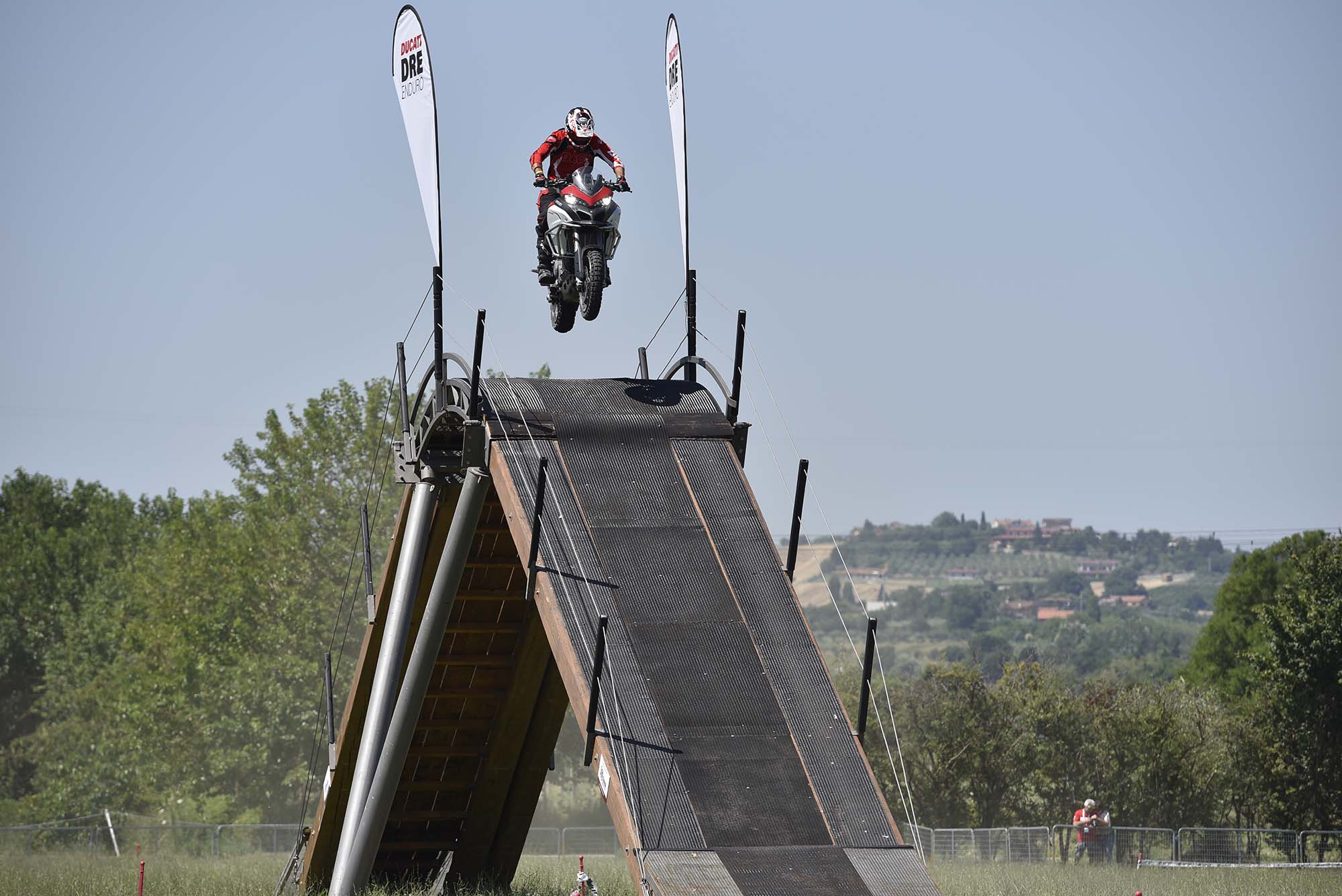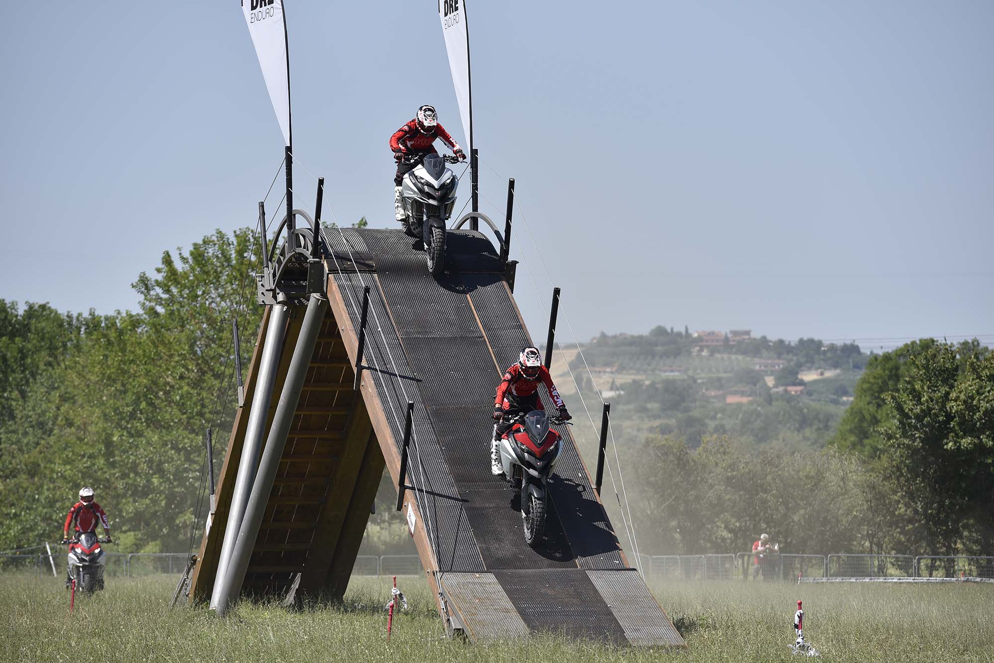 For me, this meant getting my boots dirty, riding the Ducati Multistrada 1200 Enduro at the DRE Enduro off-road course. The watered-down teaser to Ducati’s two-day course sees you getting some basic riding tips from former Dakar racer Beppe Gualini, before heading out to a grass field to try things for yourself.