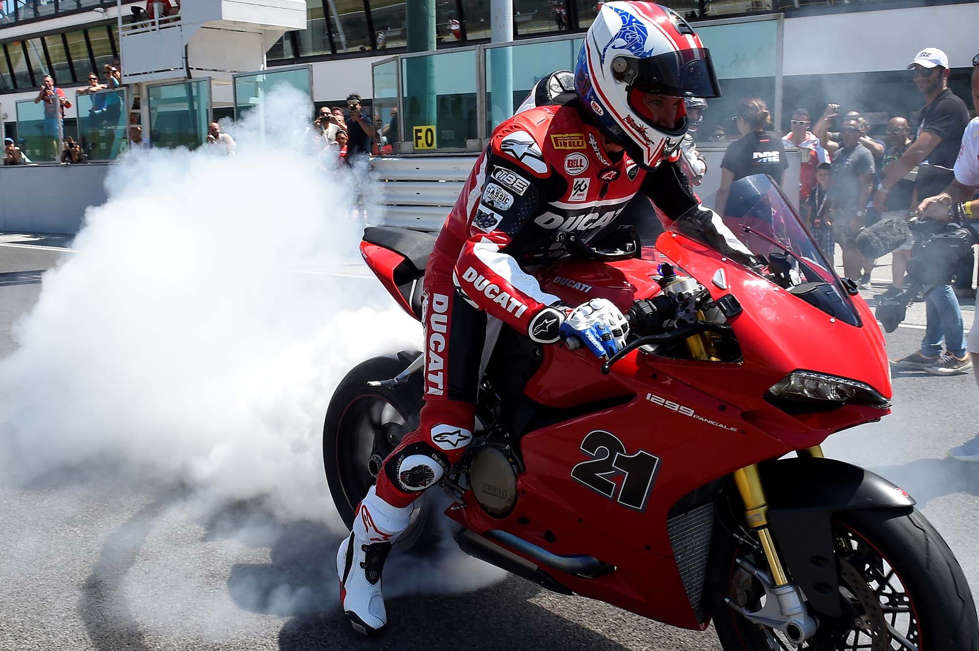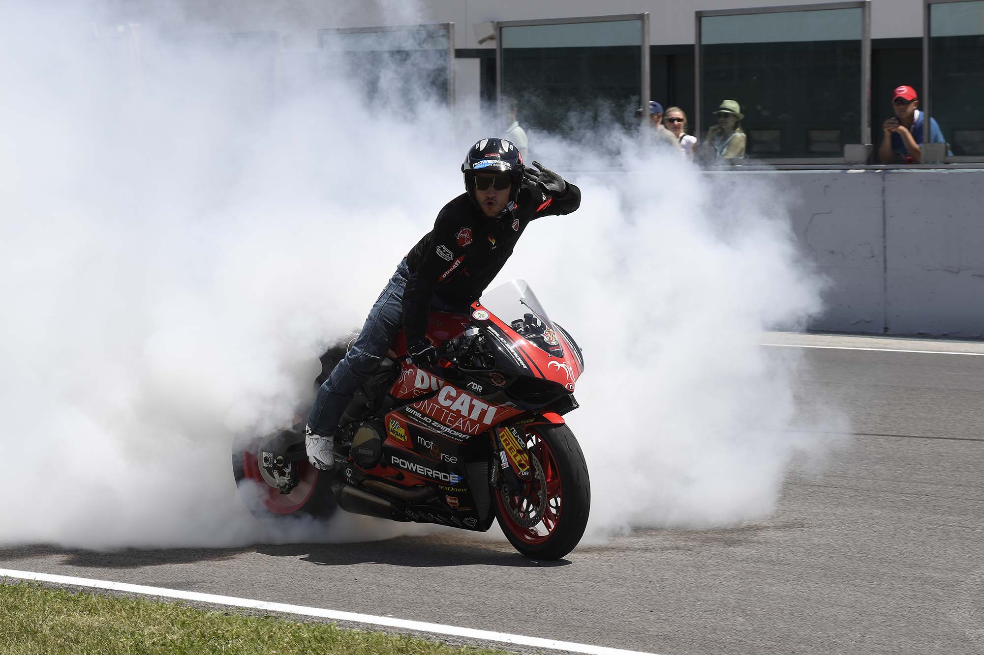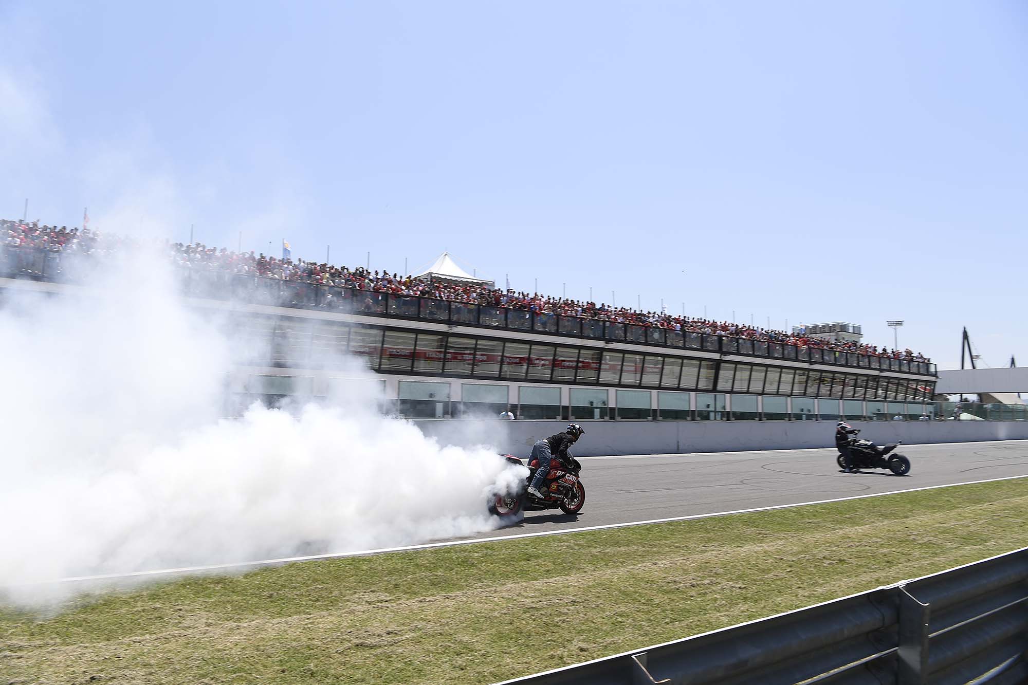 Casey Stoner was welcomed to a roar of fan approval for his podium finish, but it was Scott Redding who would take the top-step honors. Redding’s post-race burnout was also best-in-show caliber, as any burnout that ends with a fire extinguisher should be.