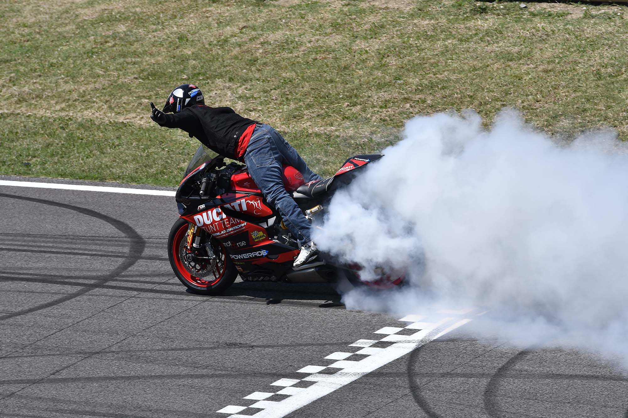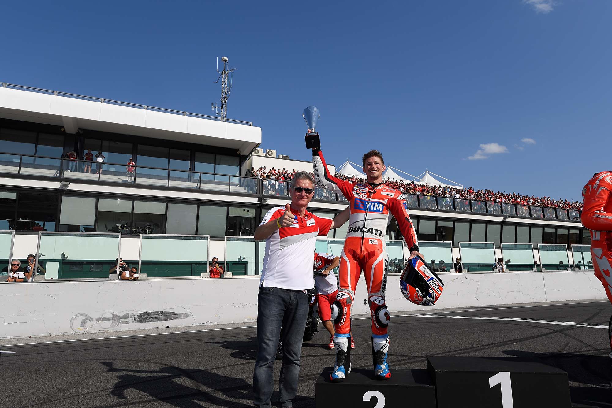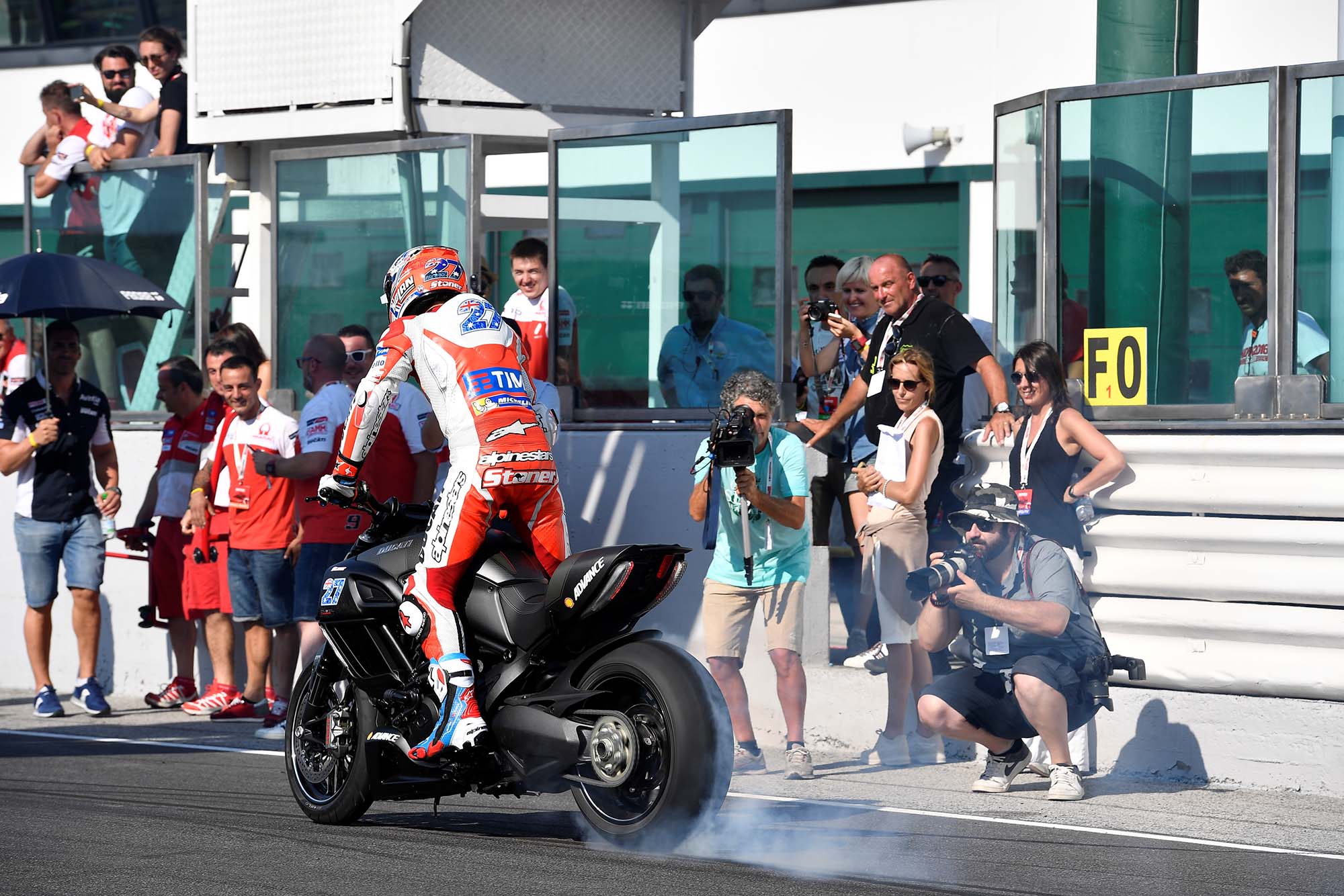 Casey Stoner was welcomed to a roar of fan approval for his podium finish, but it was Scott Redding who would take the top-step honors. Redding’s post-race burnout was also best-in-show caliber, as any burnout that ends with a fire extinguisher should be.